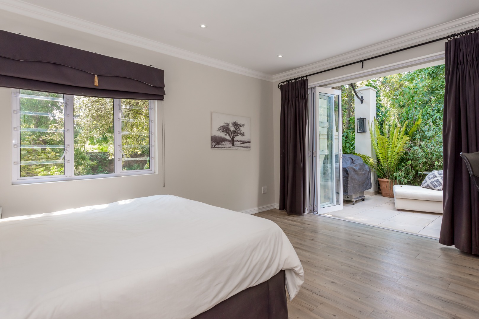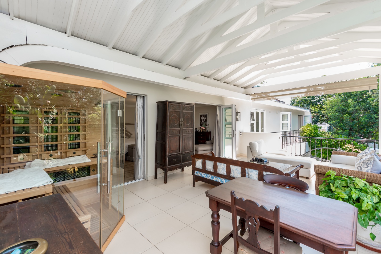 * The Master suite is truly exceptional - expansive in size, featuring a walk-in-closet and dressing table, a private sauna and its own covered patio that captures the serene garden views. It a sanctuary of comfort and indulgence.