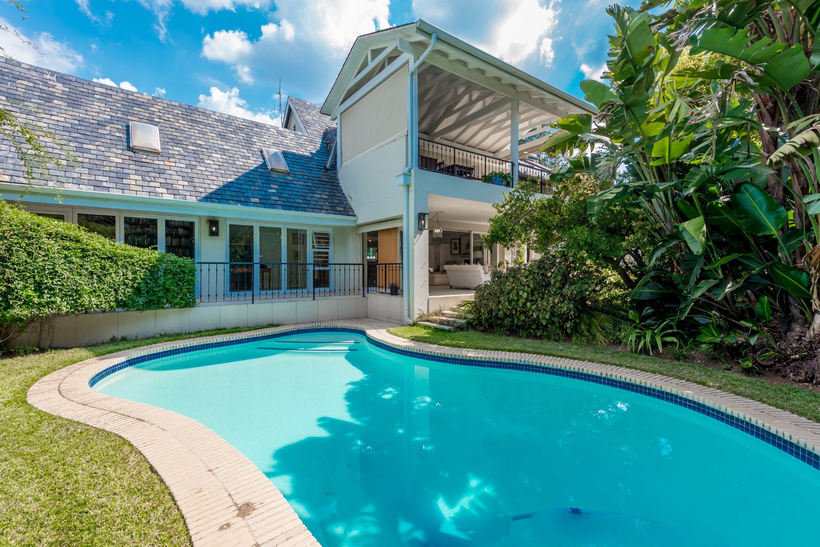 SET ON AN EXPANSIVE 3000SQM STAND, RIVERCLUB, SANDTON, THIS EXTENDED FAMILY HOME OFFERS A RARE BLEND OF TIMELESS CHARACTOR, ELEGANT PROPORTIONS, BREATH TAKING NATURAL BEAUTY .