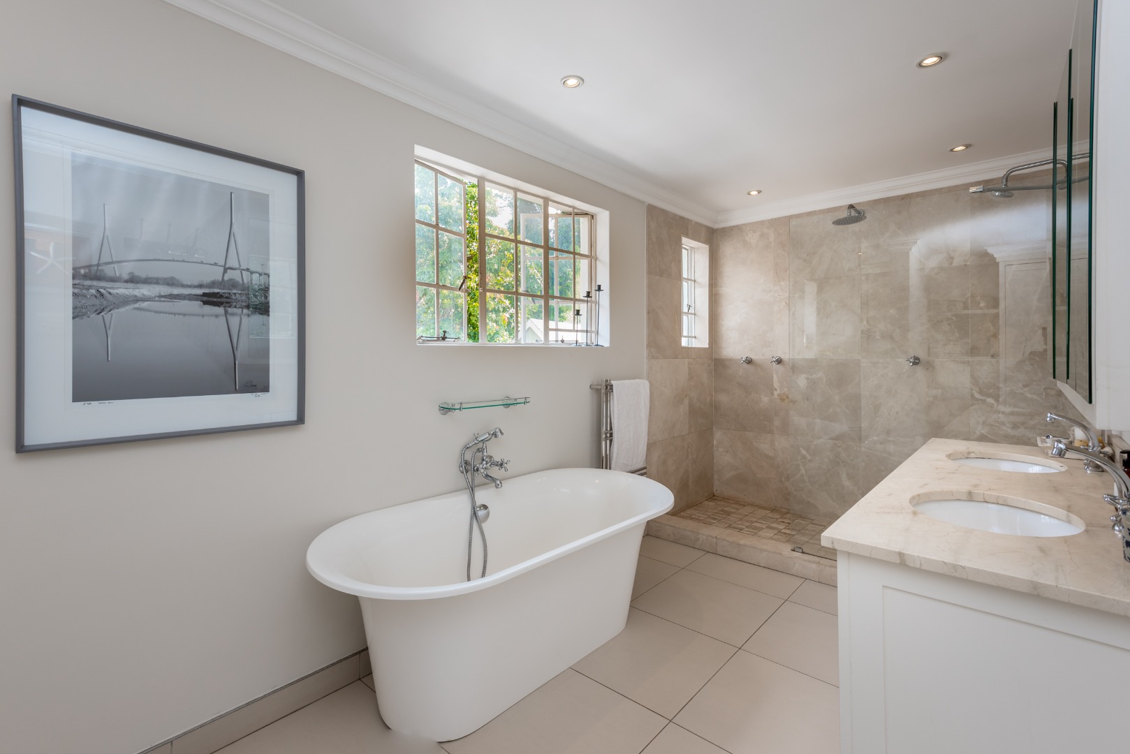 5 beds. 4.5 Baths. PLUS a fully developed Cottage/house on its own. 3062 sqm land. 670sqm house. Water Tanks. Gas Geysers. Borehole. Inverter/Battery.