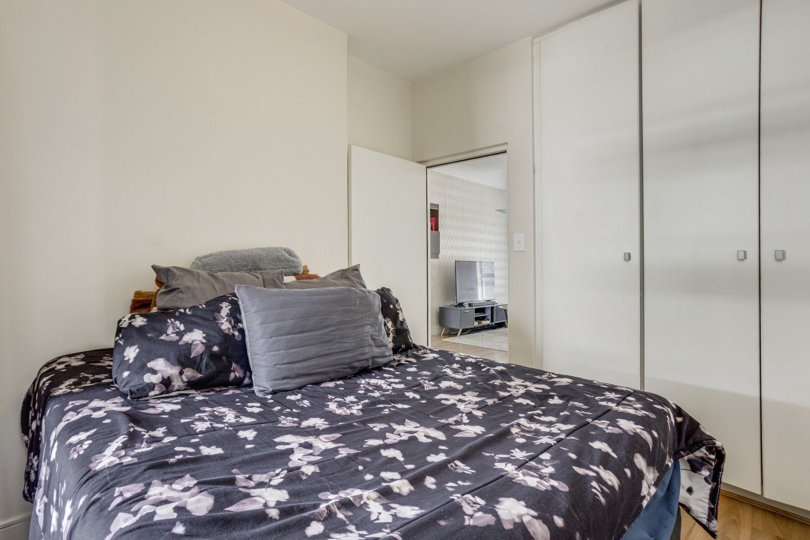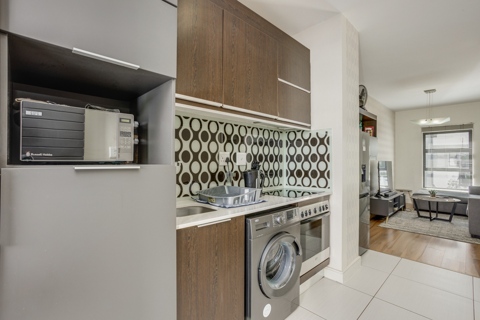 The unit offers an open-plan living area, a functional kitchen, and a comfortable bedroom with built-in cupboards. The bathroom is neat and modern.