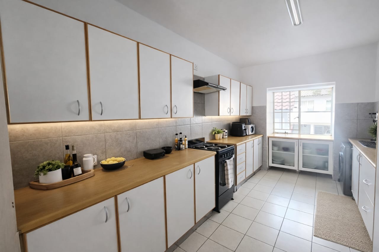The kitchen is spacious and functional with loads of cupboard space —> perfectly liveable as is, or ready for a sleek renovation if you’re the visionary type.