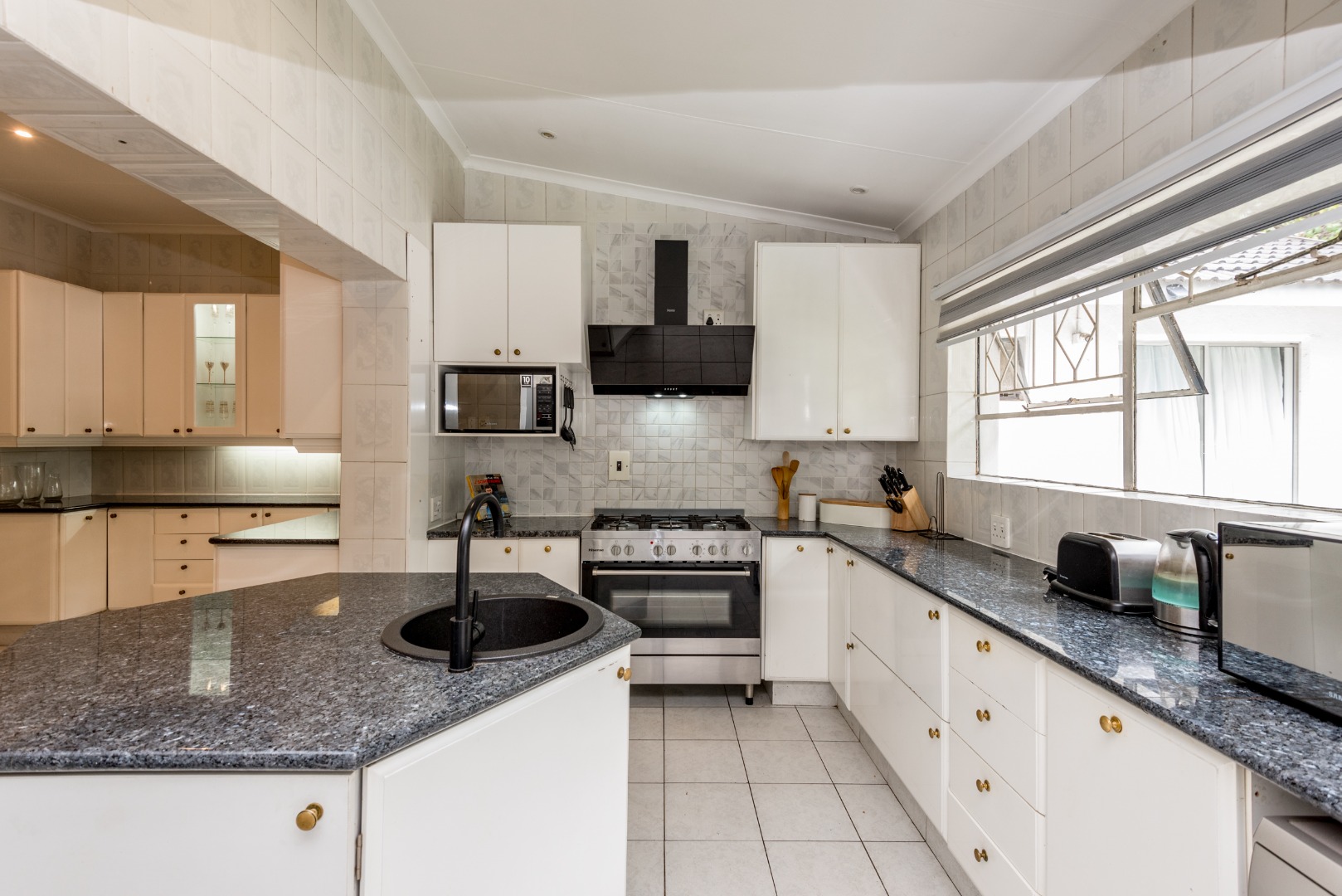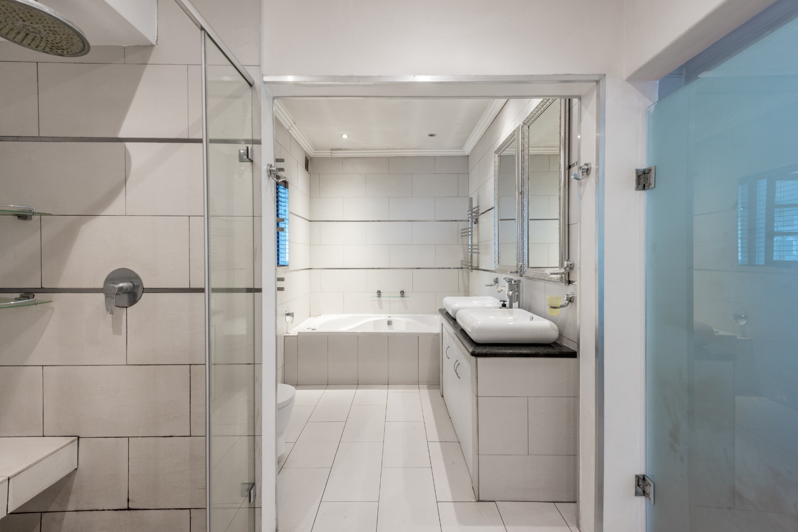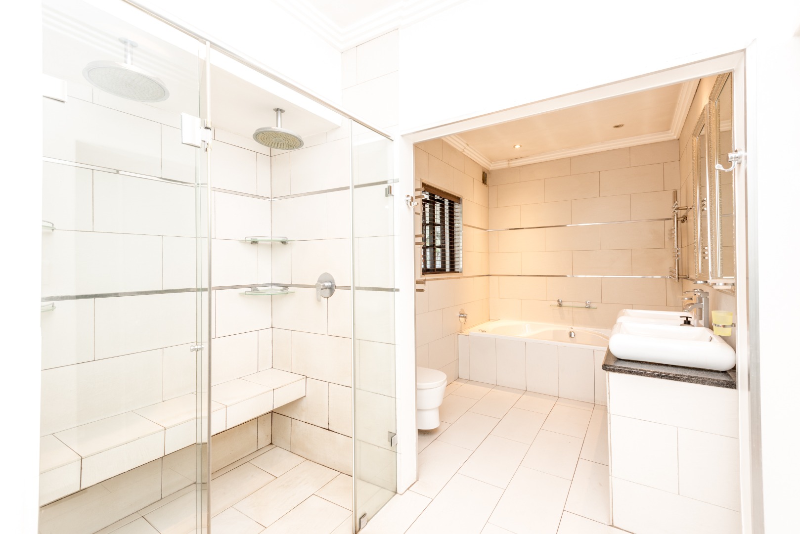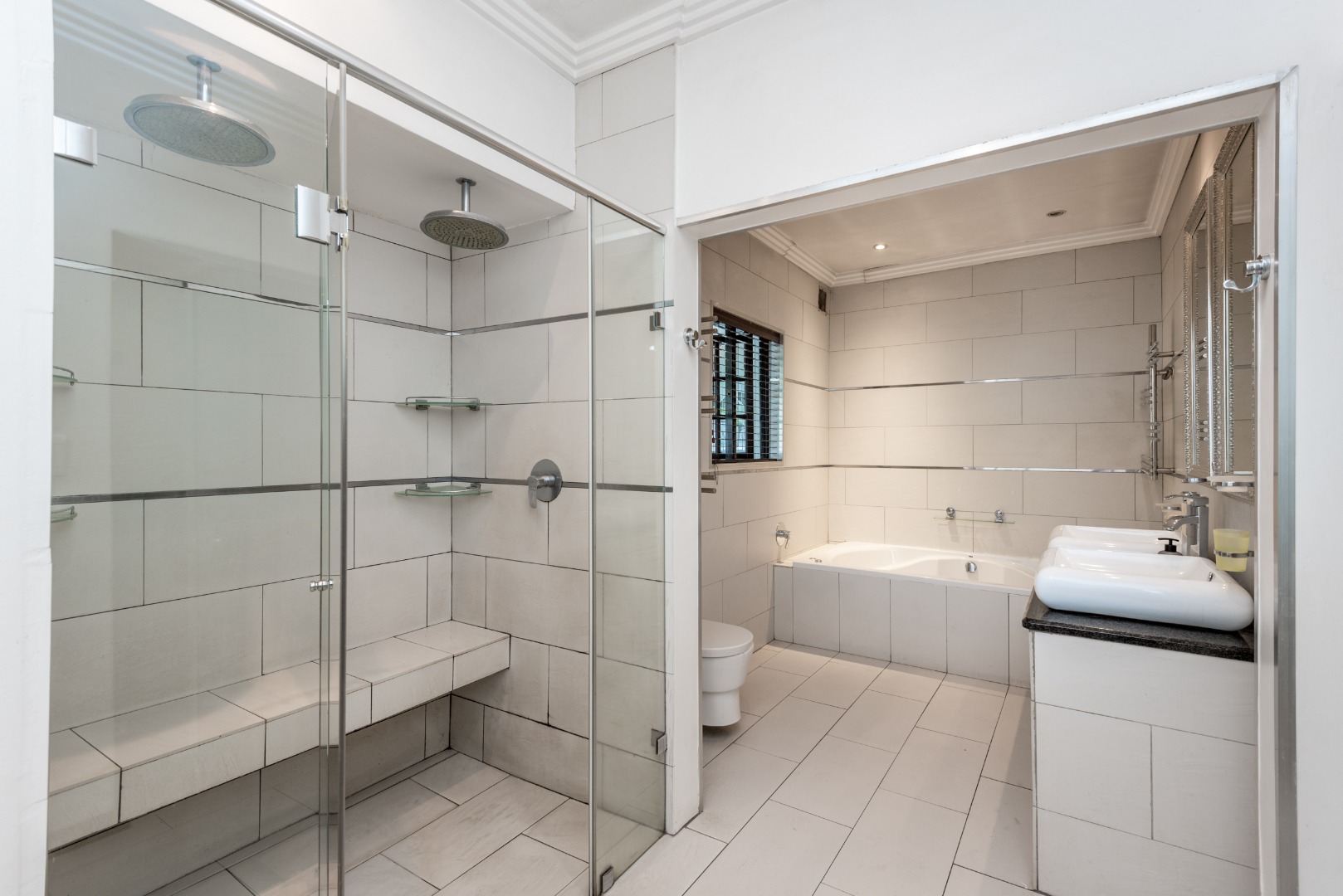 Accommodation comprises three opulent, light and airy bedrooms and three-and-a-half bathrooms including two private ensuites and a convenient guest toilet. Each space is meticulously designed to provide a tranquil retreat, offering privacy and comfort for all residents. Two bedrooms open out to the front garden and the Master bedroom opens out onto an exclusive romantic steel pergola with a table and chairs to enjoy the sunsets with refreshments after a hard day's work. The third bedroom ensuite has its own entrance that also opens out onto the back of the garden, over looking the Sandton skyscrapers.