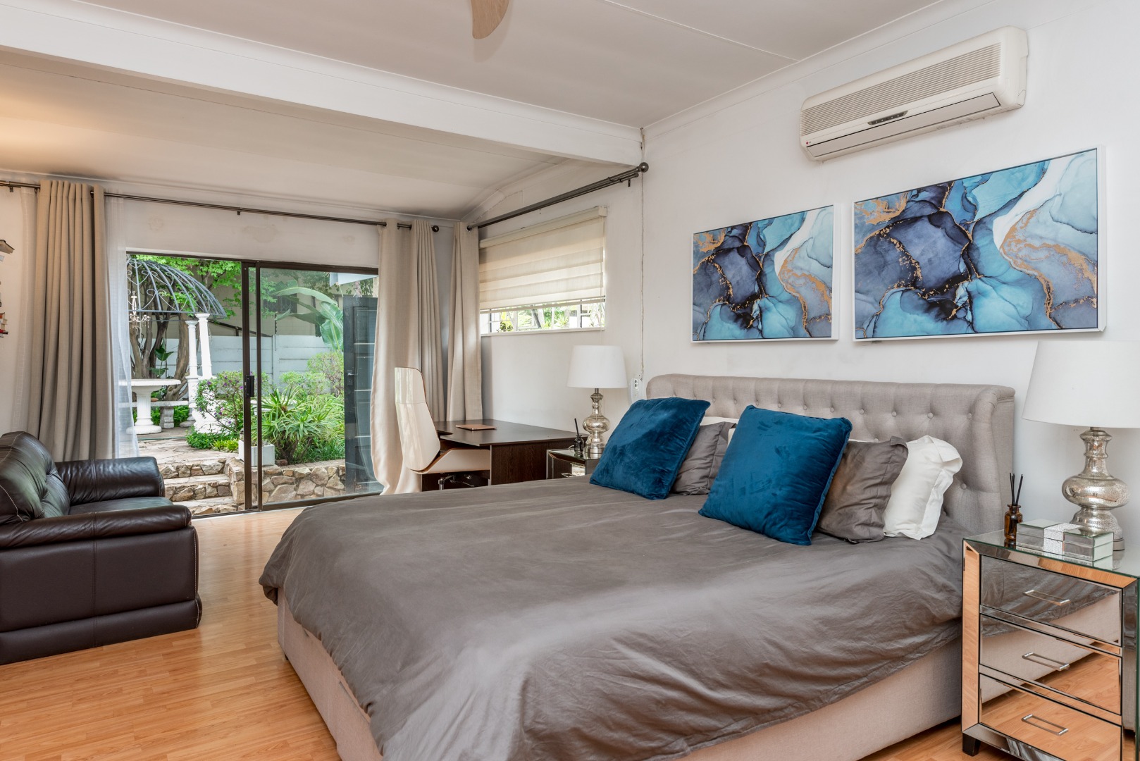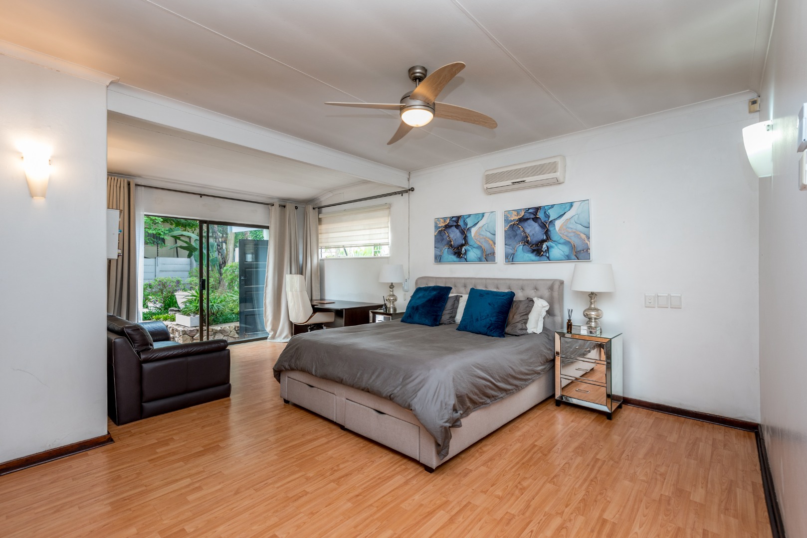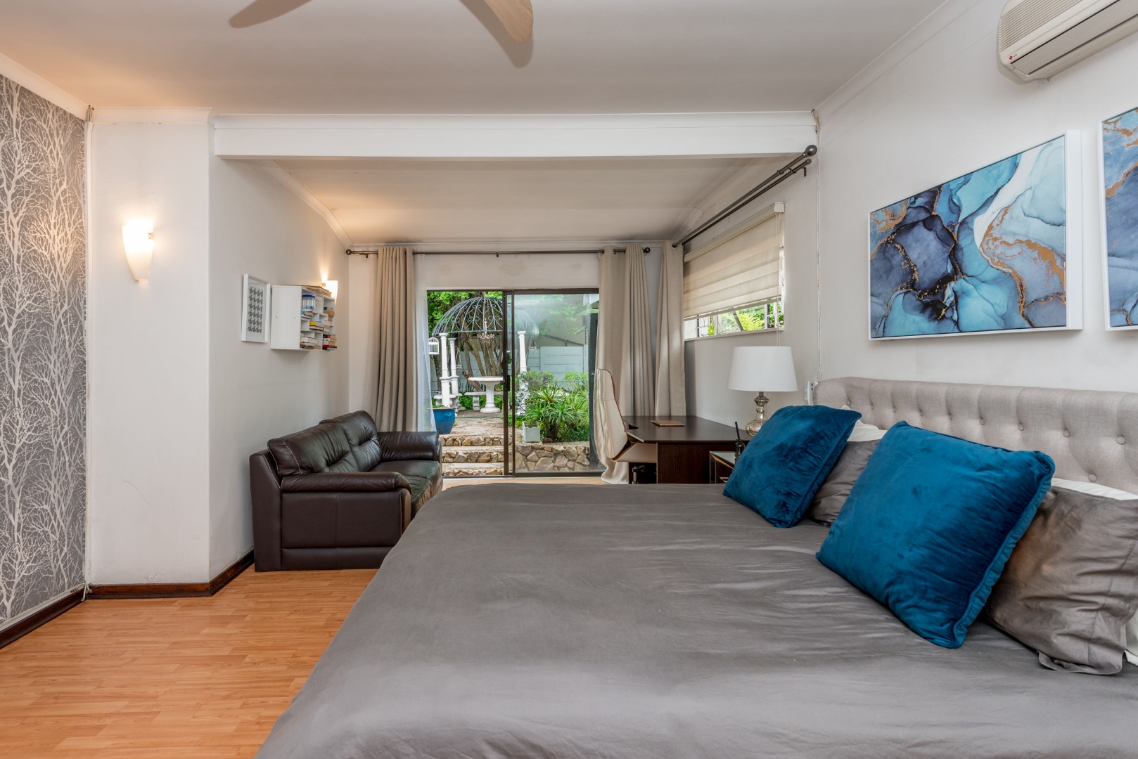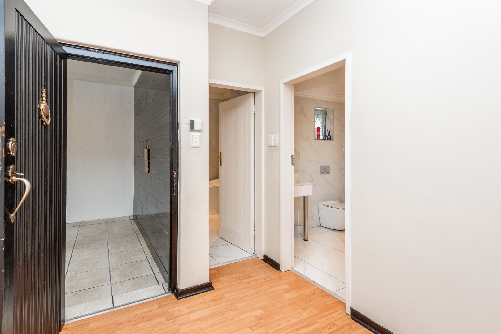 Accommodation comprises three opulent, light and airy bedrooms and three-and-a-half bathrooms including two private ensuites and a convenient guest toilet. Each space is meticulously designed to provide a tranquil retreat, offering privacy and comfort for all residents. Two bedrooms open out to the front garden and the Master bedroom opens out onto an exclusive romantic steel pergola with a table and chairs to enjoy the sunsets with refreshments after a hard day's work. The third bedroom ensuite has its own entrance that also opens out onto the back of the garden, over looking the Sandton skyscrapers.
