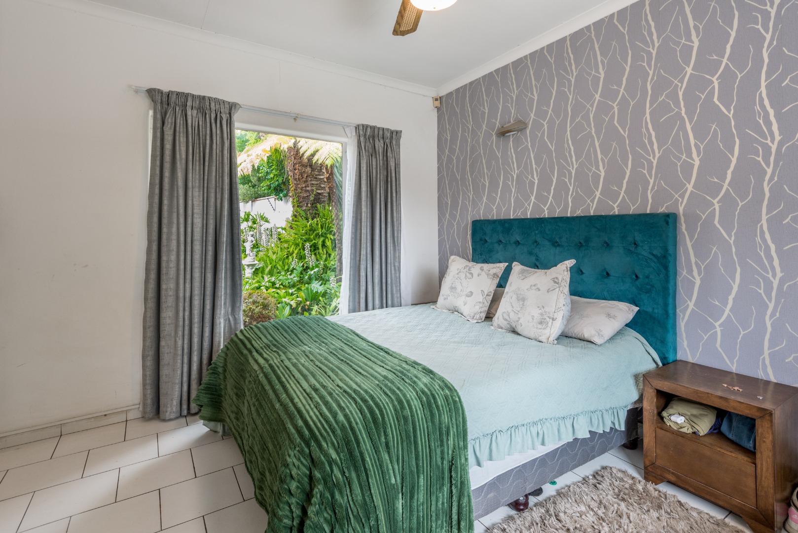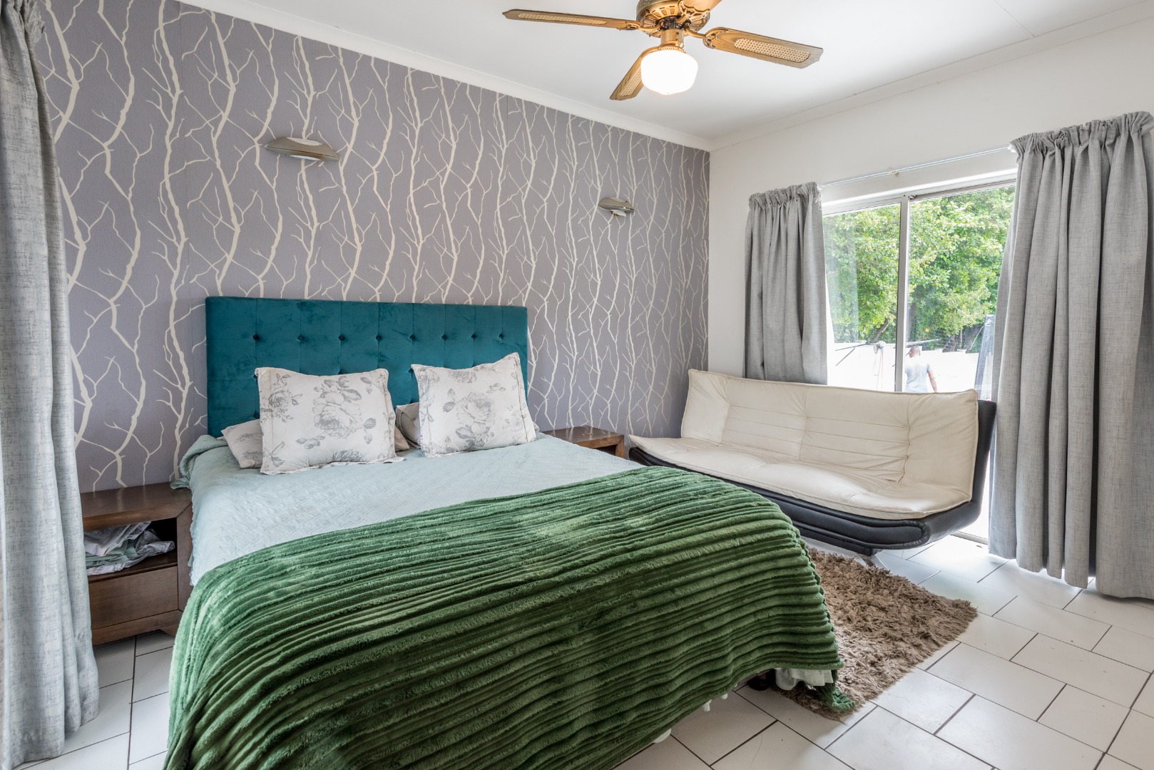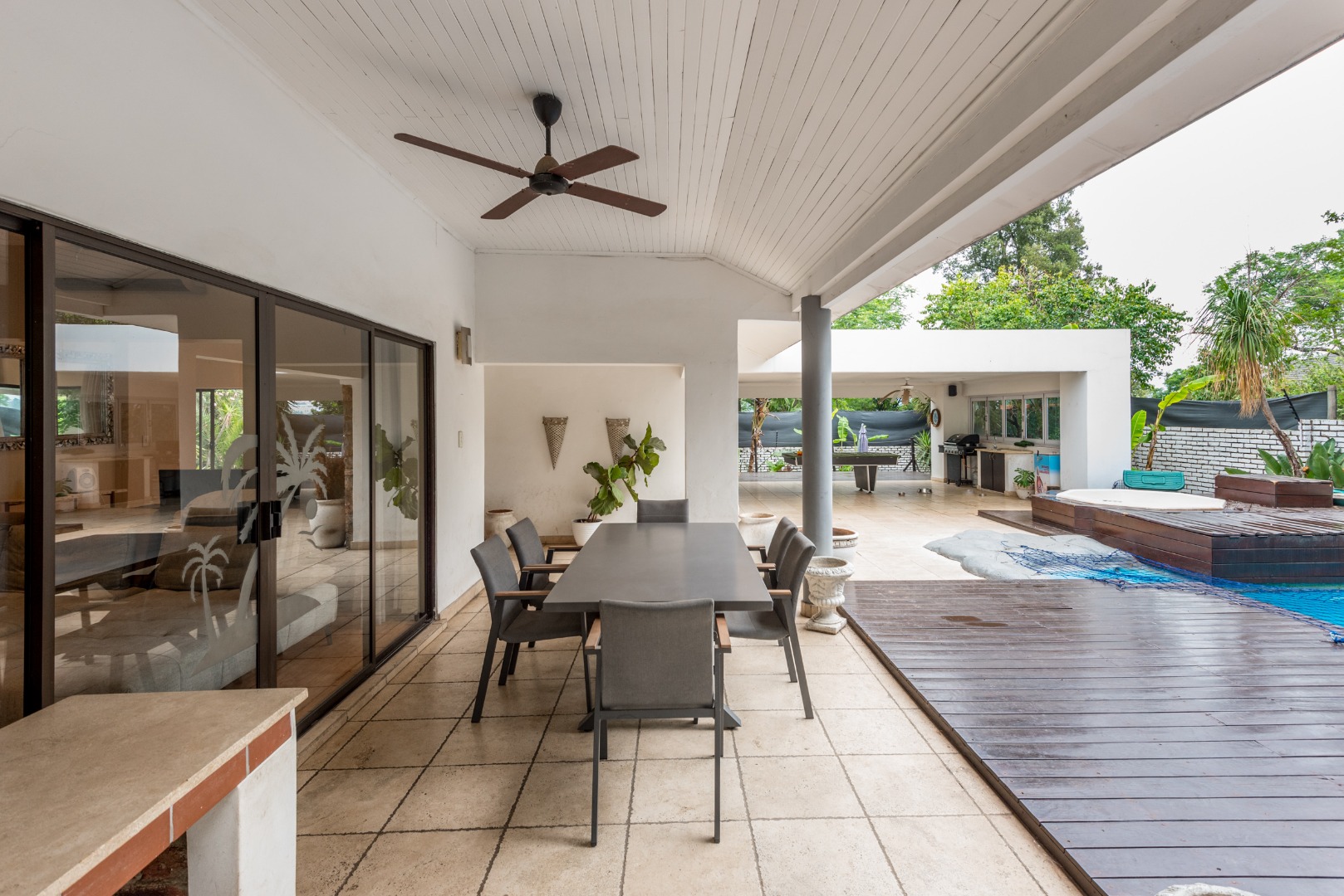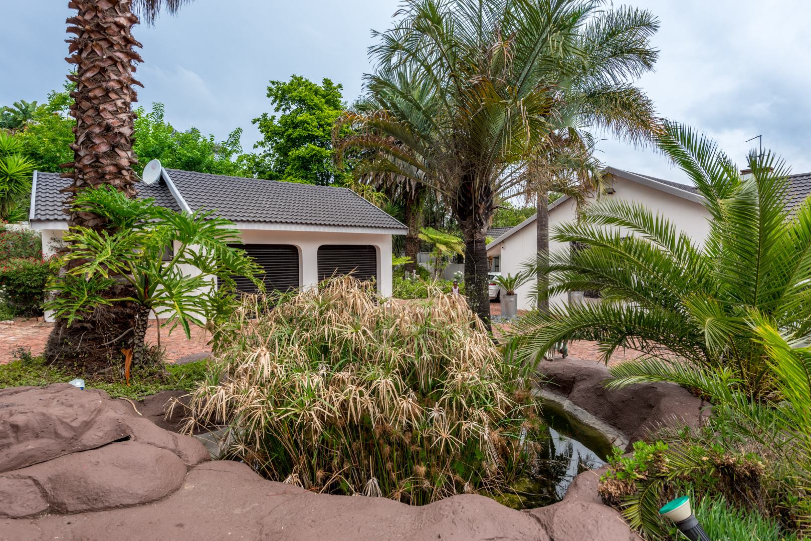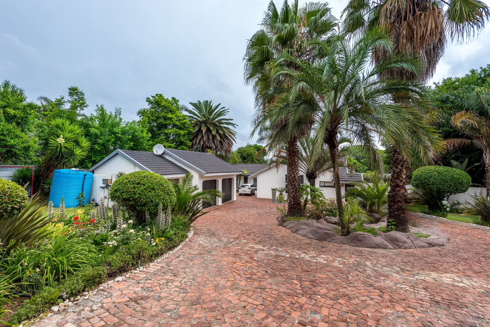 The outdoor oasis is an entertainer's dream, featuring two sprawling covered patio, a sun-drenched deck, and a sparkling swimming pool complemented by a luxurious jacuzzi, a braai area a built in pizza oven overlooks a well kept garden, sustained by an irrigation system.. Practical amenities include staff quarters with outside toilets, ample storage, and a pet-friendly environment.