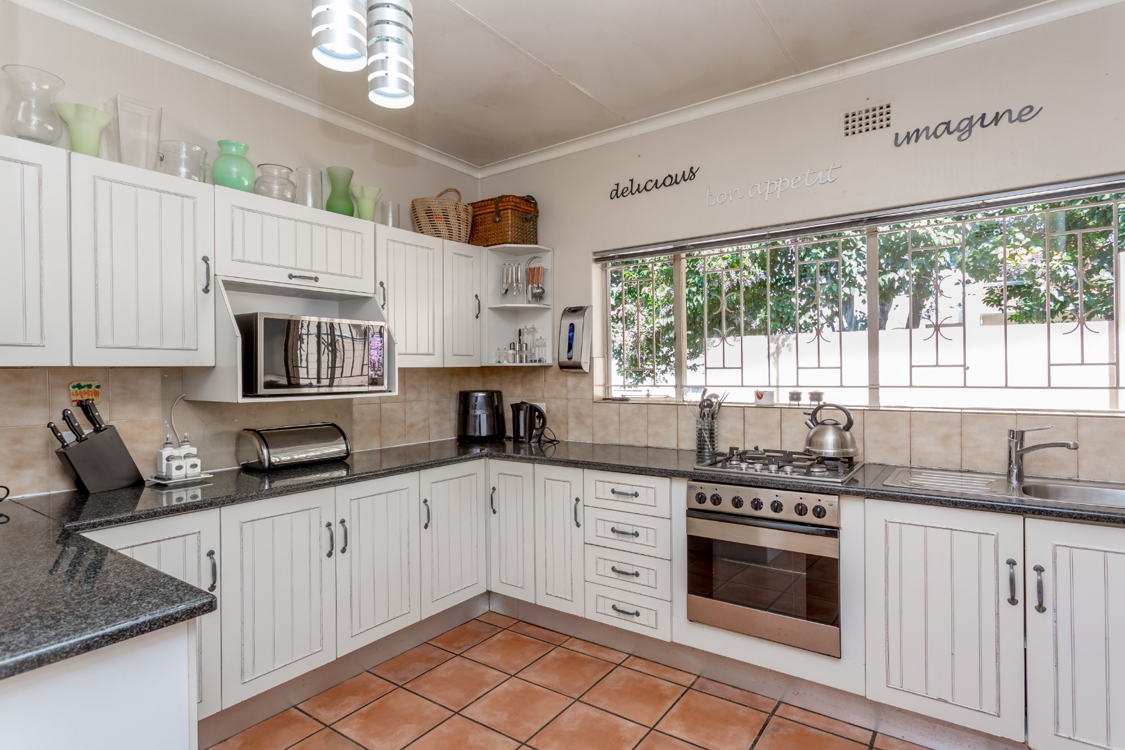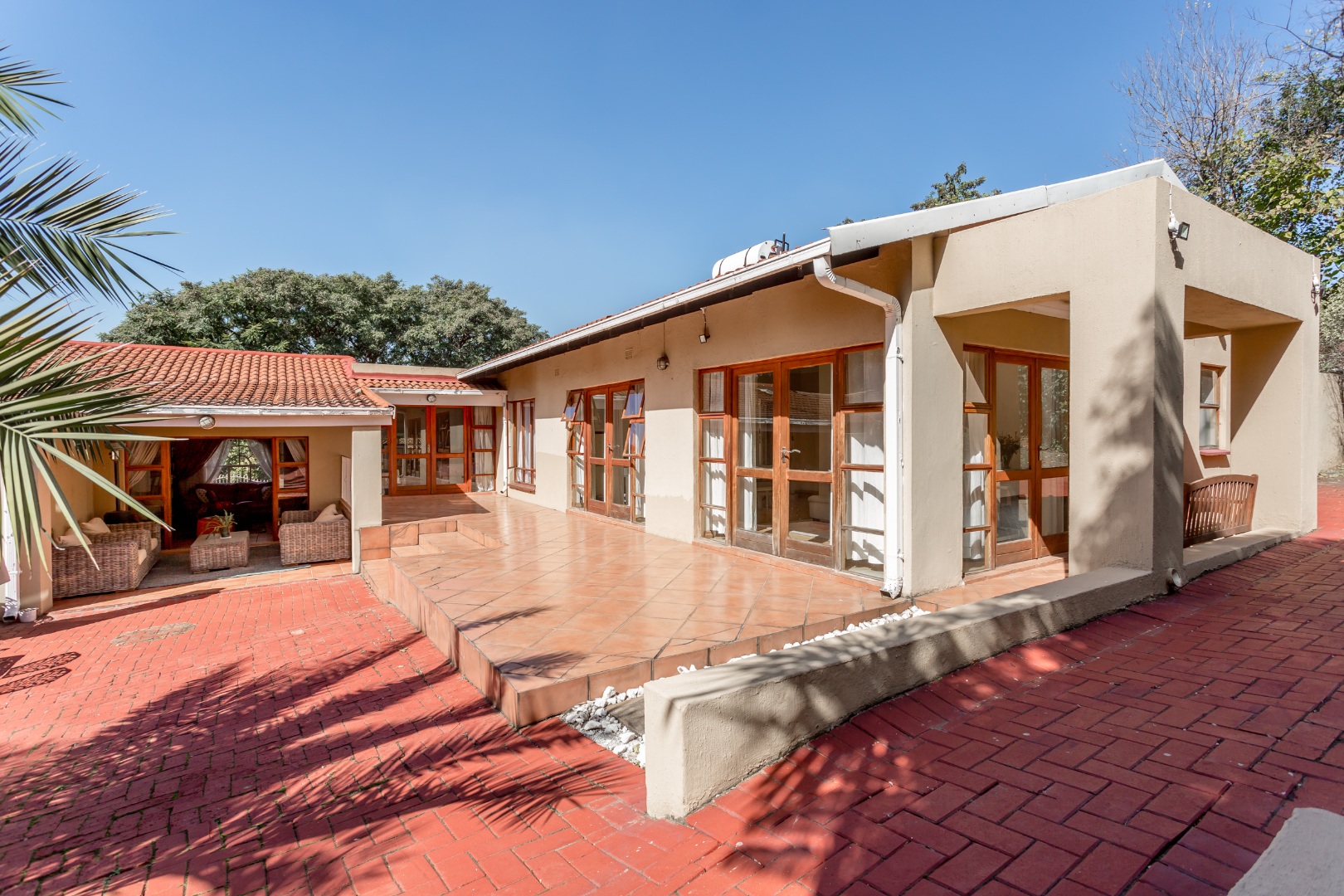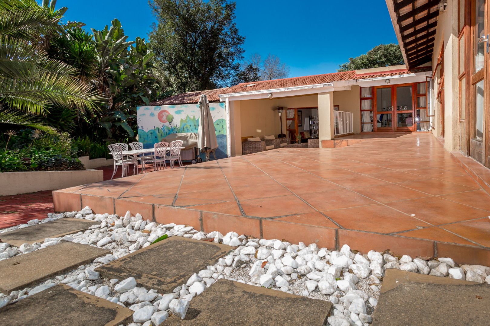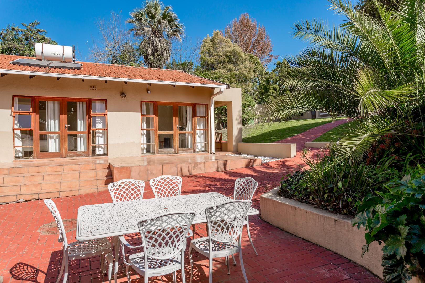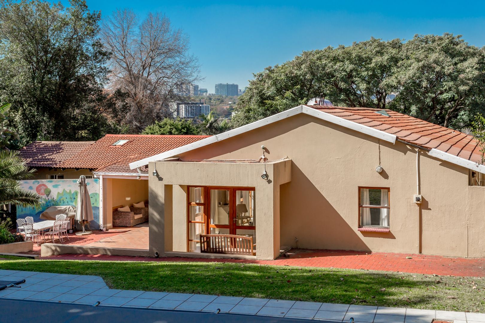 The entertainment-ready covered deck overlooks a sparkling swimming pool, making it the perfect setting for weekend gatherings, braais or simply relaxing in the sun. The spacious yard and garden front and back of the house offers ample room for kids, pets or even future extensions.