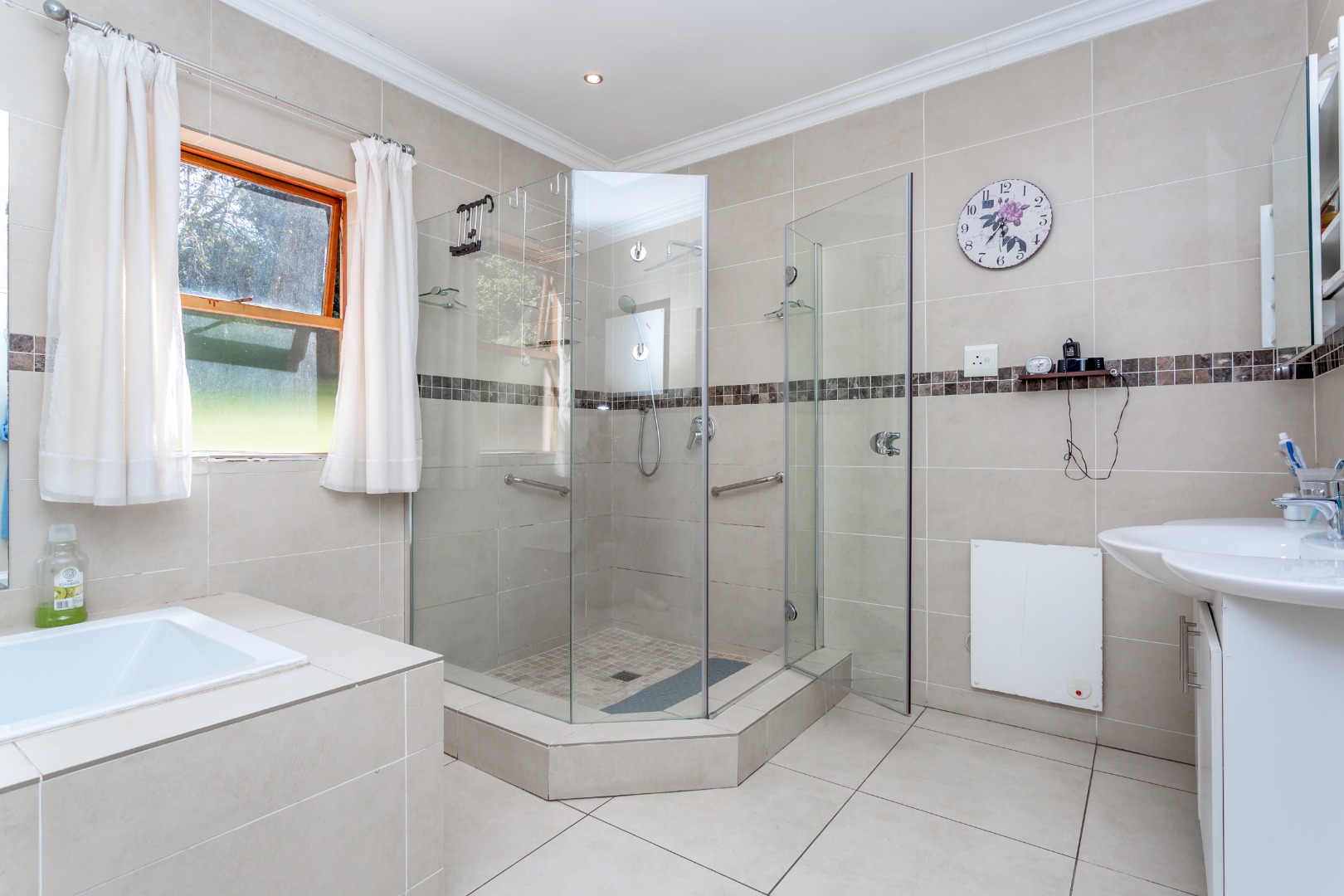 Double garage and ample parking space, geyser on Solar and inverted batteries