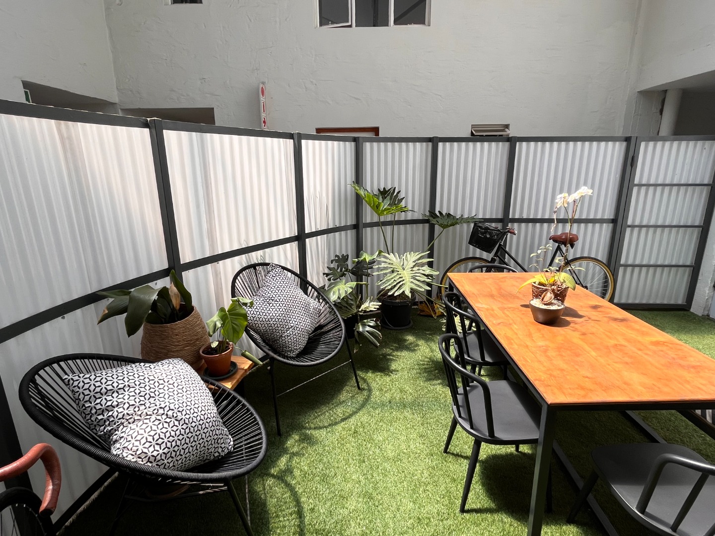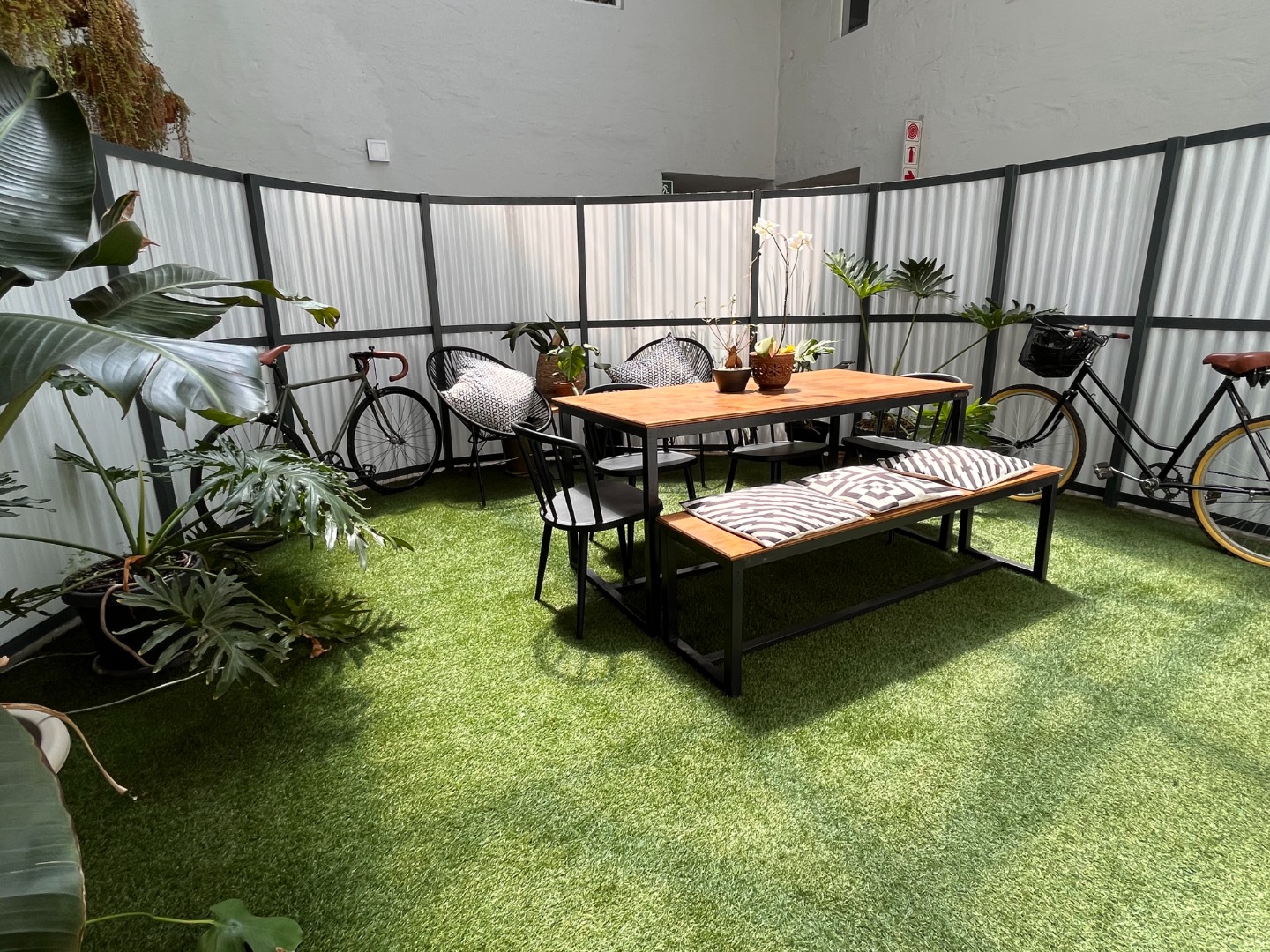 Open Plan Living area downstairs that opens out onto an indoor patio.