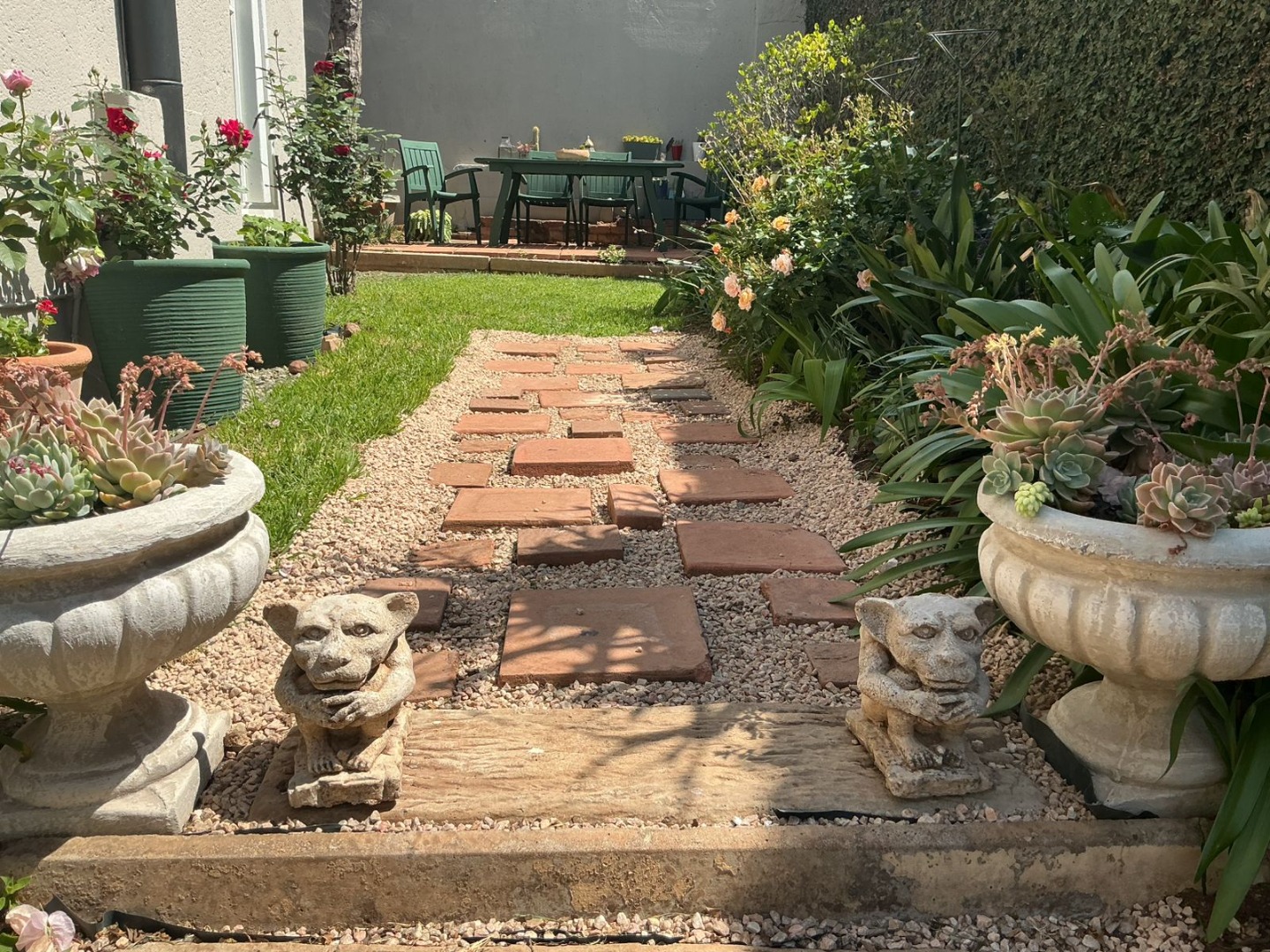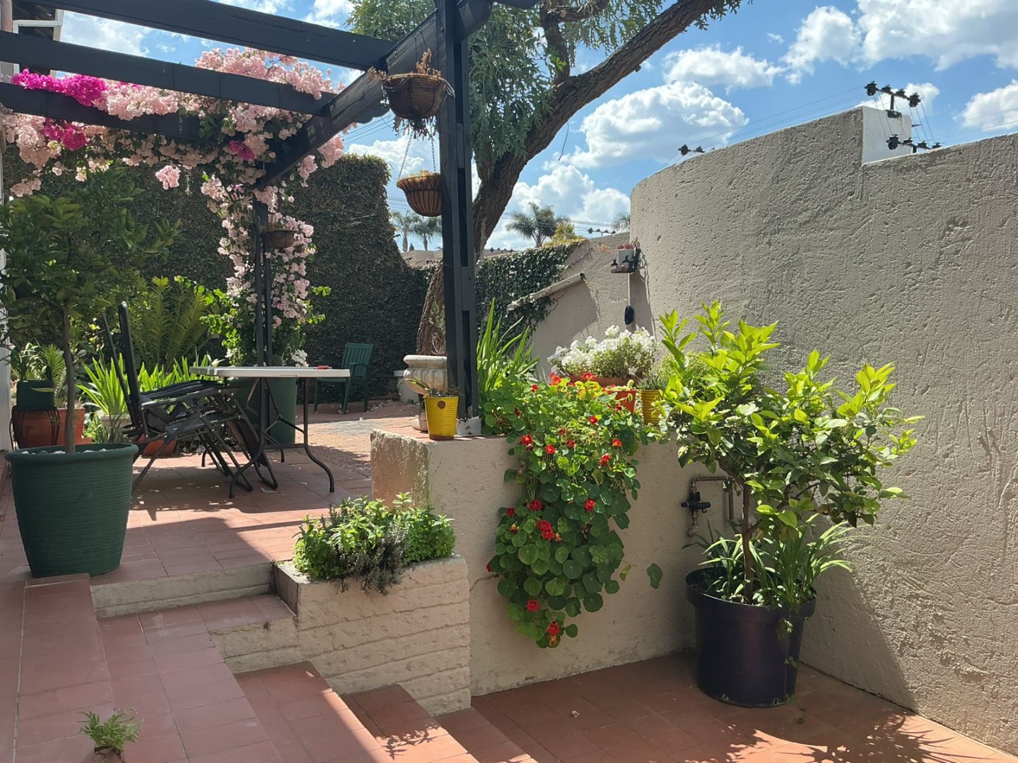 Step outside to a private oasis, where a vibrant, lush garden awaits. Multiple paved patio areas, adorned with charming pergolas and an abundance of bougainvillea and potted plants, offer shaded retreats perfect for outdoor dining or quiet contemplation. This pet-friendly property ensures your furry companions can also enjoy the secure outdoor space, enhancing the overall lifestyle appeal.