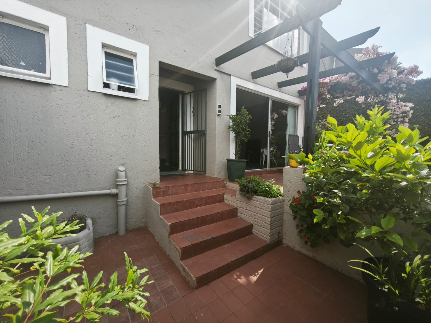 This home really shines with its fantastic indoor-outdoor flow. Large sliding doors open up to a vibrant, paved patio and a lush garden, complete with beautiful flowering plants like bougainvillea. It’s an ideal spot for relaxing after a long day or enjoying a cup of coffee in the morning. You'll also appreciate the convenience of a guest toilet and an entrance hall, making it easy to welcome visitors.