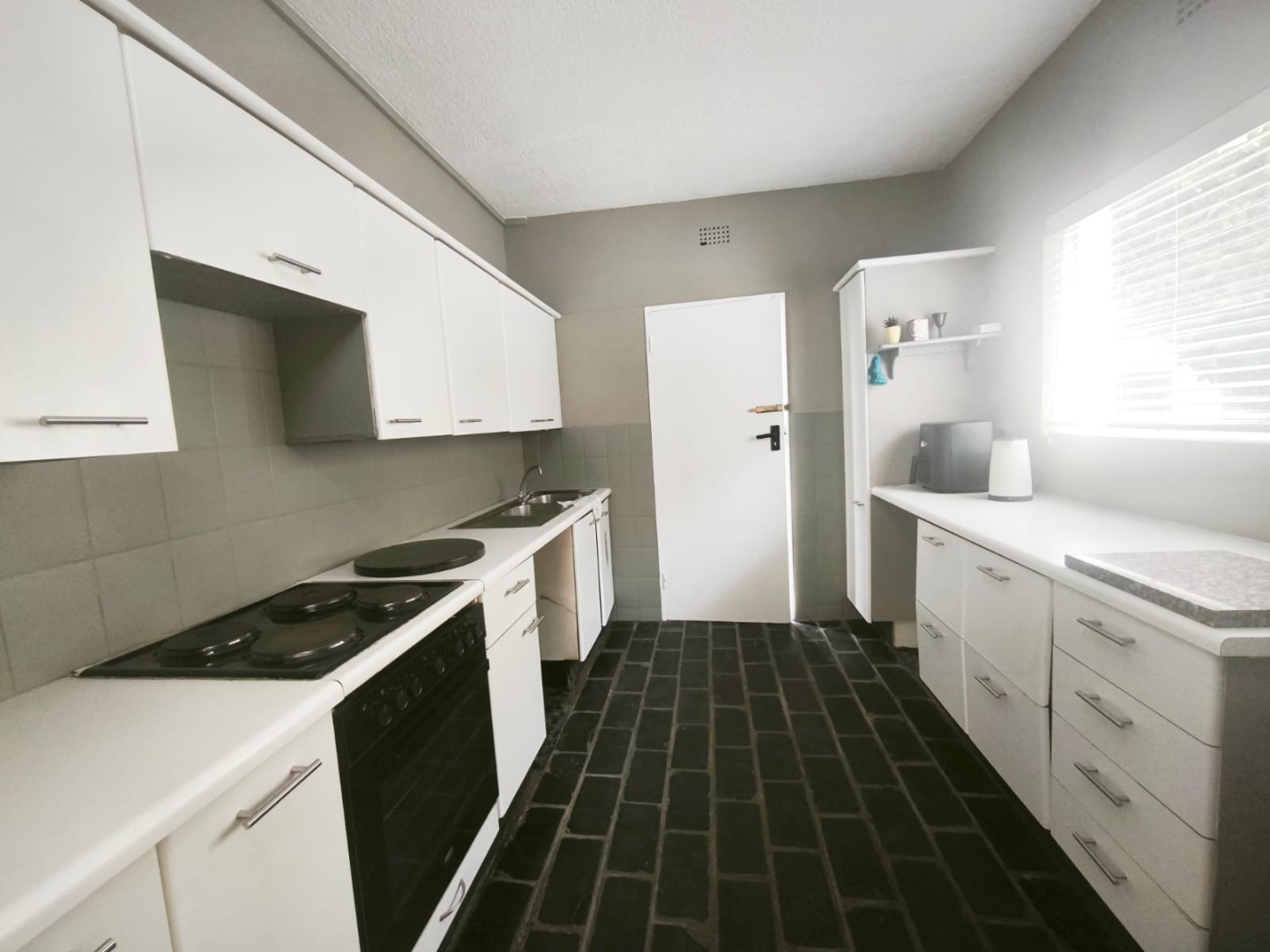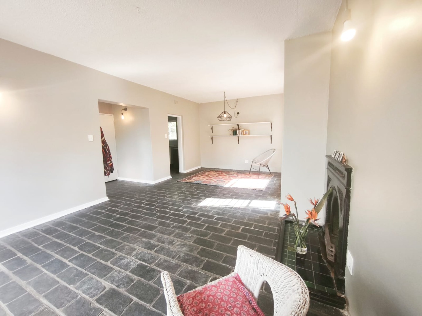 Looking for a lovely place to call home in Johannesburg? This charming 3-bedroom, 2-bathroom residential rental in Greymont is just waiting for you! Step inside and you'll find a spacious, open-plan living area with unique dark paver and slate-like tiled flooring that adds so much character. There's even a decorative fireplace, perfect for adding a cozy touch, and built-in shelving for all your bits and bobs. The kitchen is super functional with white cabinets, ample counter space, and a built-in stove and oven, all bathed in natural light.