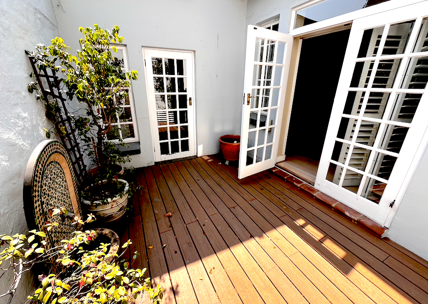 The main bedroom is a true retreat, opening out onto a private, enclosed patio and garden that feels like your own slice of serenity. The ensuite bathroom adds a touch of luxury, while the third bedroom also flows directly into the garden, making it ideal for guests, a home office, or a creative studio.