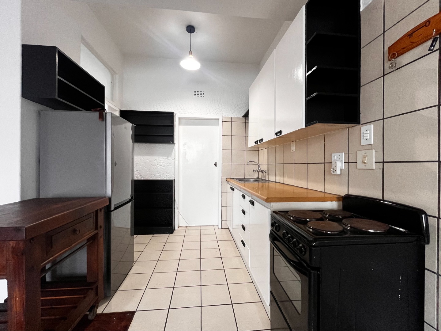 Step into a sunlit living space framed by large windows and freshly painted white walls, creating a clean, modern canvas. The rich dark parquet flooring adds warmth and character, while the tiled kitchen keeps things practical and easy to maintain. The kitchen itself is compact and cleverly laid out, Including the convenience of a Fridge and Washing Machine.