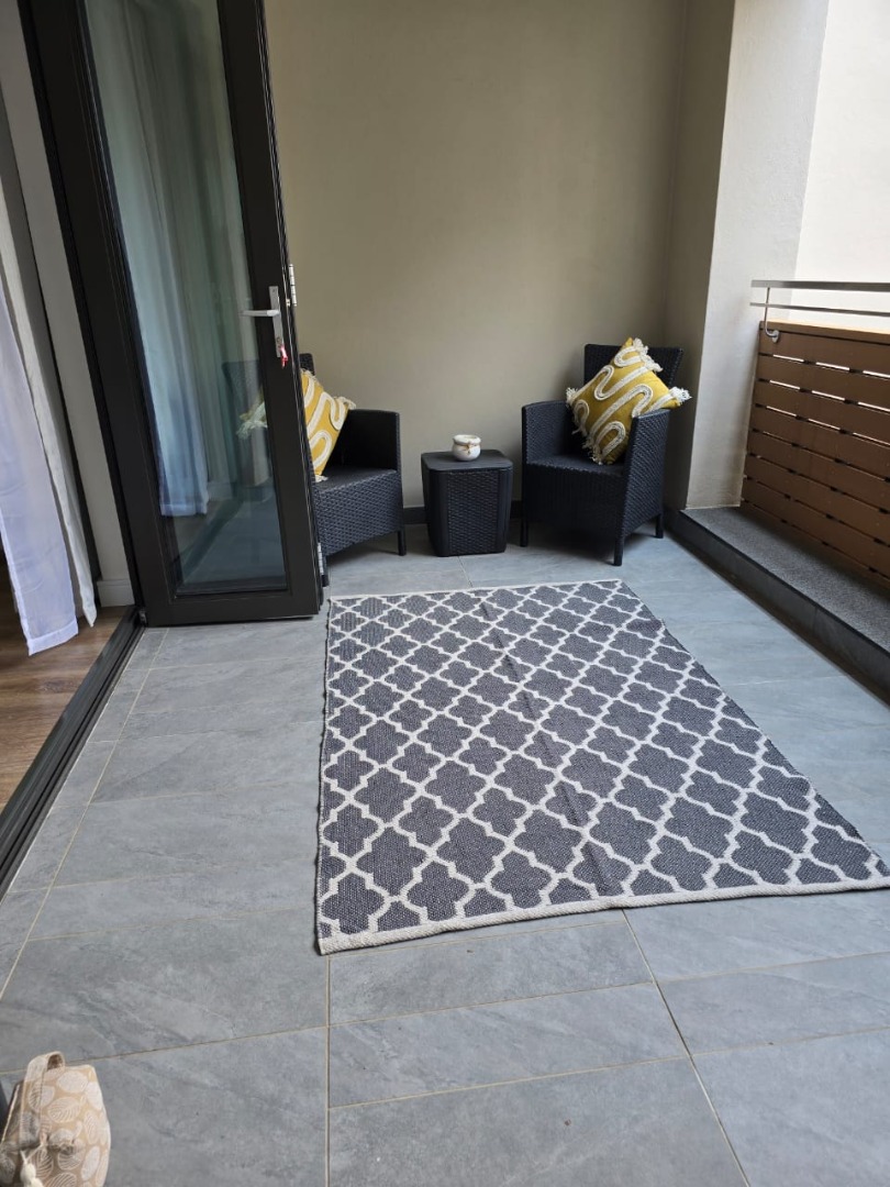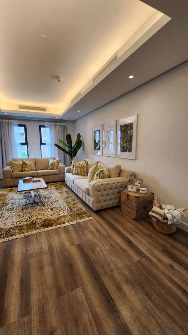 Situated on the 2nd floor, the apartment features an open-plan layout with a seamless flow between the living, dining, and kitchen areas. The spacious kitchen is fitted with ample cupboard space, a centre island, and a gas stove, making it perfect for both everyday living and entertaining.