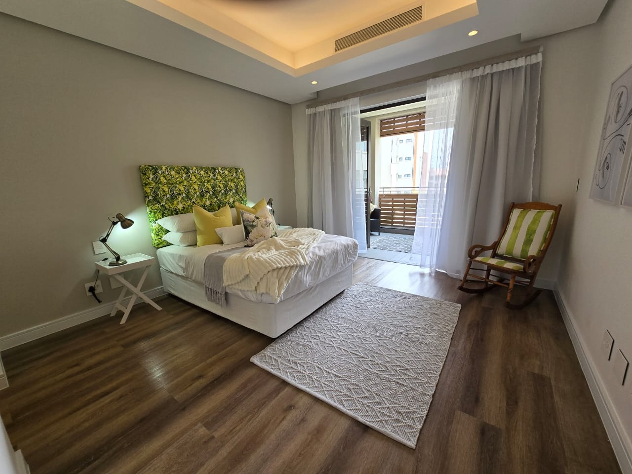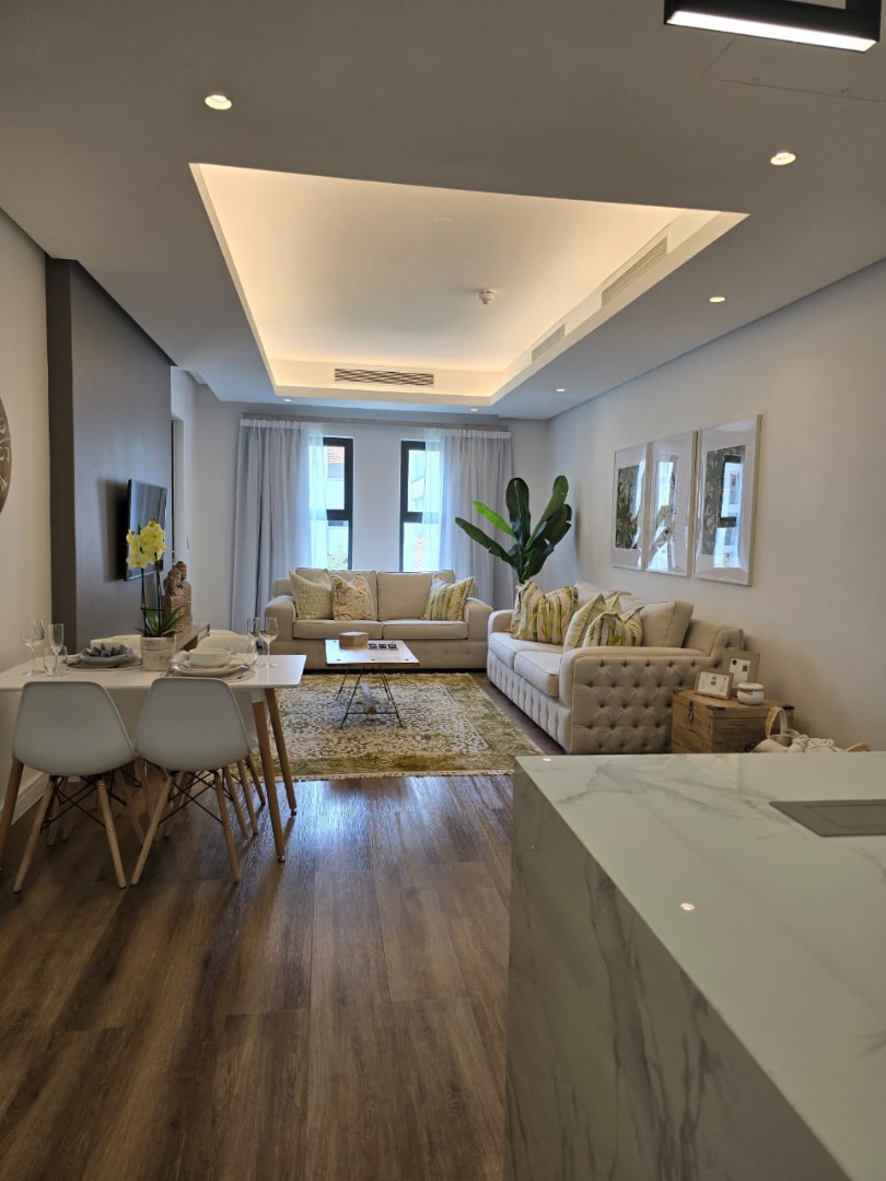 Situated on the 2nd floor, the apartment features an open-plan layout with a seamless flow between the living, dining, and kitchen areas. The spacious kitchen is fitted with ample cupboard space, a centre island, and a gas stove, making it perfect for both everyday living and entertaining.