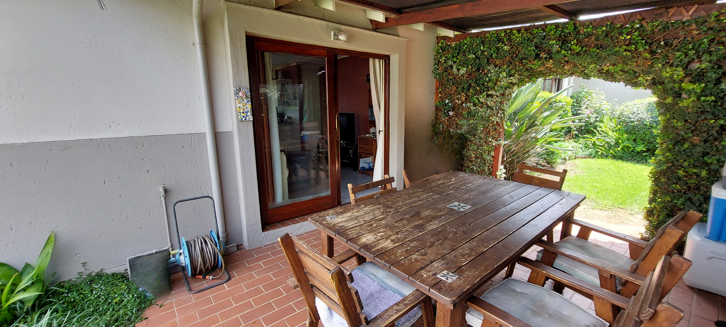 The open-plan lounge area opens out to a private covered patio and established pet friendly garden. Well-appointed kitchen includes ample cupboard and counter space, a double sink, breakfast bar, space for 1 water appliance and double door fridge. Passage leads to three carpeted bedrooms. Main with full en-suite bathroom. Second bathroom with bath.Fibre ready, 1 lockable covered parking bay and pet friendly for 2 small pets.