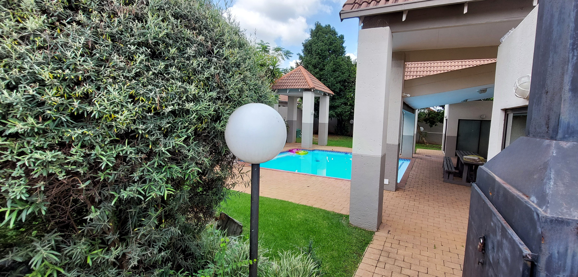 Complex features include a secure access gate, electric fencing, CCTV cameras, a sparkling pool with entertainment area and communal braai facilities.