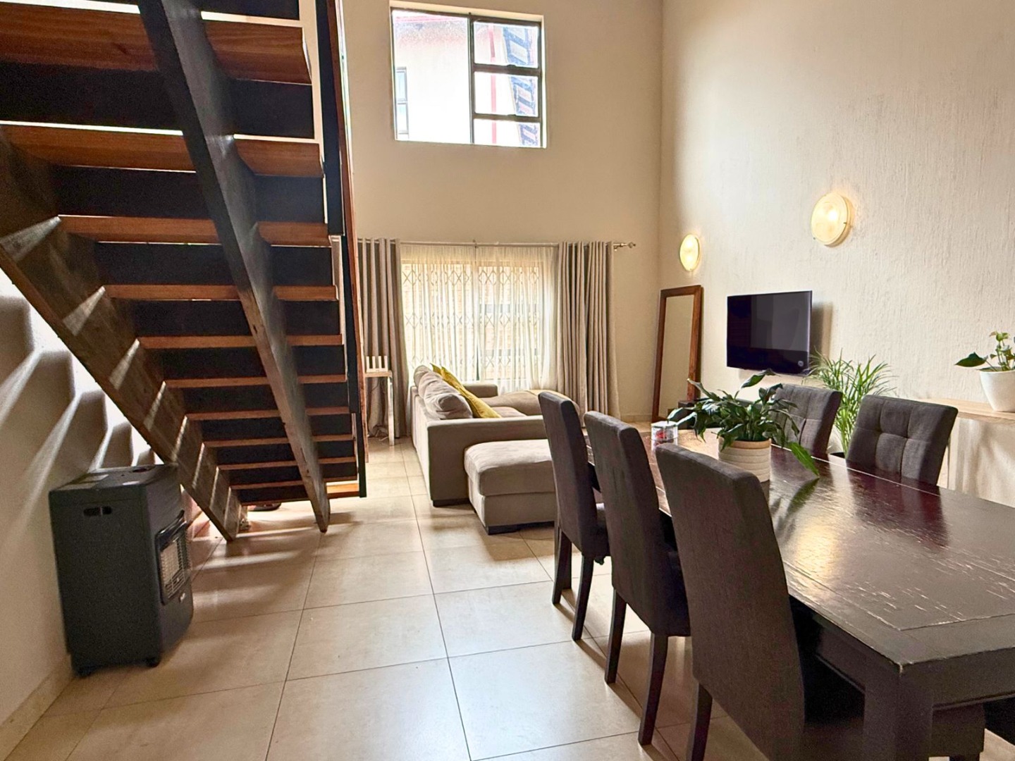 This modern two-story residence offers an exceptional rental opportunity within a secure estate in Randburg. Spanning 199 square metres, this home features four well-appointed bedrooms and two and a half bathrooms, including a convenient guest toilet. The layout includes a dedicated dining room and a functional kitchen, designed for comfortable family living. A significant advantage of this property is the inclusion of a private flatlet, providing versatile space ideal for extended family, a home office, or staff accommodation, enhancing the overall appeal and functionality of the home. The property boasts excellent outdoor integration, with sliding glass doors leading to a private ground-floor patio and a first-floor balcony, perfect for enjoying the South African climate and providing ample natural light indoors. A small, manageable garden offers a private green space for relaxation. Parking is well catered for with a double garage, ensuring secure storage for vehicles. This pet-friendly residence is designed to accommodate a modern lifestyle, offering both comfort and convenience. Security is paramount within this complex and estate, featuring 24-hour security, an access gate, and a security gate, providing residents with peace of mind. The home is fibre-ready, ensuring high-speed internet connectivity for work or entertainment. This property is ideally suited for families or professionals seeking a spacious, secure, and well-connected living environment within a sought-after Randburg location. Cedar Creek offers a desirable suburban lifestyle in Randburg, known for its accessibility and range of amenities. This established area provides a convenient base for residents, combining tranquil living with urban proximity. Key Features: * Four Bedrooms, 2.5 Bathrooms * Spacious 199 sqm Floor Size * Dedicated Dining Room & Kitchen * Private Flatlet for Versatile Use * Double Garage * Balcony & Ground-Floor Patio * Private, Manageable Garden * 24-Hour Security Estate with Access Gate * Fibre Connectivity * Pet-Friendly
