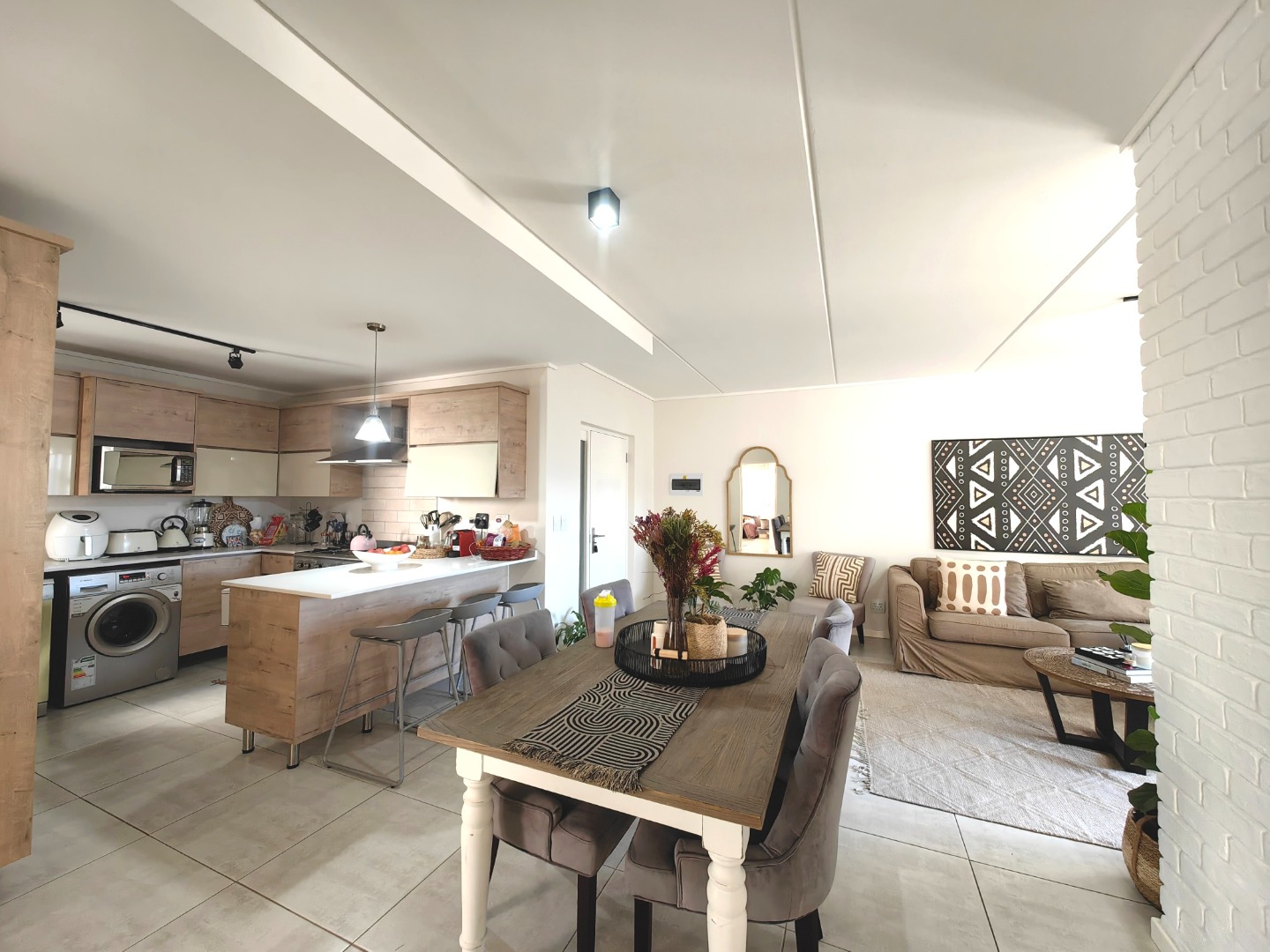 Discover modern living in this inviting 3-bedroom, 2-bathroom apartment located within a secure complex in Noordhang, Randburg. Spanning 104 square metres, this residence offers a contemporary open-plan layout, seamlessly connecting the lounge and kitchen areas. The stylish kitchen boasts two-tone cabinetry, and white countertops, a gas hob, and complemented by a chic subway tile backsplash and a breakfast bar. The living space is further enhanced by a feature white brick accent wall, tiled flooring throughout, and special lighting, creating a bright and welcoming atmosphere. A dedicated study provides an ideal space for remote work.