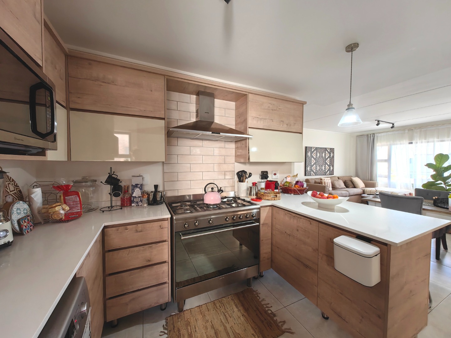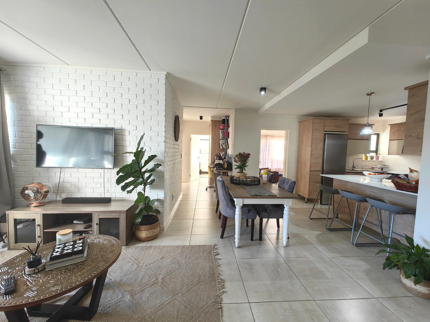 Discover modern living in this inviting 3-bedroom, 2-bathroom apartment located within a secure complex in Noordhang, Randburg. Spanning 104 square metres, this residence offers a contemporary open-plan layout, seamlessly connecting the lounge and kitchen areas. The stylish kitchen boasts two-tone cabinetry, and white countertops, a gas hob, and complemented by a chic subway tile backsplash and a breakfast bar. The living space is further enhanced by a feature white brick accent wall, tiled flooring throughout, and special lighting, creating a bright and welcoming atmosphere. A dedicated study provides an ideal space for remote work.