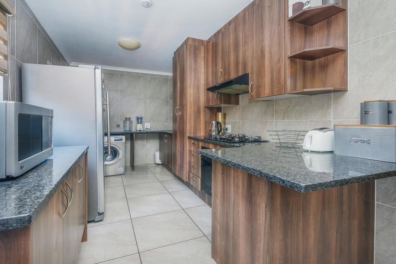This lovely 3-bedroom, 2.5-bathroom rental property in a secure complex is just the ticket! With a spacious 191 sqm floor size, there's plenty of room to spread out and relax. You'll love the open-plan living and dining area, perfect for relaxing or having friends over. The modern kitchen is a real highlight, boasting stylish wood-look cabinetry, sleek granite countertops, a gas hob, and even space for your washing machine – super convenient! Tiled floors throughout make for easy cleaning.