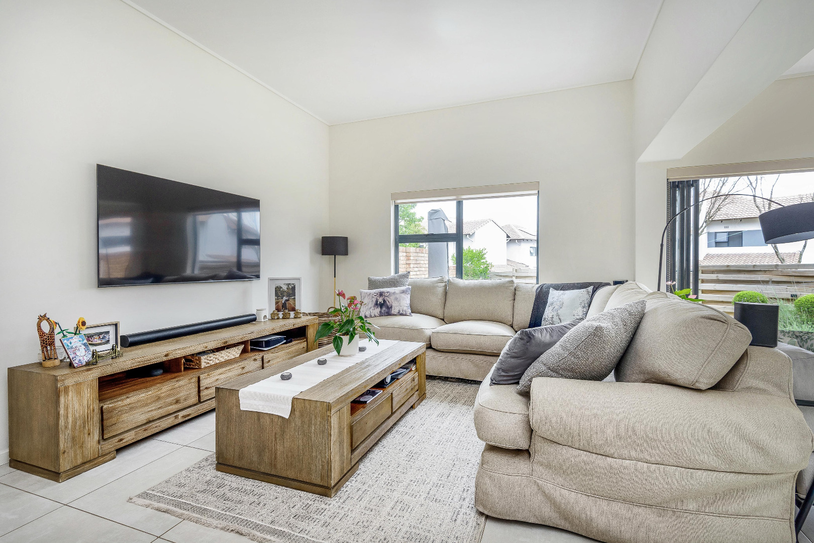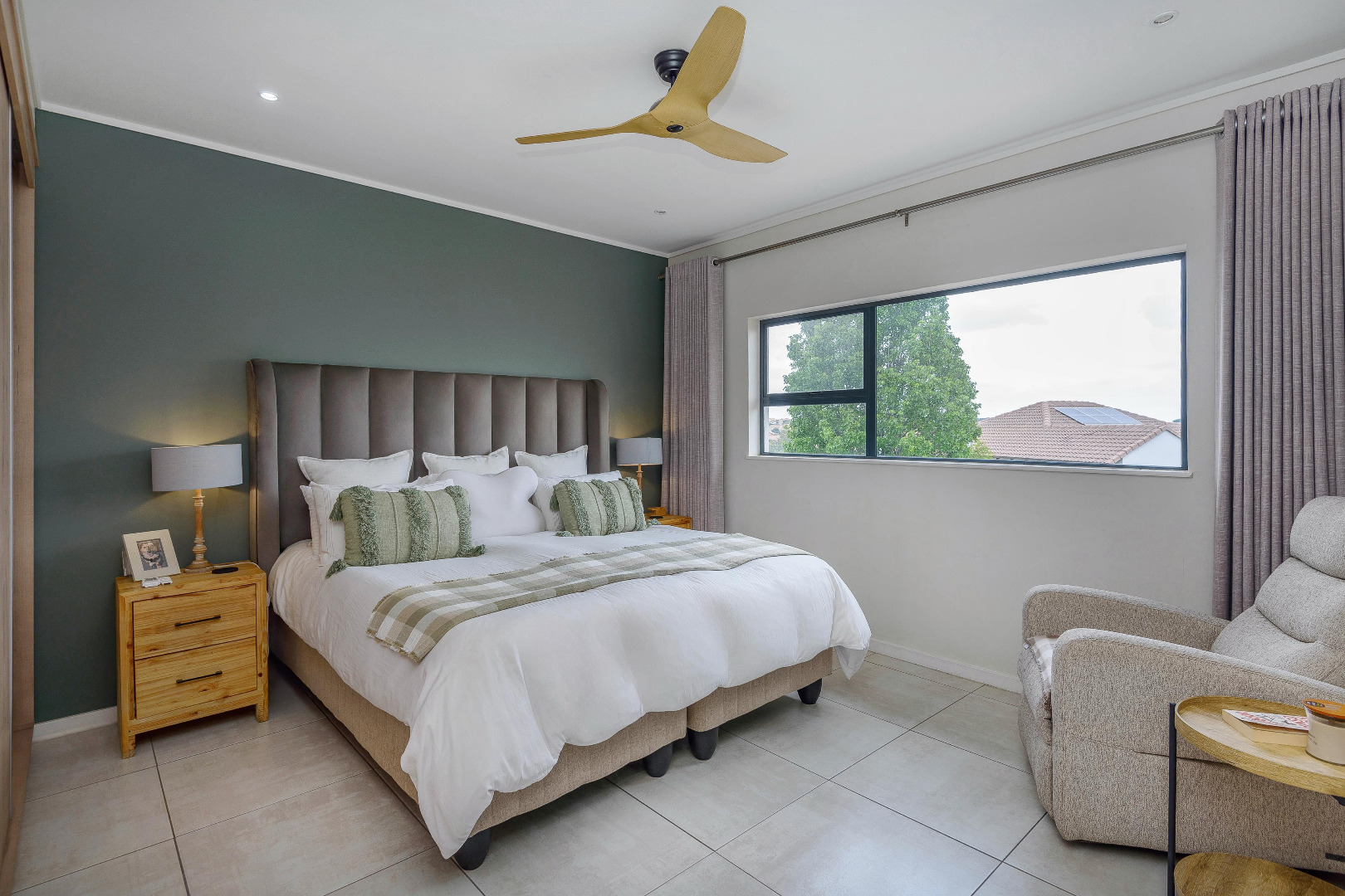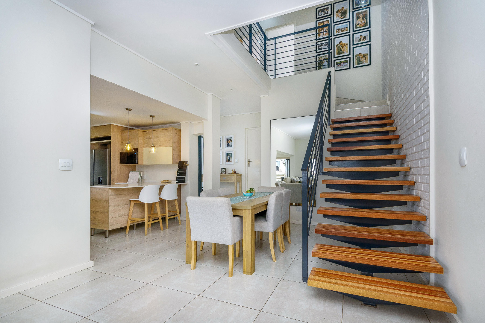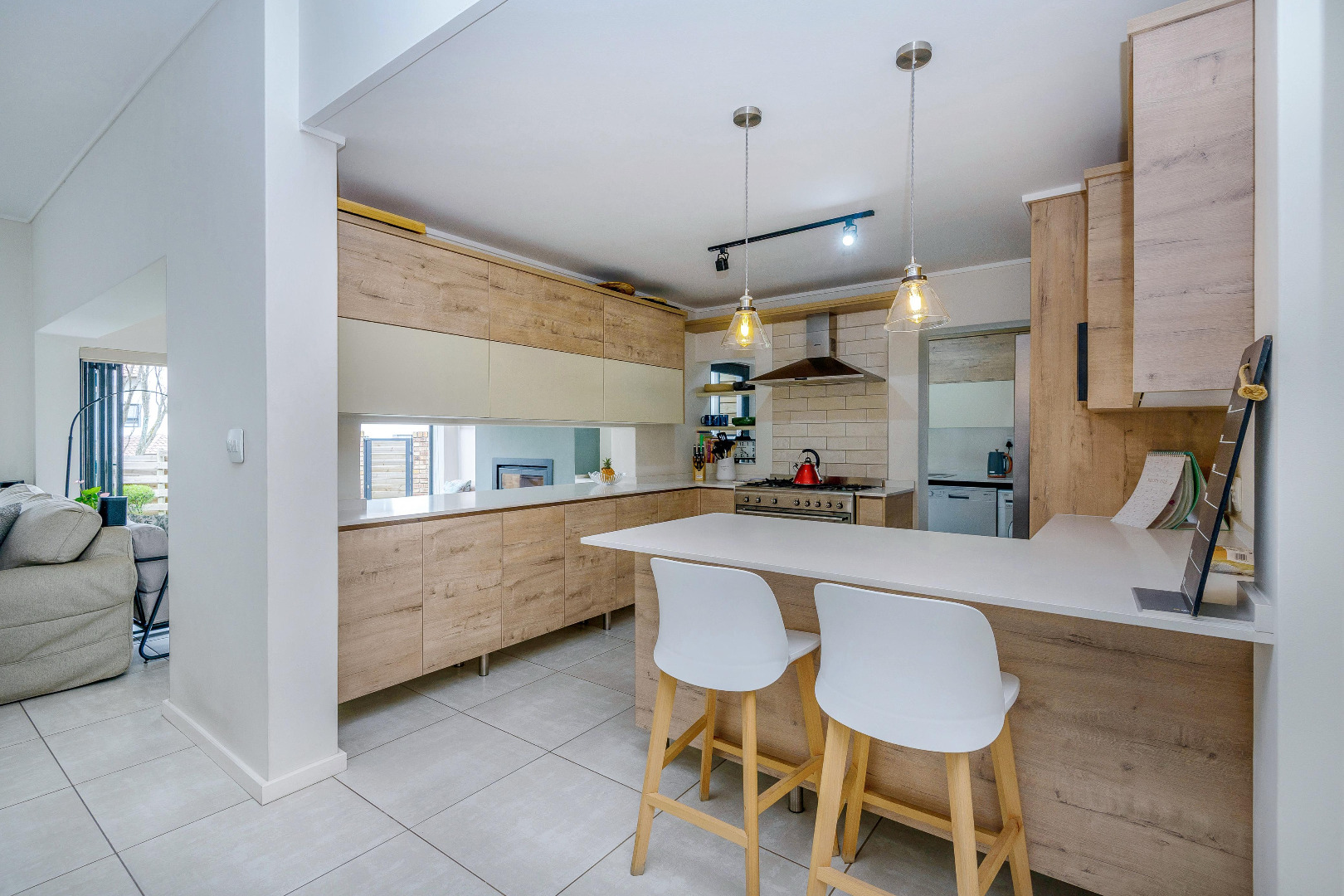 The home boasts an open-plan design with two spacious lounges, built in fire place, dining area and guest toilet. Modern kitchen with ample cupboard space, gas stove and scullery. Bi-fold stack doors to a low maintenance private garden.