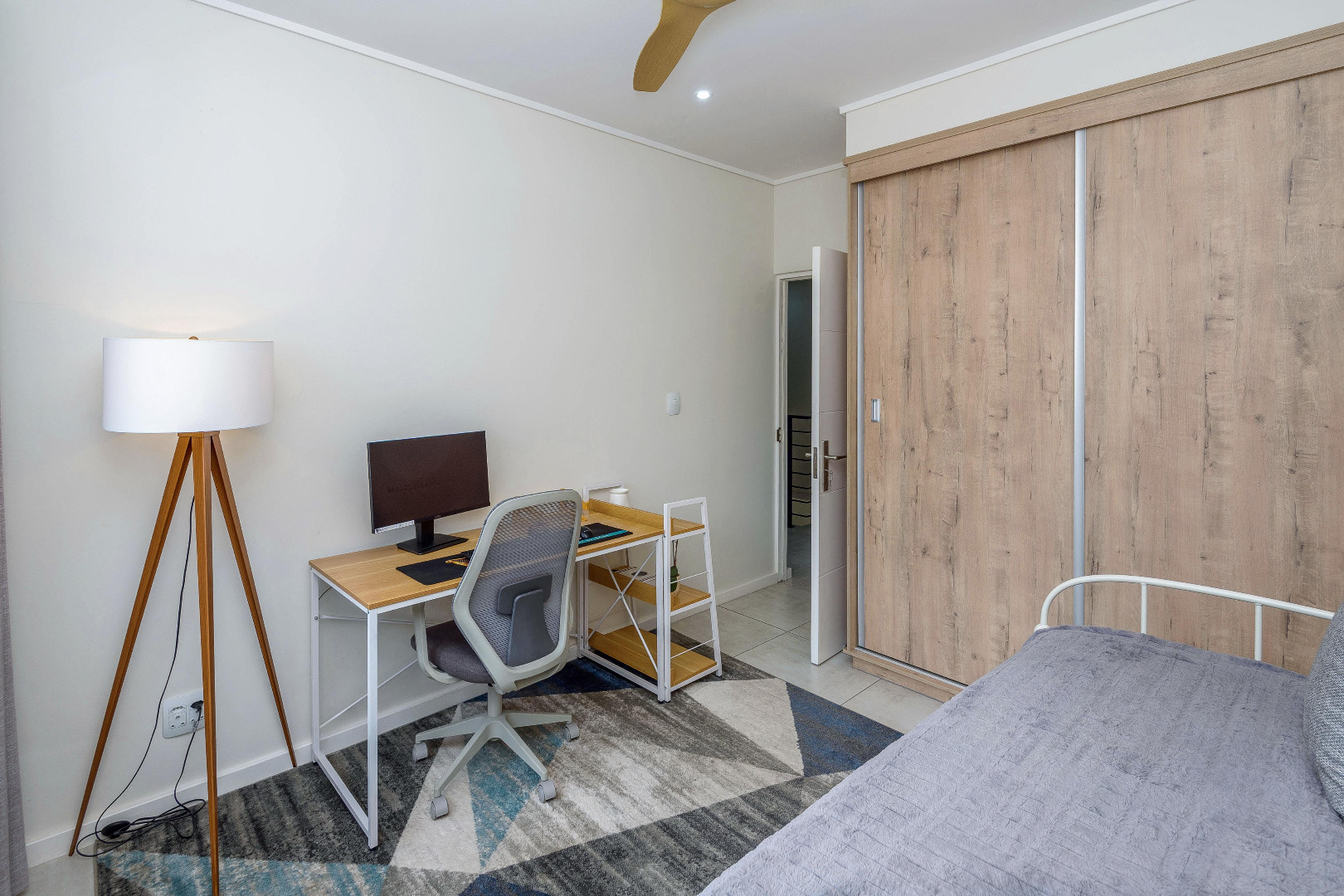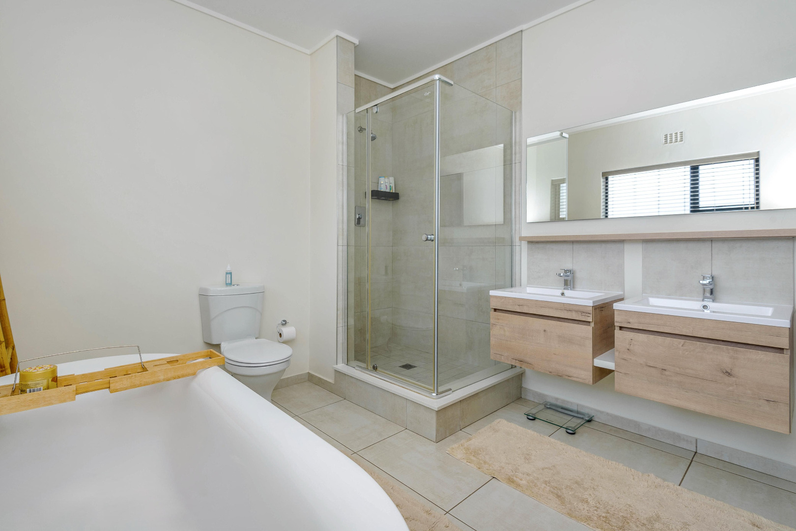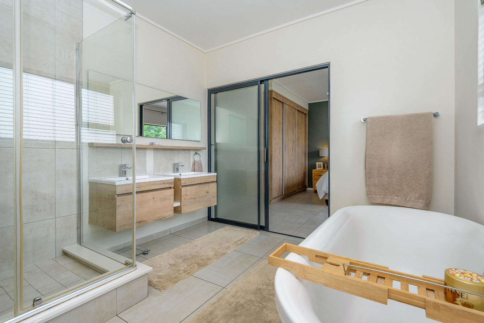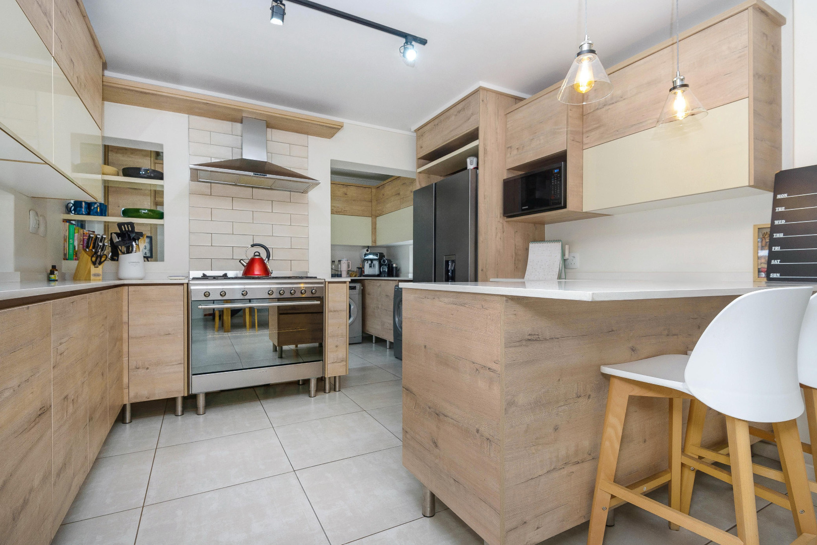 The home boasts an open-plan design with two spacious lounges, built in fire place, dining area and guest toilet. Modern kitchen with ample cupboard space, gas stove and scullery. Bi-fold stack doors to a low maintenance private garden.