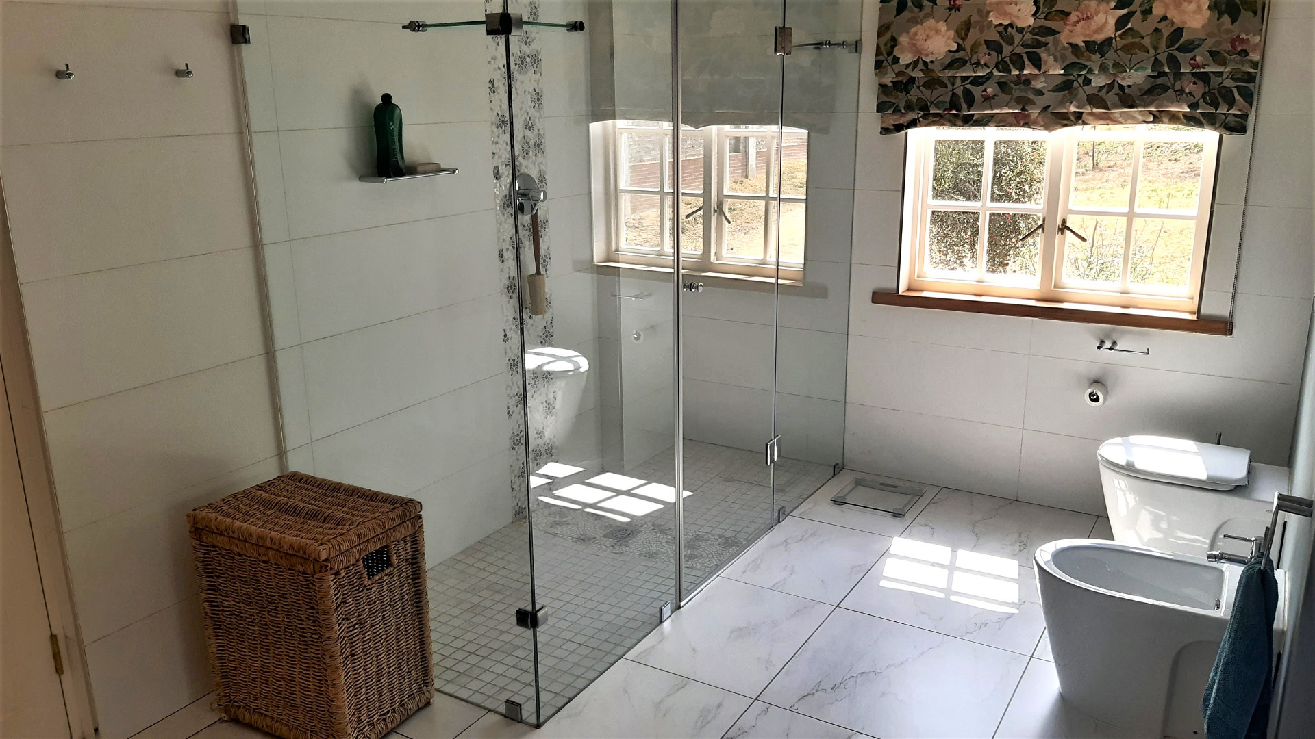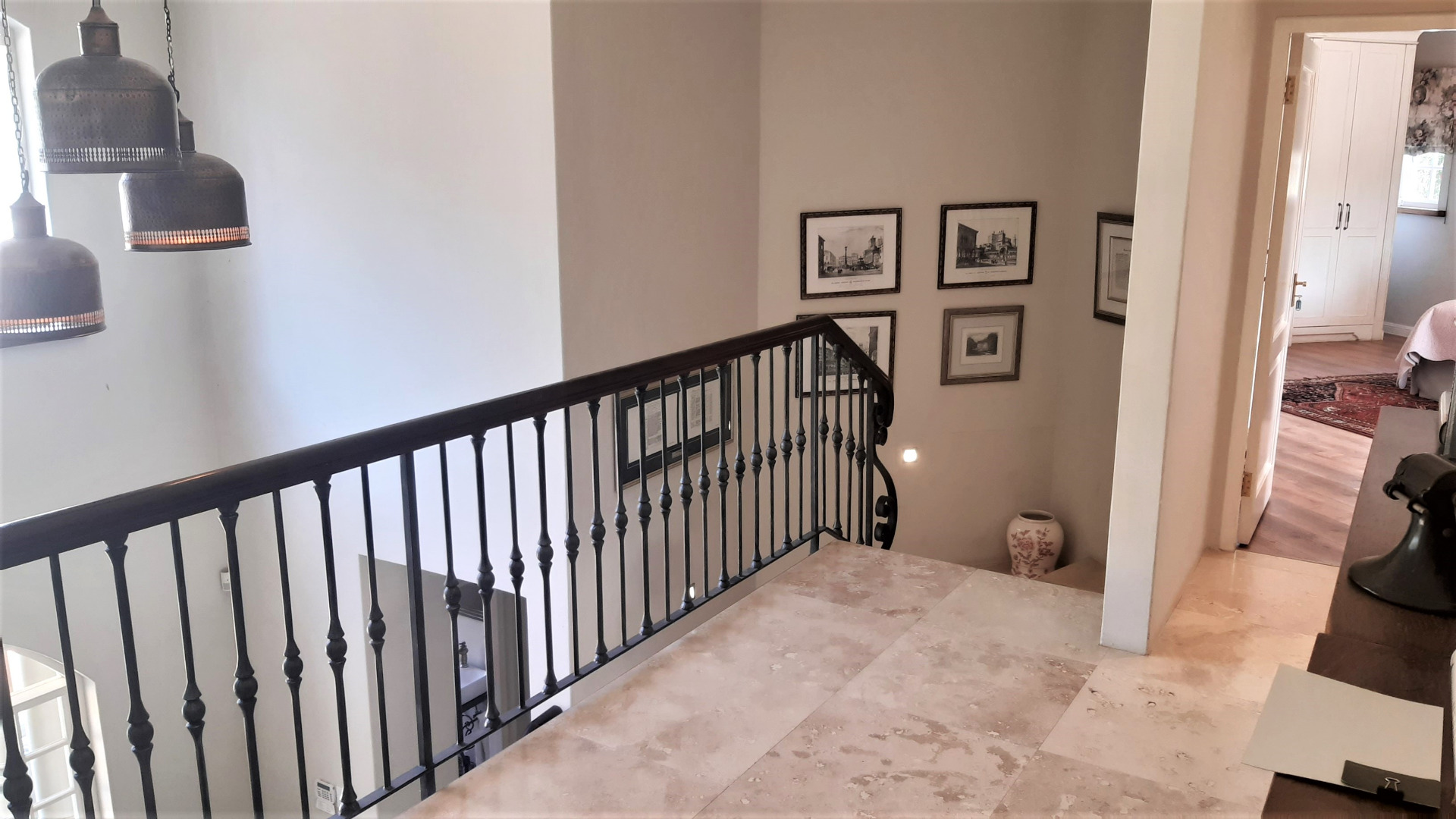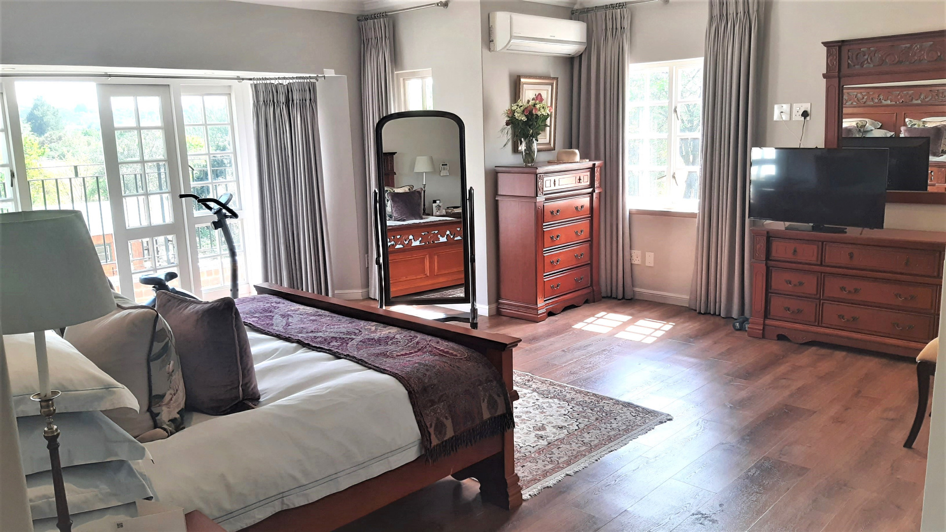 Upstairs to two spacious bedroom suites. Main suite includes a pajama lounge, 3 bedrooms and 2 bathrooms. Main bedroom includes a spacious dressing area and full en-suite bathroom. Guest suite with wall-wall built-in cupboard and full en-suite bathroom. All bedrooms open out to a communal upstairs balcony and tree top view.