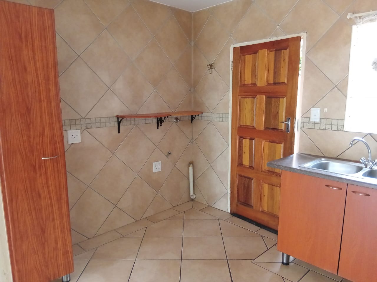 Security is a priority, with features designed for peace of mind. The unit benefits from high boundary walls, electric fencing, security gates on external doors, and burglar bars on windows, creating a secure environment. An outdoor tap and clothesline add to the practical amenities available.