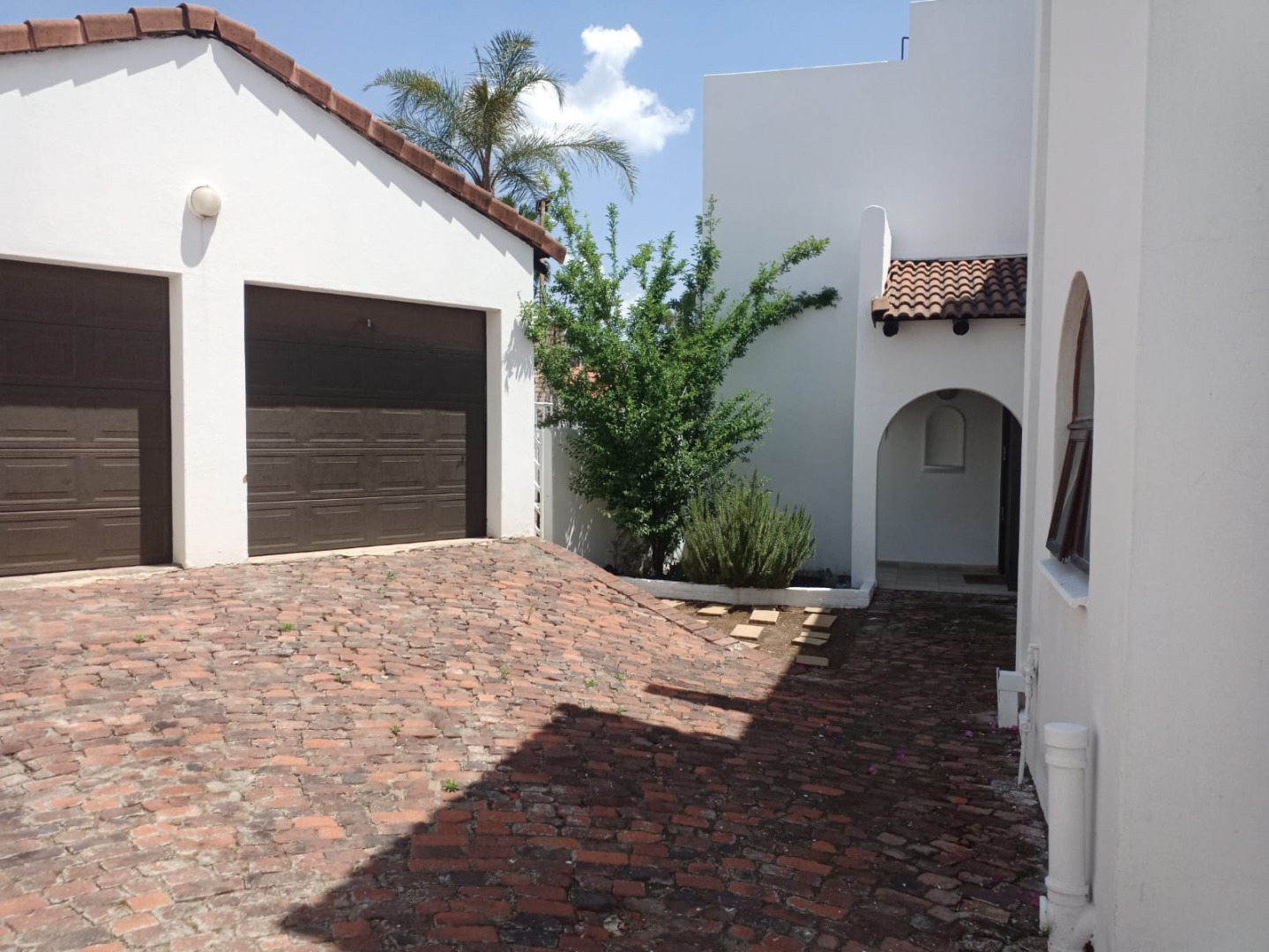 This distinguished three-bedroom, three-bathroom residence, situated within a secure complex in North Riding, offers a sophisticated living experience. Spanning 151 sqm, the property features an elegant open-plan layout with distinct multi-level zones, enhanced by pristine tiled flooring and characteristic arched windows and doorways. The well-appointed kitchen includes a dedicated pantry, complemented by a separate laundry area for convenience. Accommodation is further enhanced by three en-suite bathrooms, ensuring privacy and comfort for all occupants. A double garage and additional parking for four vehicles provide ample space for residents and guests.