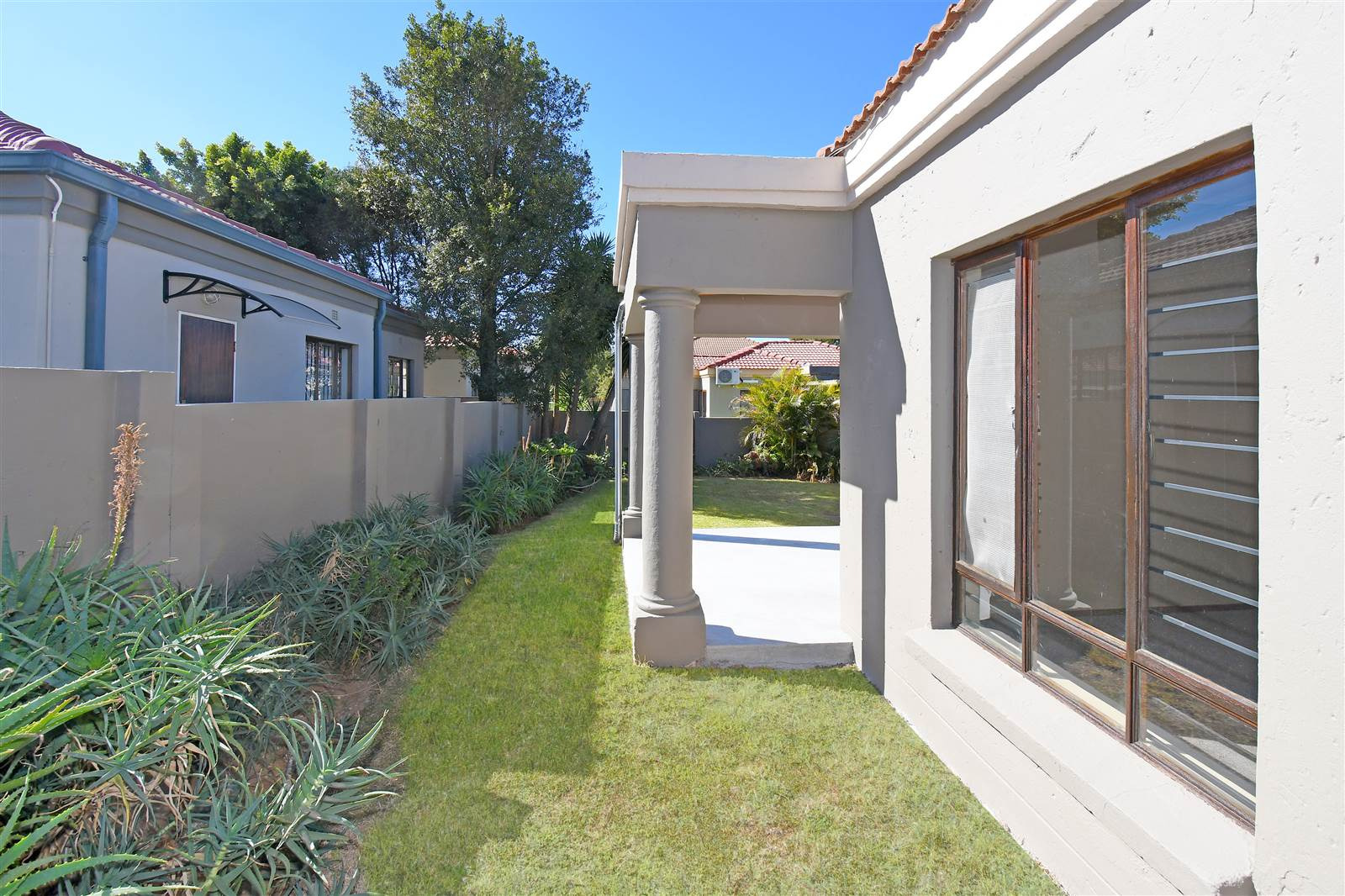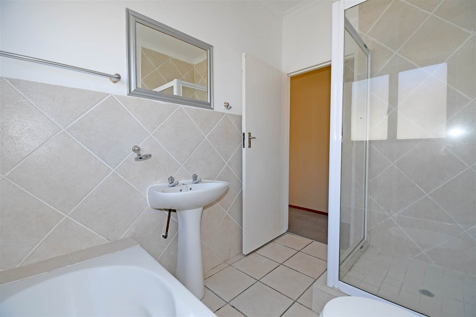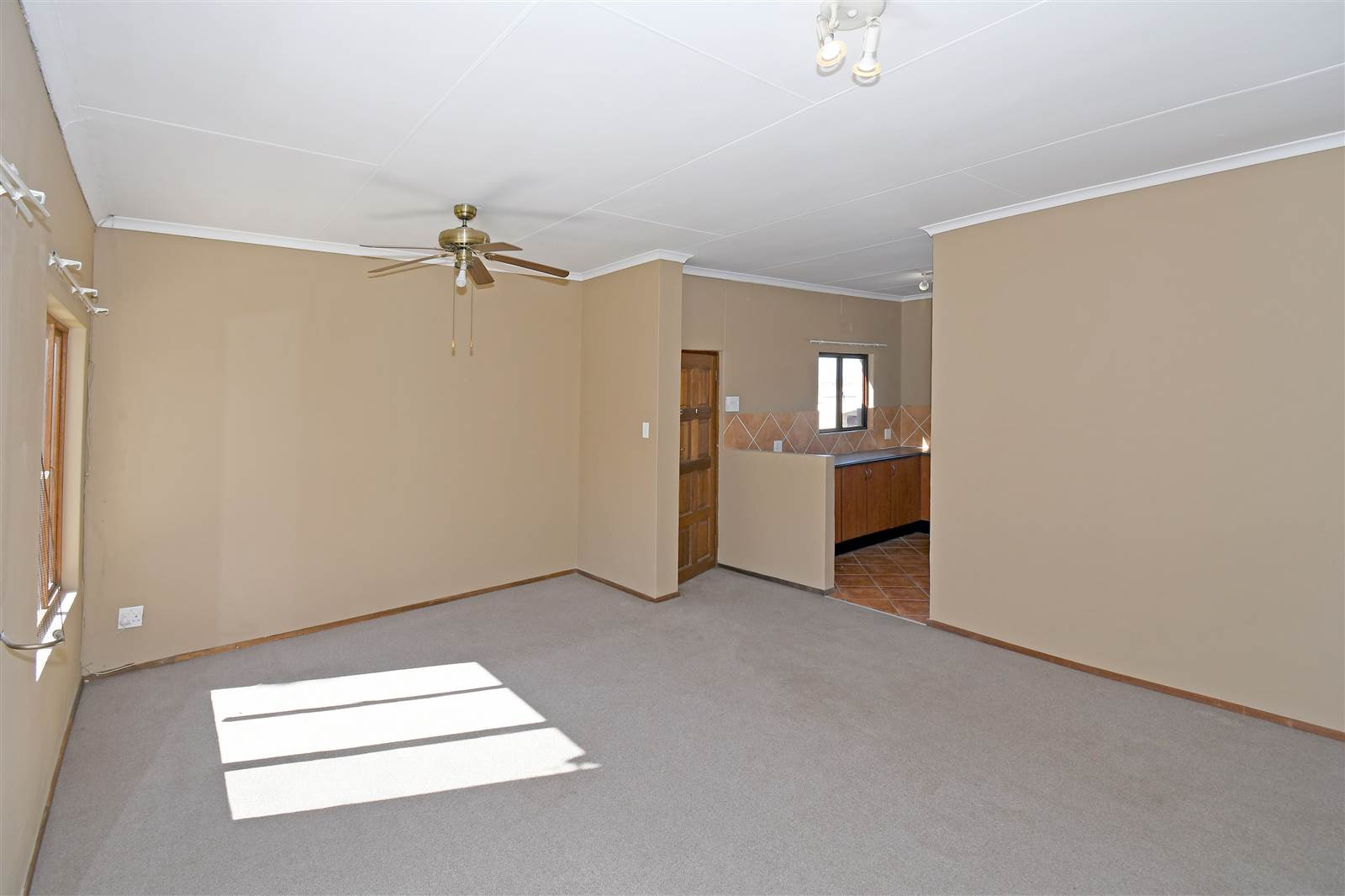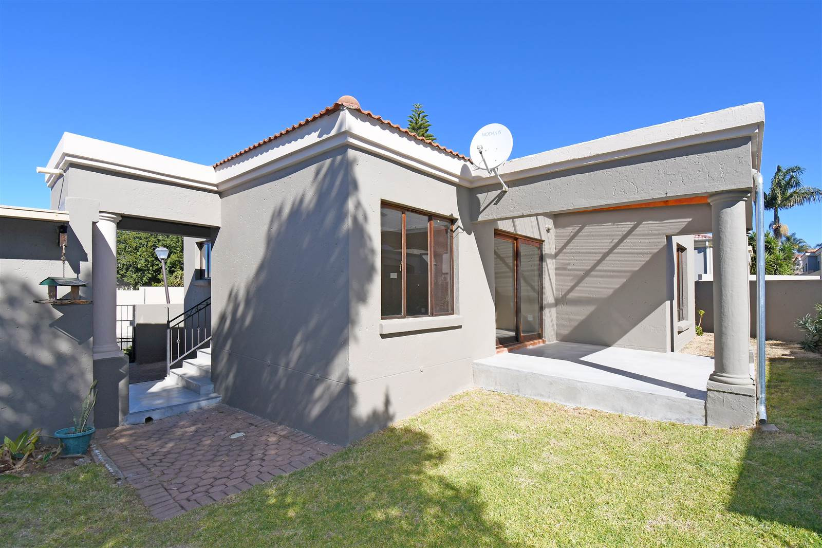 Paved front entrance, open-plan living area, large covered patio and established garden. Kitchen has ample cupboard space, electric hob / oven plus space for 1 water appliance and standard fridge. Passage to 2 bedrooms. Main with full en-suite bathroom. Family bathroom with bath. Carpeted throughout.