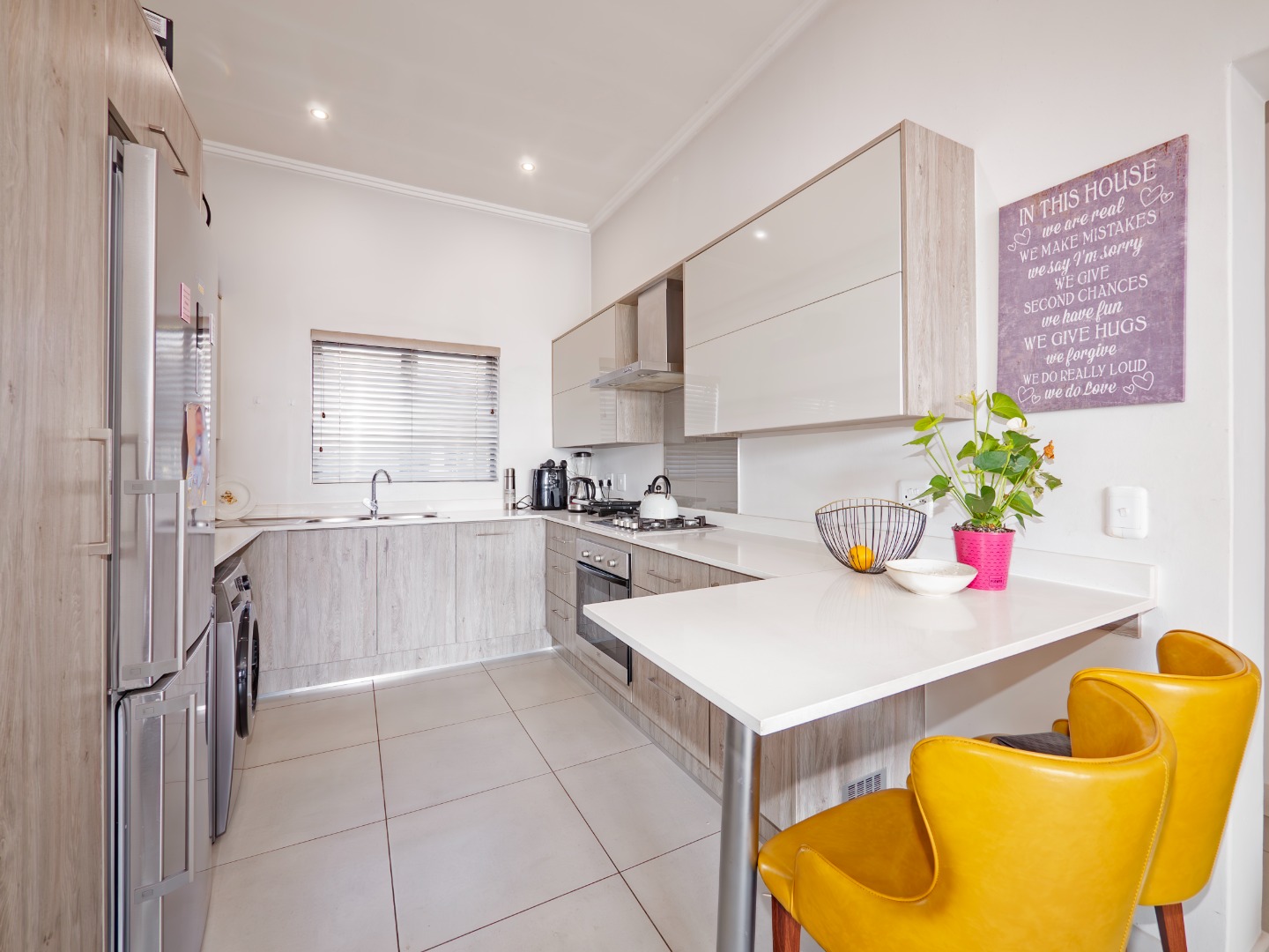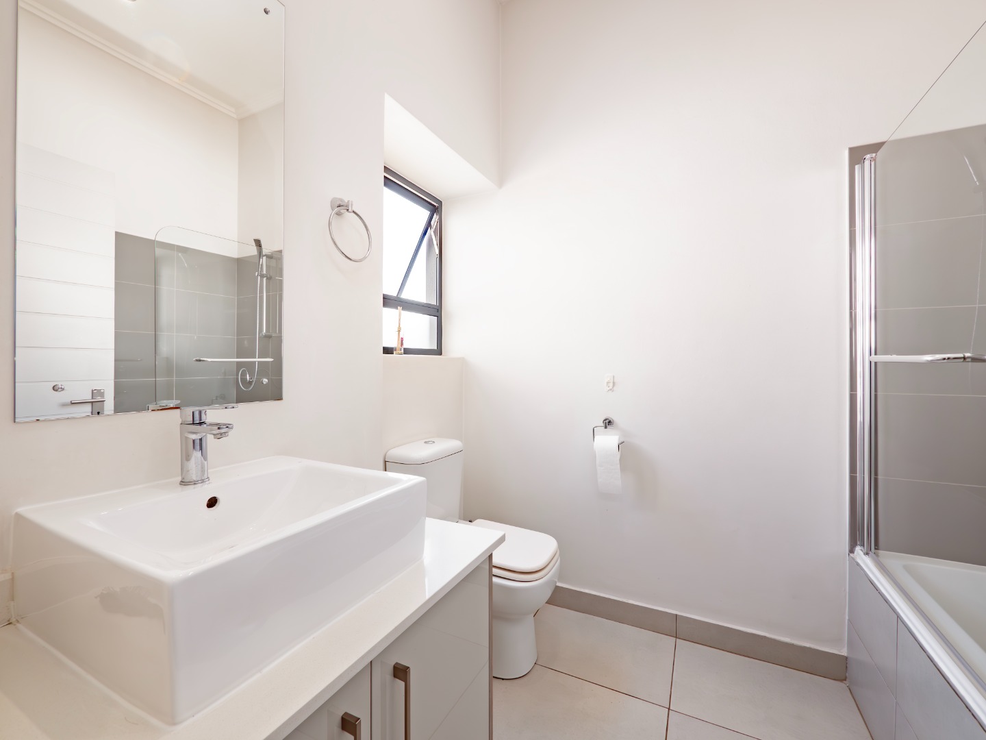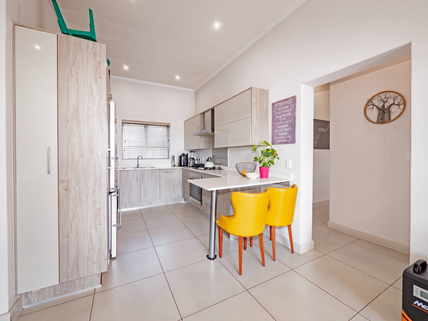 Discover this modern 3-bedroom, 2-bathroom rental property spanning 103 sqm, situated within a secure complex in Broadacres, Sandton. The residence features an inviting open-plan living area, seamlessly connecting to a contemporary kitchen. This space boasts high-gloss light cabinetry, sleek white countertops, stainless steel appliances, and an integrated breakfast bar. Tiled flooring and recessed lighting extend throughout, with sliding doors leading to a private balcony.