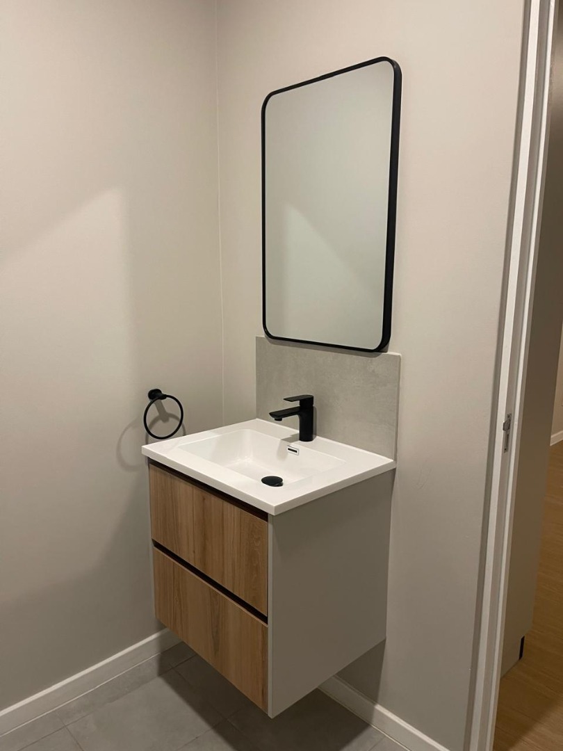 The apartment features a contemporary design with modern colour palette, complemented by stylish vinyl flooring throughout.