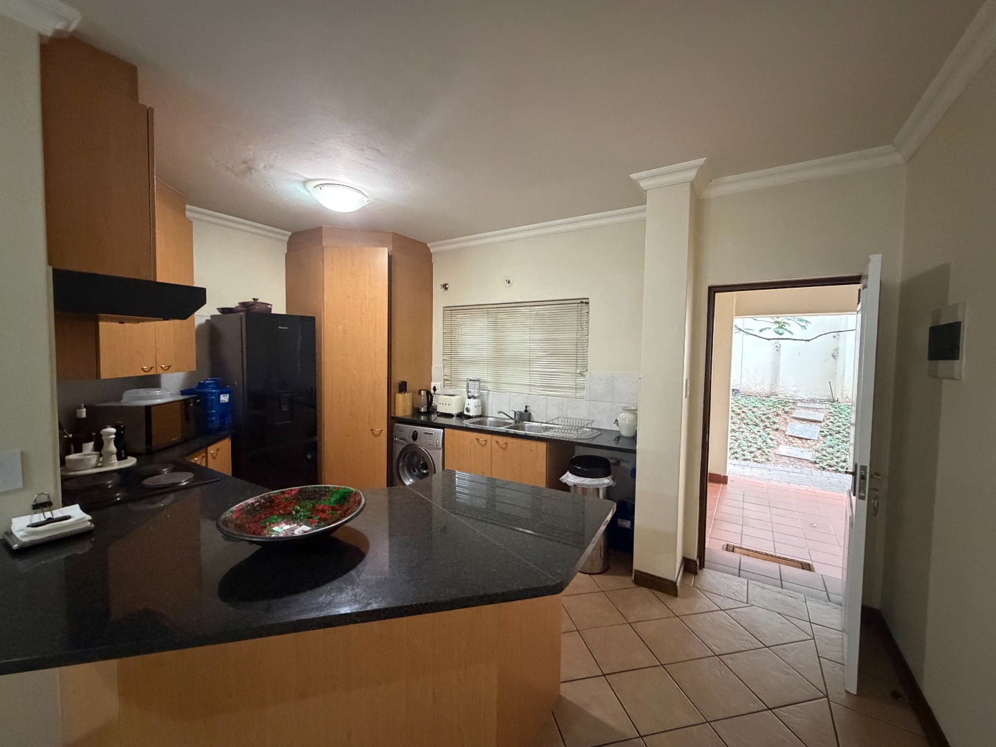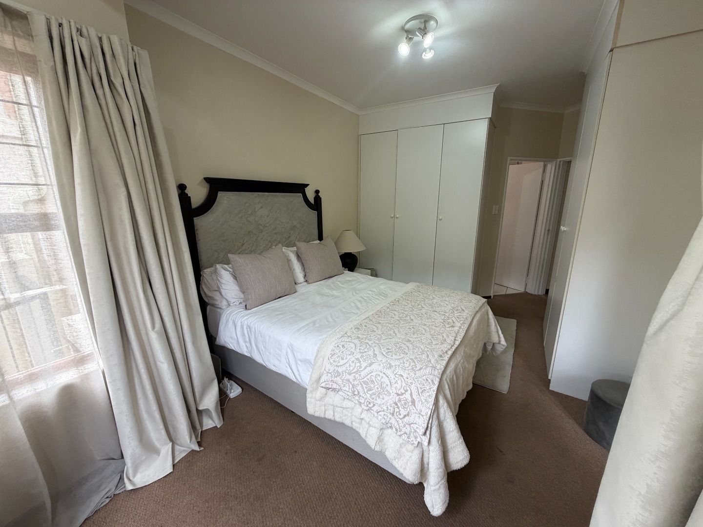 Discover comfortable living in this inviting 2-bedroom, 1.5-bathroom apartment located within a secure complex in Bryanston, Sandton. This unfurnished residence offers a practical layout designed for modern convenience. The heart of the home features an open-plan living area, seamlessly connecting to a well-appointed kitchen. The kitchen boasts light wood-tone cabinetry, dark granite-look countertops, a built-in stove/oven, extractor fan, and a double sink, complemented by a functional breakfast bar for casual dining. Ample natural light floods the space, enhancing the welcoming atmosphere. The apartment includes two bedrooms, with the main bedroom benefiting from an en-suite bathroom, alongside a separate guest toilet for added convenience. One of the rooms features a spacious bay window, providing abundant natural light and views of the surroundings. Enjoy private outdoor space on the balcony, offering pleasant views of trees and the distant landscape, perfect for relaxation. The complex provides residents with access to a communal swimming pool, ideal for leisure and recreation. Security is a priority, with the complex offering 24-hour security, electric fencing, and a security gate, ensuring peace of mind. The property also includes two dedicated parking bays. Situated in the metropolitan hub of Bryanston, this apartment offers an excellent lifestyle fit for professionals or small families seeking a well-connected and secure environment. Key Features: * 2 Bedrooms, 1.5 Bathrooms (1 en-suite, 1 guest toilet) * Open-plan living and kitchen area * Modern kitchen with granite-look countertops and breakfast bar * Private balcony with pleasant views * Communal swimming pool * Two dedicated parking bays * 24-hour security with electric fencing and security gate * Located in a sought-after Bryanston complex