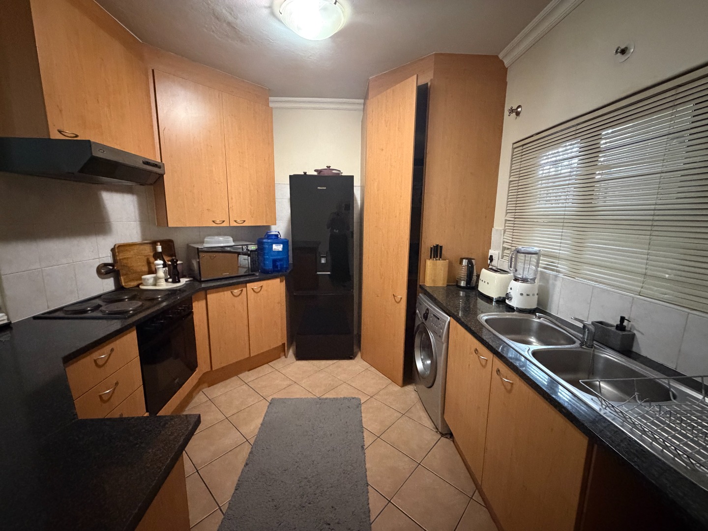 Discover comfortable living in this inviting 2-bedroom, 1.5-bathroom apartment located within a secure complex in Bryanston, Sandton. This unfurnished residence offers a practical layout designed for modern convenience. The heart of the home features an open-plan living area, seamlessly connecting to a well-appointed kitchen. The kitchen boasts light wood-tone cabinetry, dark granite-look countertops, a built-in stove/oven, extractor fan, and a double sink, complemented by a functional breakfast bar for casual dining. Ample natural light floods the space, enhancing the welcoming atmosphere. The apartment includes two bedrooms, with the main bedroom benefiting from an en-suite bathroom, alongside a separate guest toilet for added convenience. One of the rooms features a spacious bay window, providing abundant natural light and views of the surroundings. Enjoy private outdoor space on the balcony, offering pleasant views of trees and the distant landscape, perfect for relaxation. The complex provides residents with access to a communal swimming pool, ideal for leisure and recreation. Security is a priority, with the complex offering 24-hour security, electric fencing, and a security gate, ensuring peace of mind. The property also includes two dedicated parking bays. Situated in the metropolitan hub of Bryanston, this apartment offers an excellent lifestyle fit for professionals or small families seeking a well-connected and secure environment. Key Features: * 2 Bedrooms, 1.5 Bathrooms (1 en-suite, 1 guest toilet) * Open-plan living and kitchen area * Modern kitchen with granite-look countertops and breakfast bar * Private balcony with pleasant views * Communal swimming pool * Two dedicated parking bays * 24-hour security with electric fencing and security gate * Located in a sought-after Bryanston complex