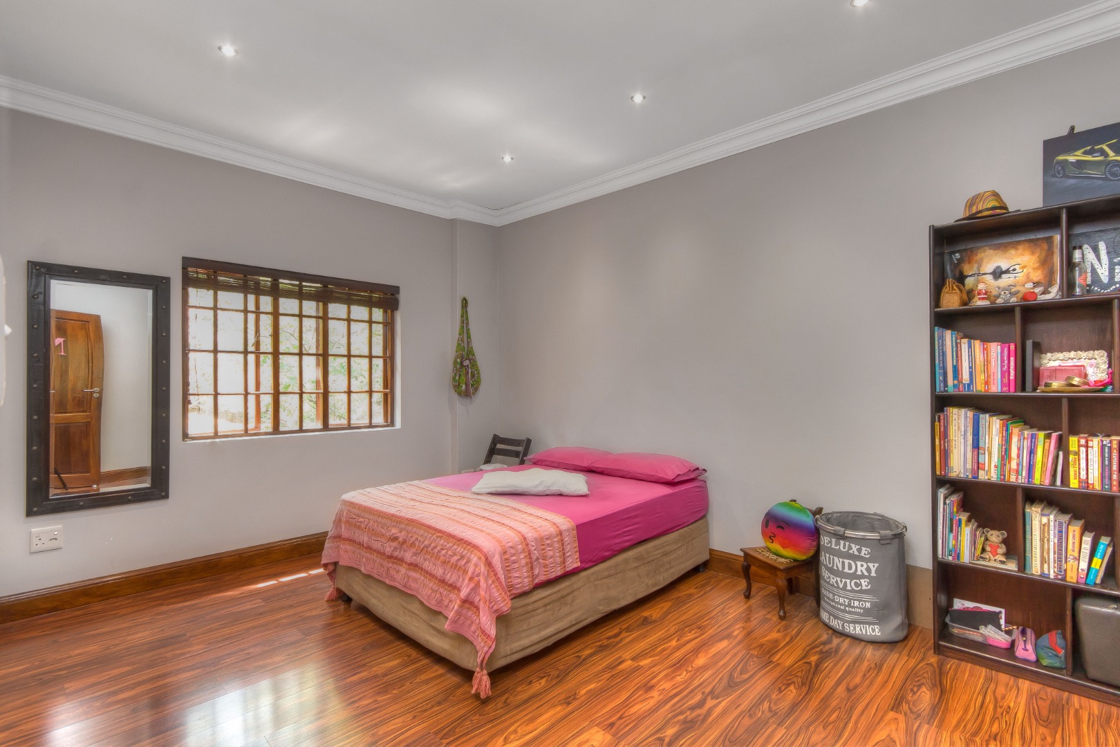 Upstairs laden with natural light from a skylight to 4 bedrooms with genuine wood flooring. 2 bedrooms are en suite and an additional full bathroom serves the other 2 bedrooms. The main bedroom is extensive in size, has a dressing room area and the most beautiful modern full main-en-suite bathroom.