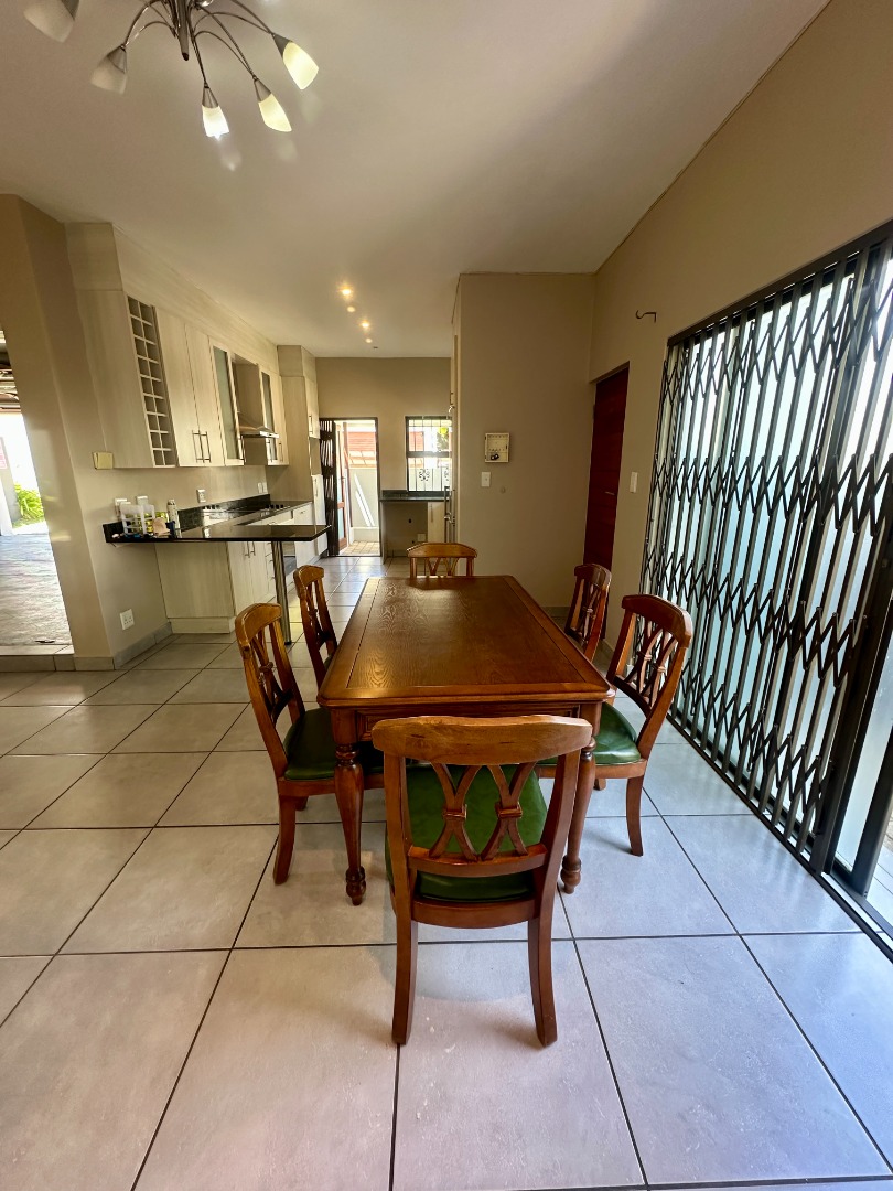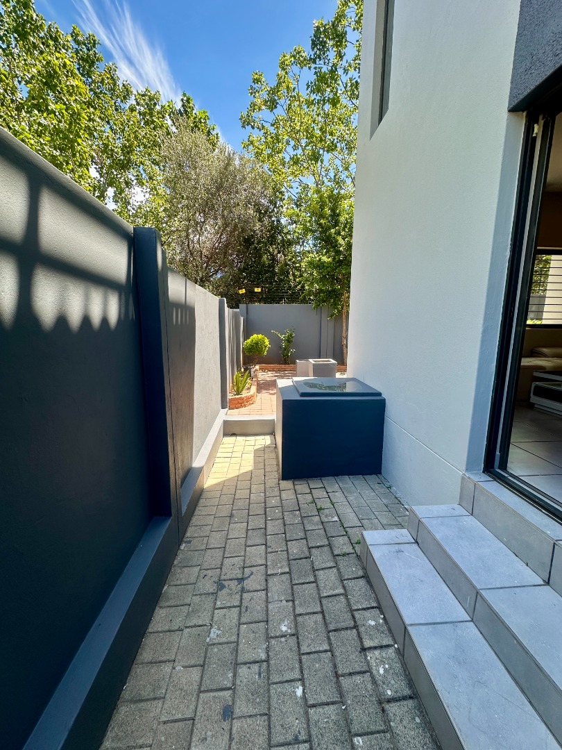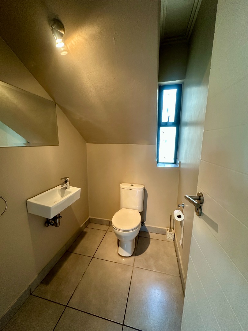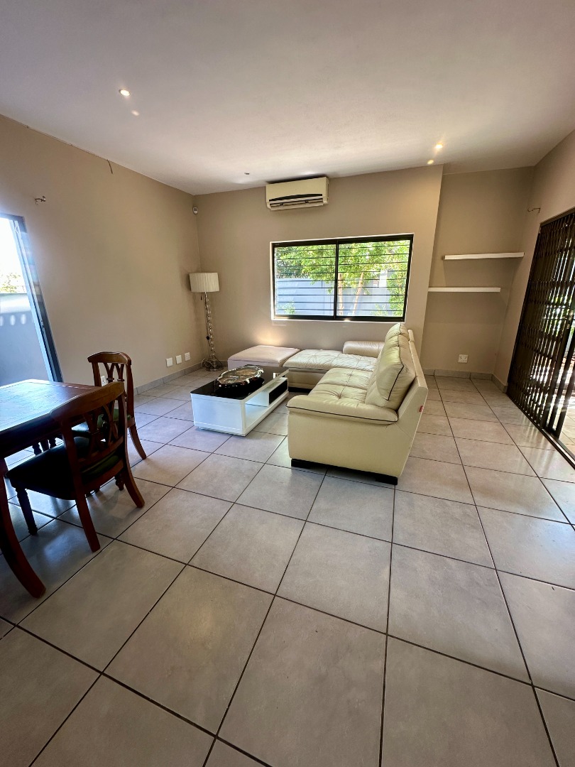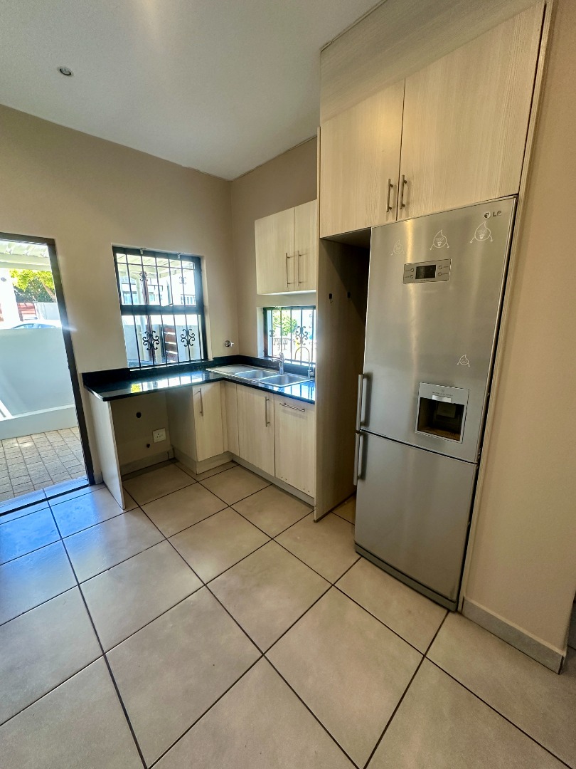 Discover this modern two-story rental home located in a secure complex in Sandton. Boasting a contemporary architectural design with clean lines and a light facade, this property offers a welcoming aesthetic. The ground floor features a spacious open-plan living and dining area, illuminated by ample natural light from large windows and sliding doors. Tiled flooring throughout ensures easy maintenance, complemented by recessed lighting and air conditioning for comfort.