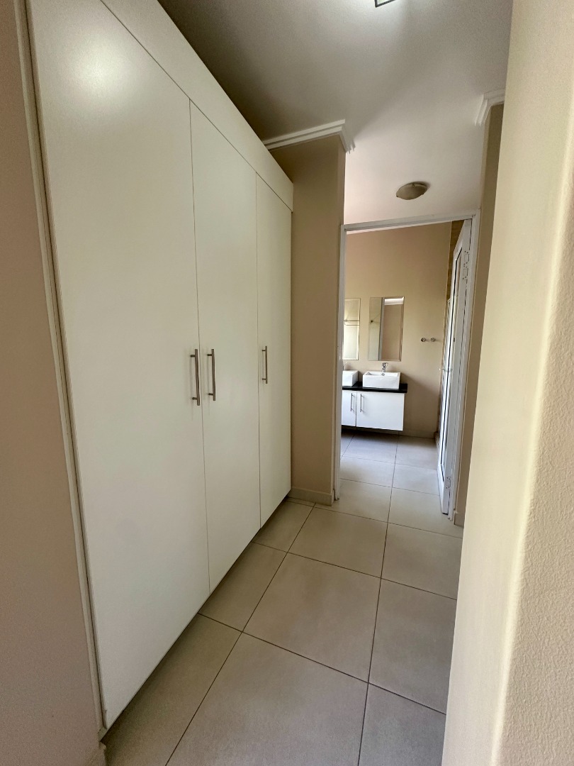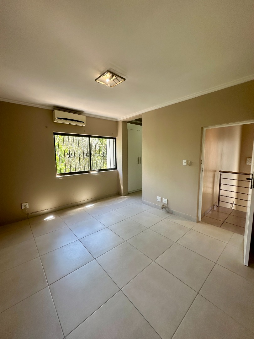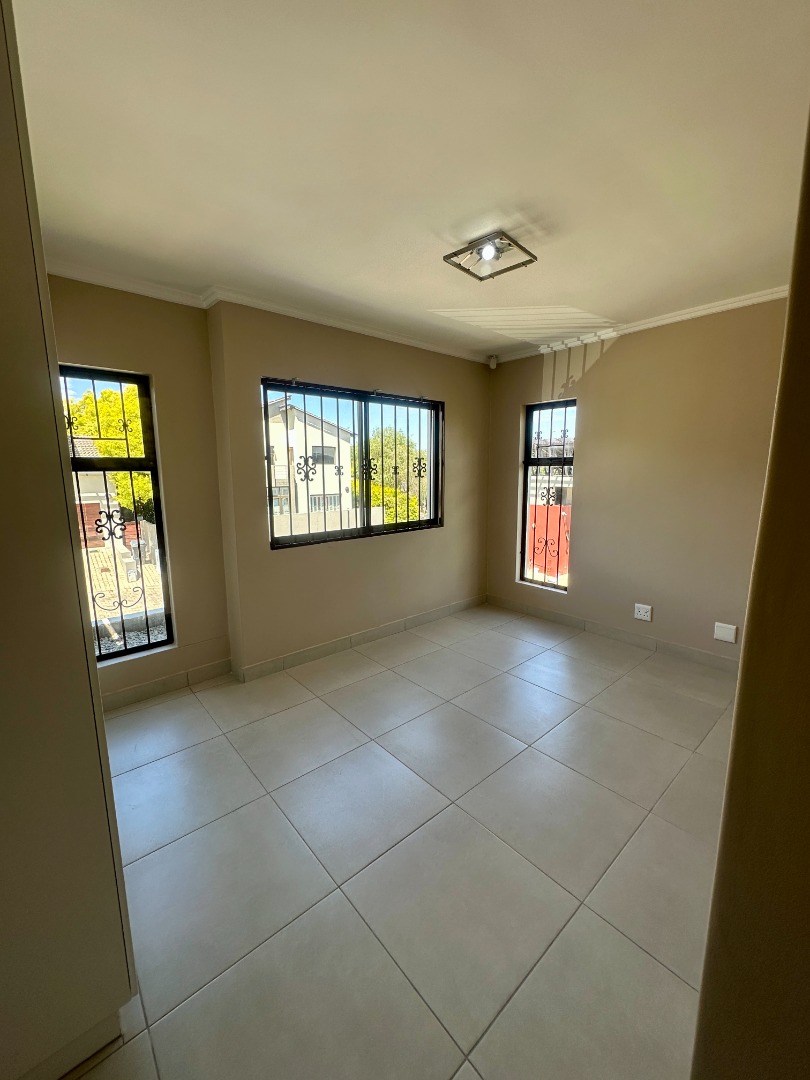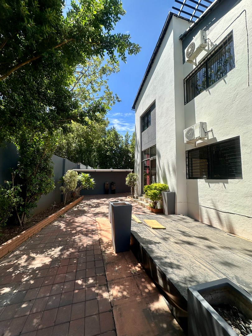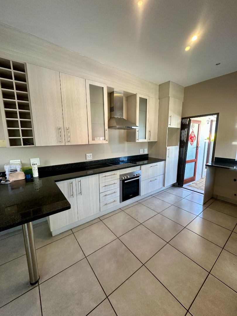 Discover this modern two-story rental home located in a secure complex in Sandton. Boasting a contemporary architectural design with clean lines and a light facade, this property offers a welcoming aesthetic. The ground floor features a spacious open-plan living and dining area, illuminated by ample natural light from large windows and sliding doors. Tiled flooring throughout ensures easy maintenance, complemented by recessed lighting and air conditioning for comfort.