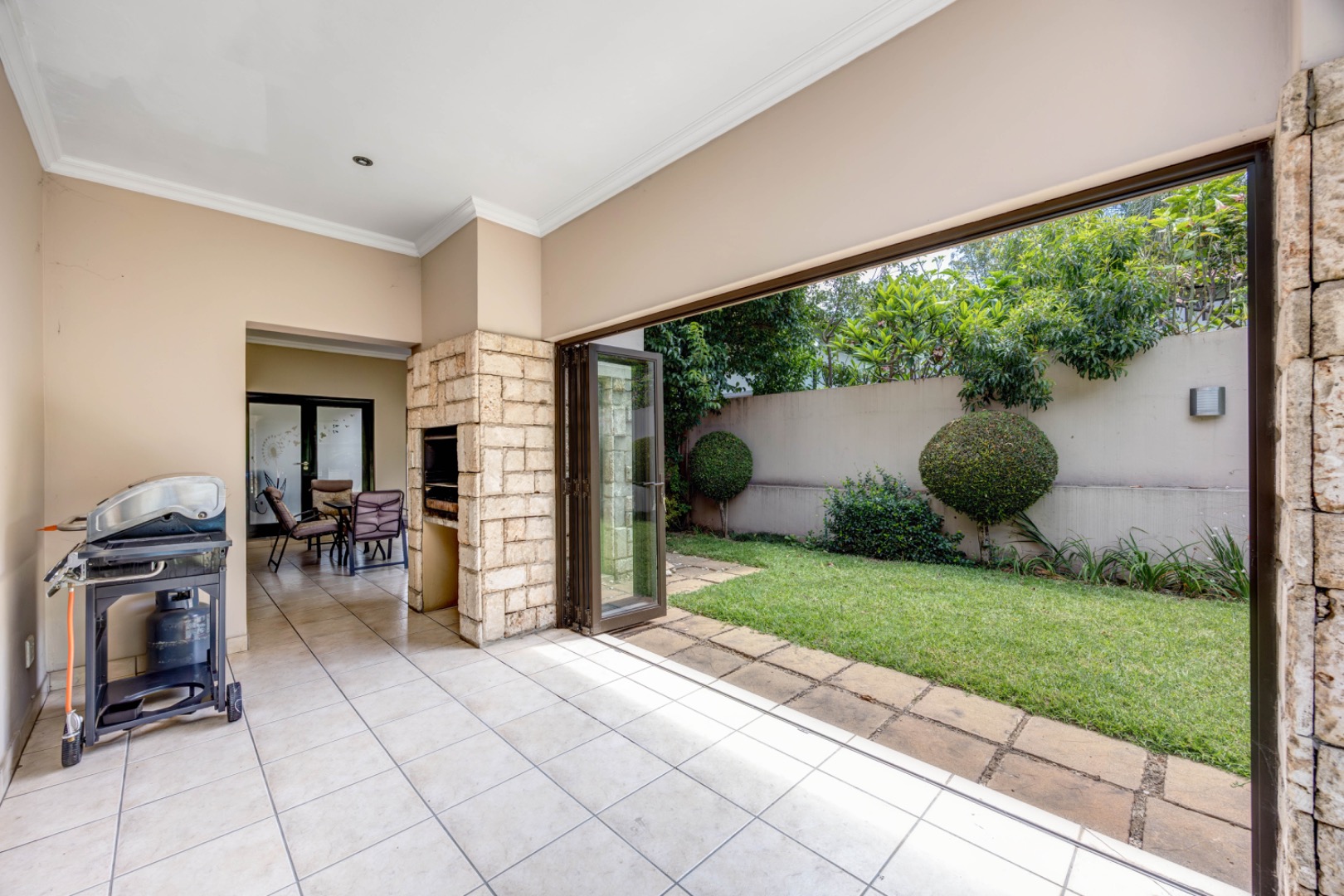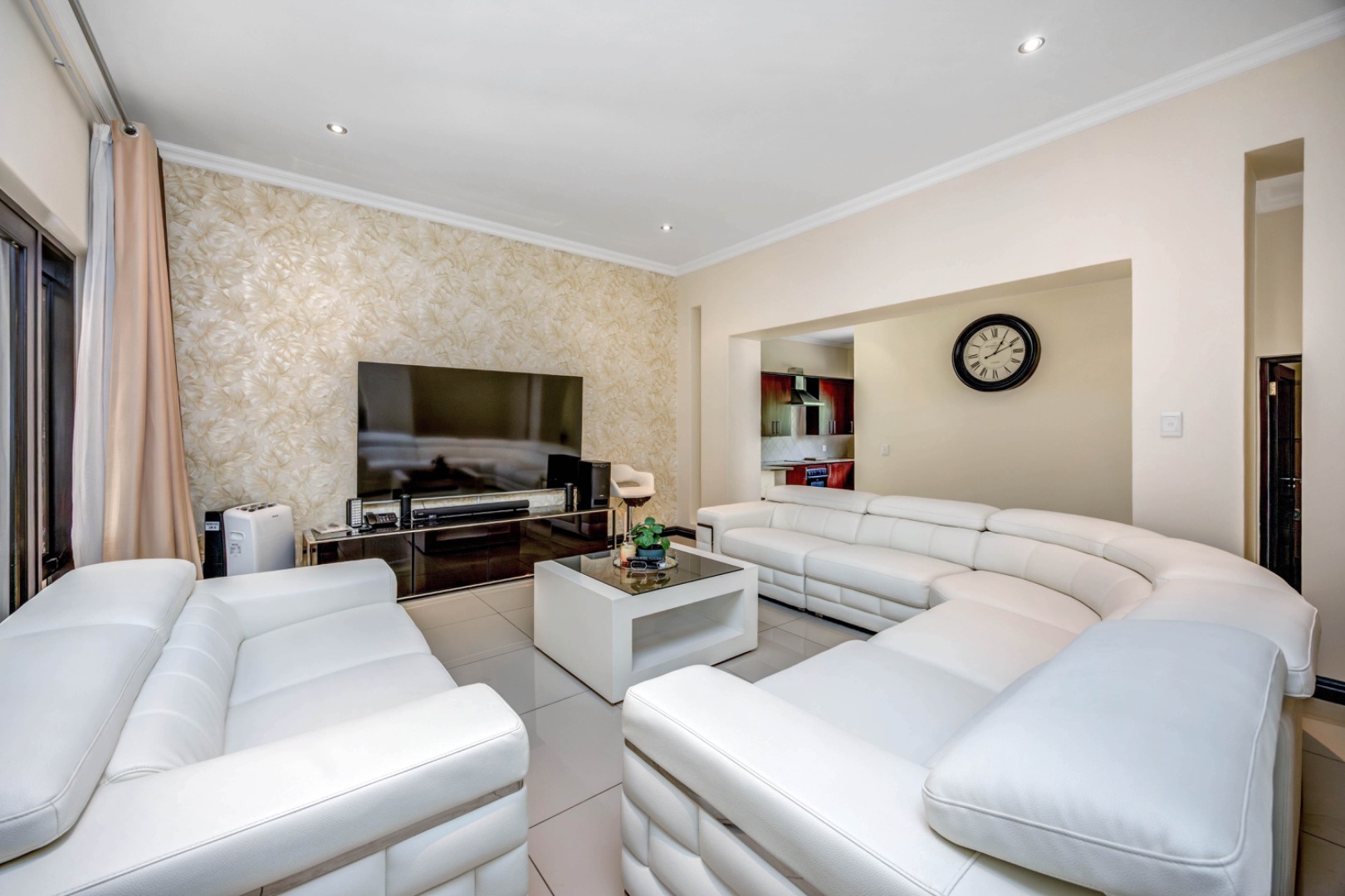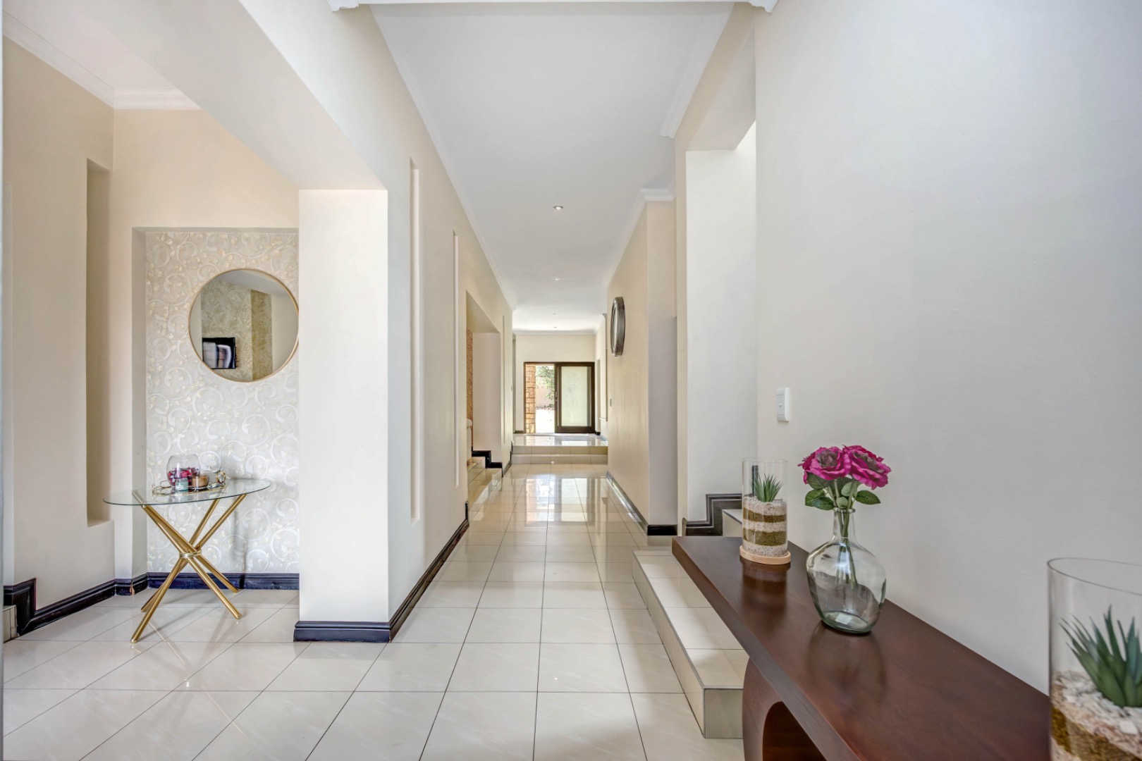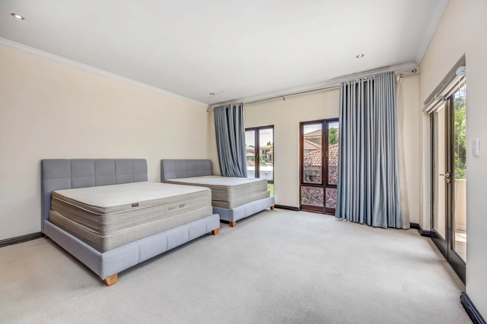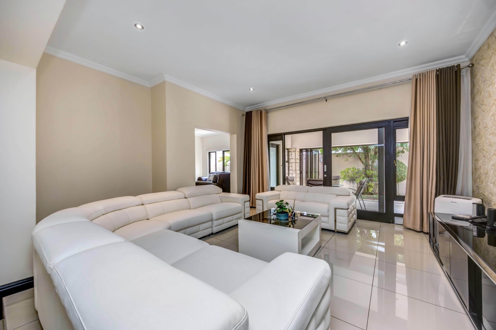 This modern and spacious home, available for rent in the sought-after Fernbrook Estate, offers an exceptional lifestyle for families in Fourways. Boasting four well-appointed bedrooms and three and a half bathrooms, including two en-suite facilities and a convenient guest toilet, this residence provides ample space and comfort. The interior features a contemporary design with bright, tiled flooring, light-coloured walls, and recessed lighting throughout, creating an inviting atmosphere. Enjoy multiple living areas, including two lounges, a dedicated dining room, and a family TV room, all designed for seamless open-plan living with sliding doors connecting to the outdoors. A private study and a practical pantry add to the home's functionality.