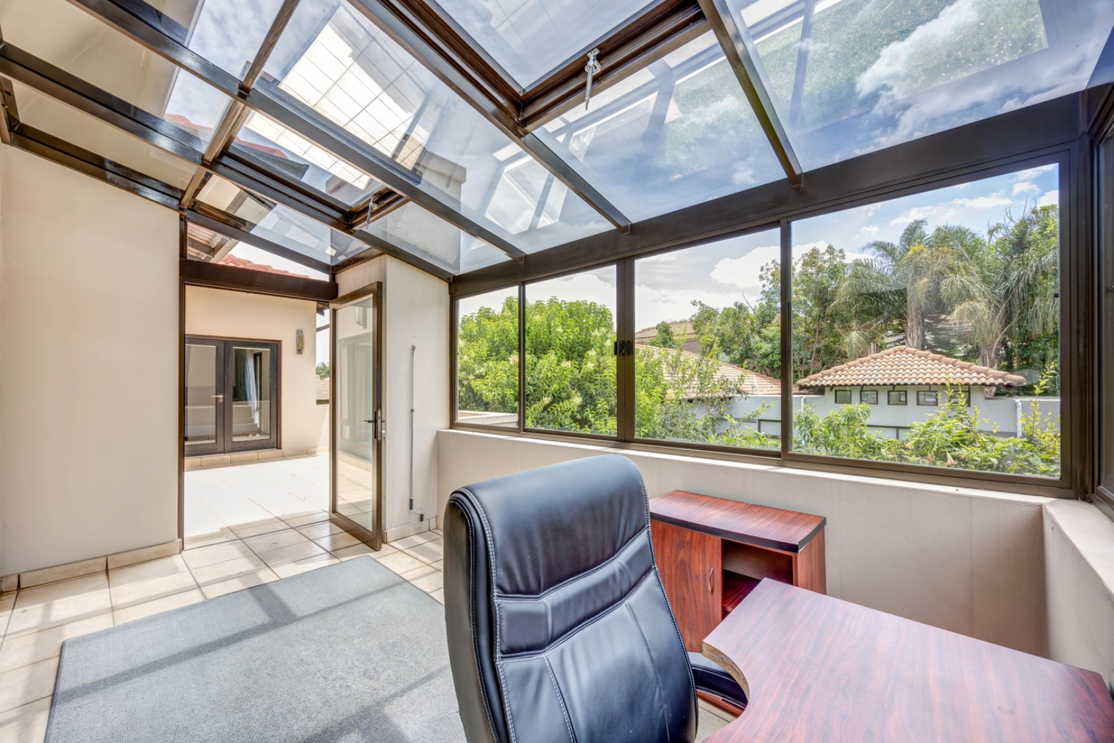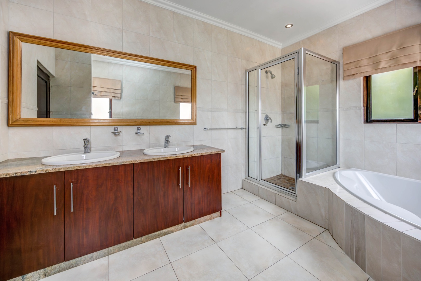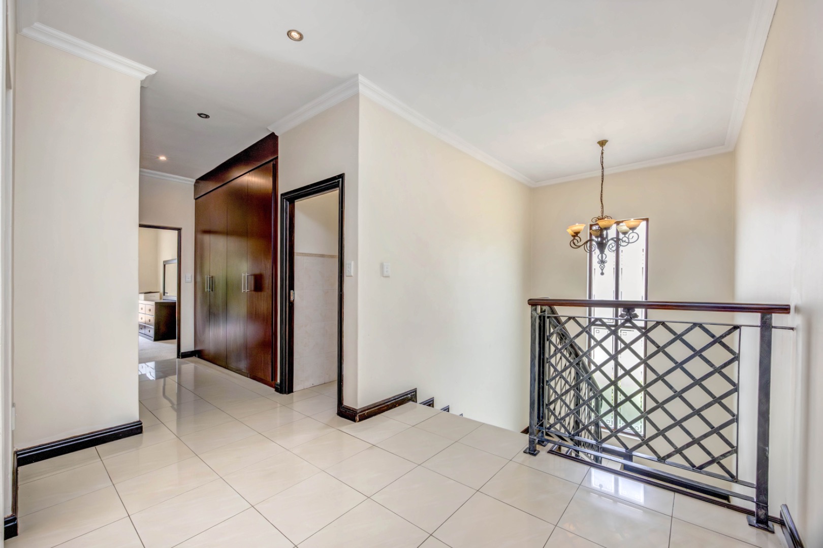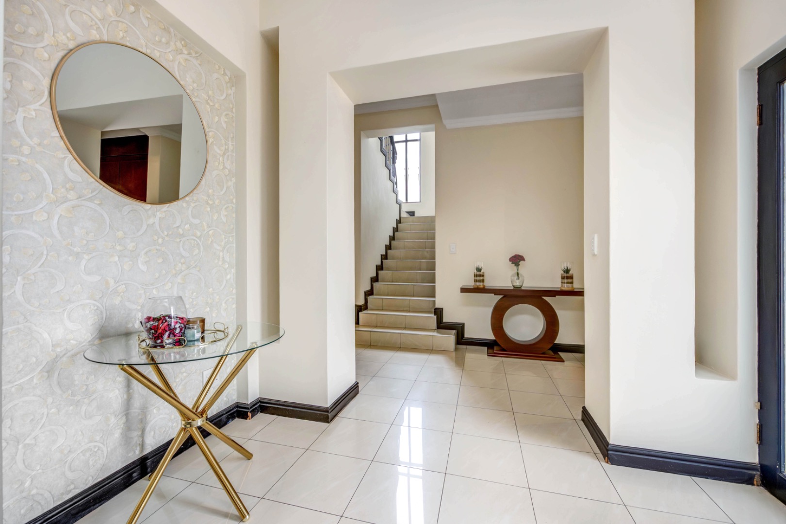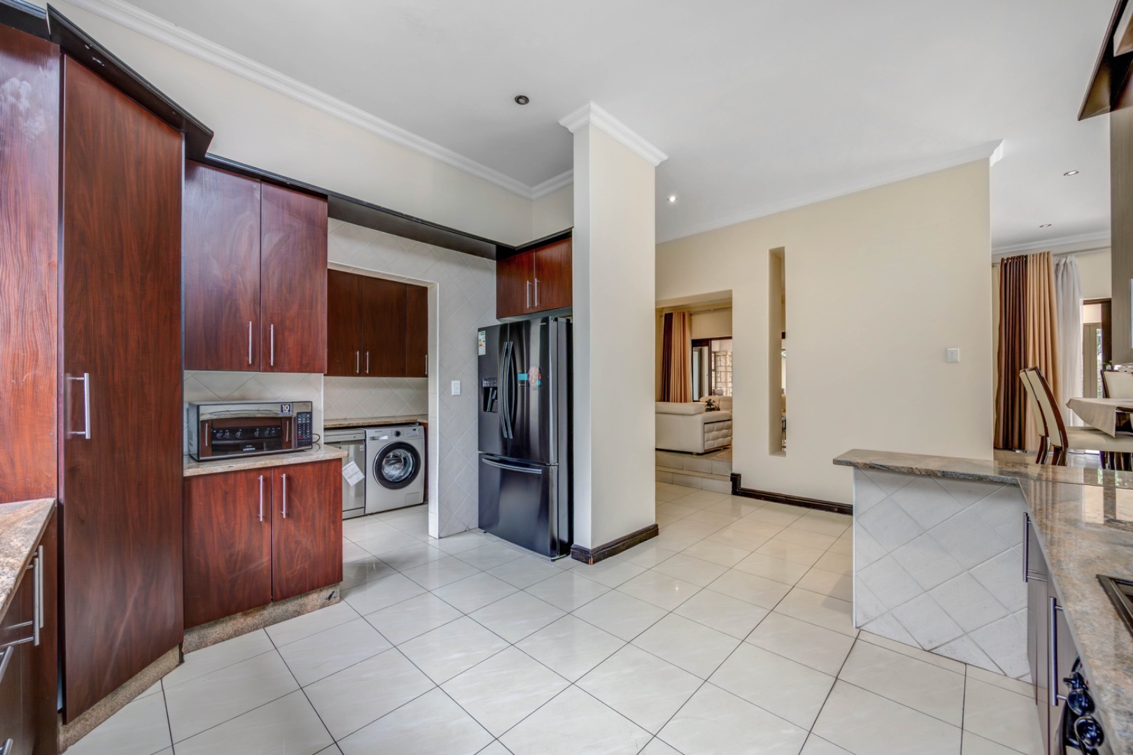 This modern and spacious home, available for rent in the sought-after Fernbrook Estate, offers an exceptional lifestyle for families in Fourways. Boasting four well-appointed bedrooms and three and a half bathrooms, including two en-suite facilities and a convenient guest toilet, this residence provides ample space and comfort. The interior features a contemporary design with bright, tiled flooring, light-coloured walls, and recessed lighting throughout, creating an inviting atmosphere. Enjoy multiple living areas, including two lounges, a dedicated dining room, and a family TV room, all designed for seamless open-plan living with sliding doors connecting to the outdoors. A private study and a practical pantry add to the home's functionality.