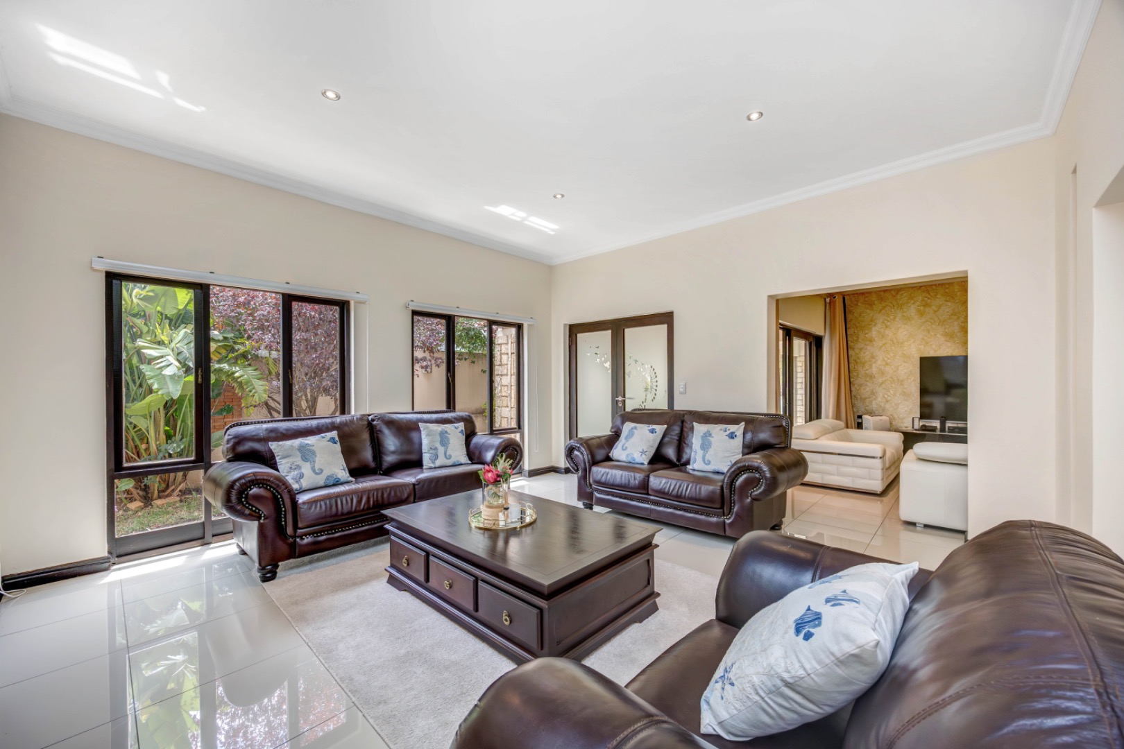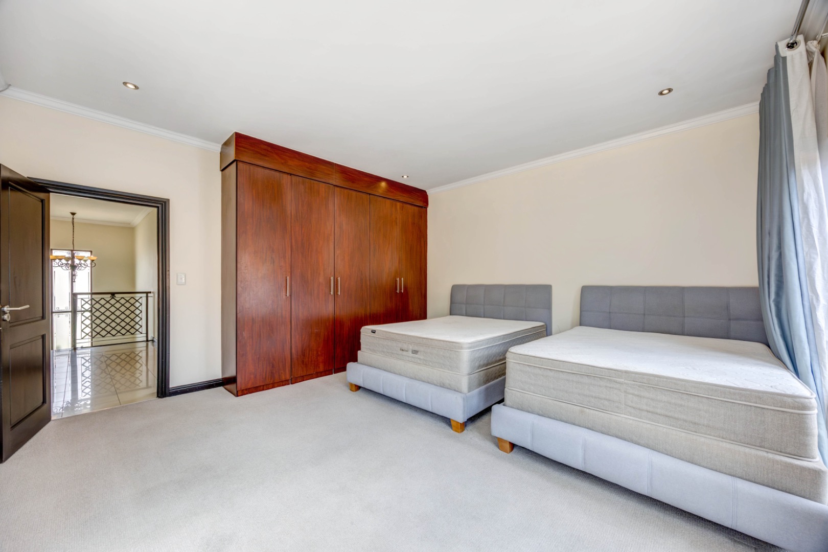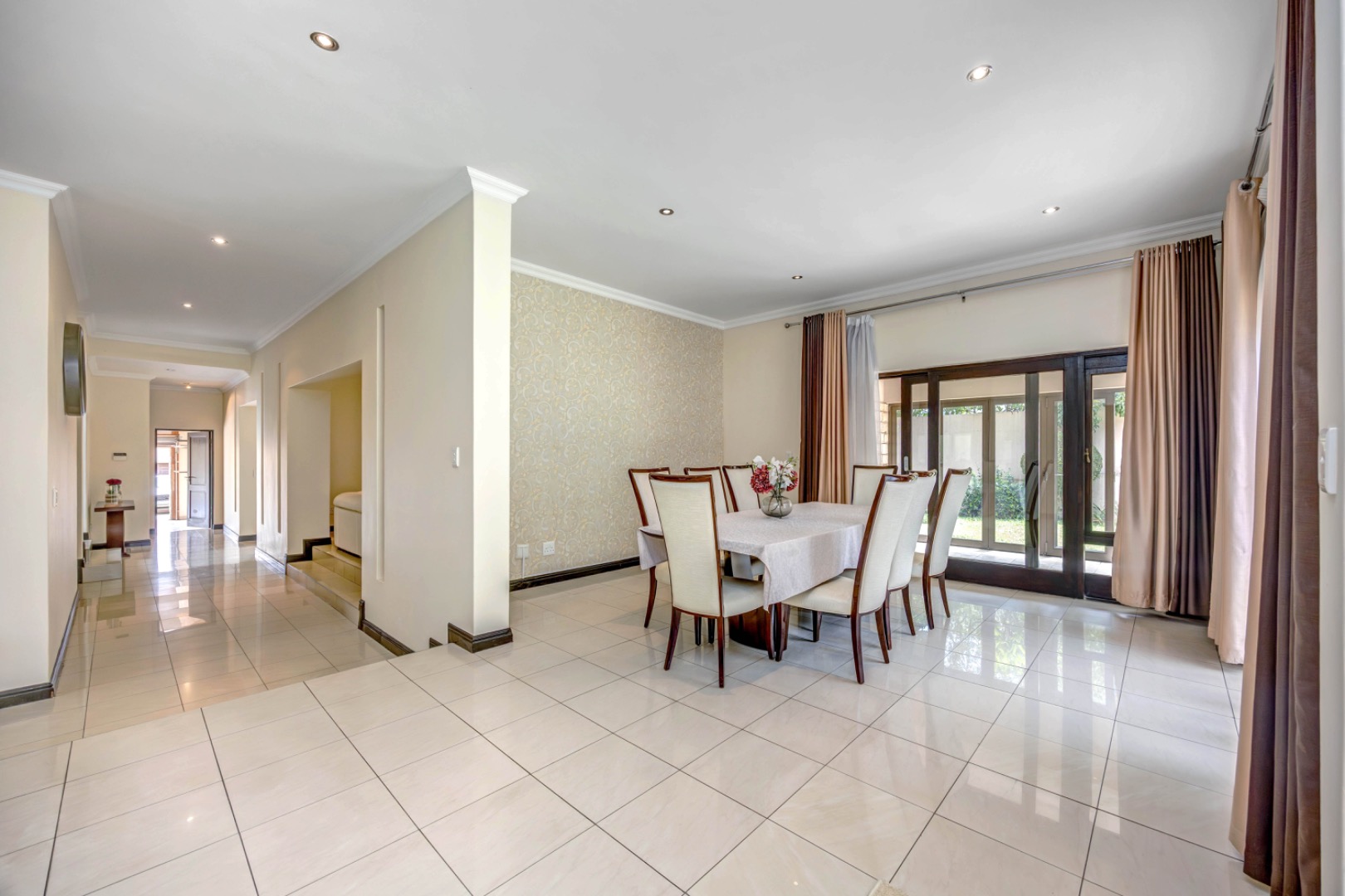 This modern and spacious home, available for rent in the sought-after Fernbrook Estate, offers an exceptional lifestyle for families in Fourways. Boasting four well-appointed bedrooms and three and a half bathrooms, including two en-suite facilities and a convenient guest toilet, this residence provides ample space and comfort. The interior features a contemporary design with bright, tiled flooring, light-coloured walls, and recessed lighting throughout, creating an inviting atmosphere. Enjoy multiple living areas, including two lounges, a dedicated dining room, and a family TV room, all designed for seamless open-plan living with sliding doors connecting to the outdoors. A private study and a practical pantry add to the home's functionality.
