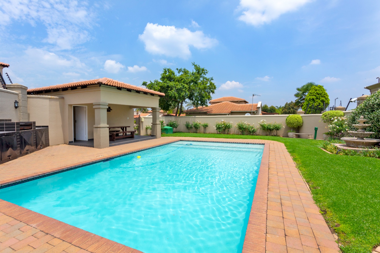Step outside to a private, covered and undercovered patio, ideal for outdoor entertaining, overlooking a green garden area. The complex itself offers a communal pool and clubhouse with tennis court and kids play area, fostering a vibrant community lifestyle. With two dedicated parking bays and a pet-friendly policy, this home caters to a variety of needs.