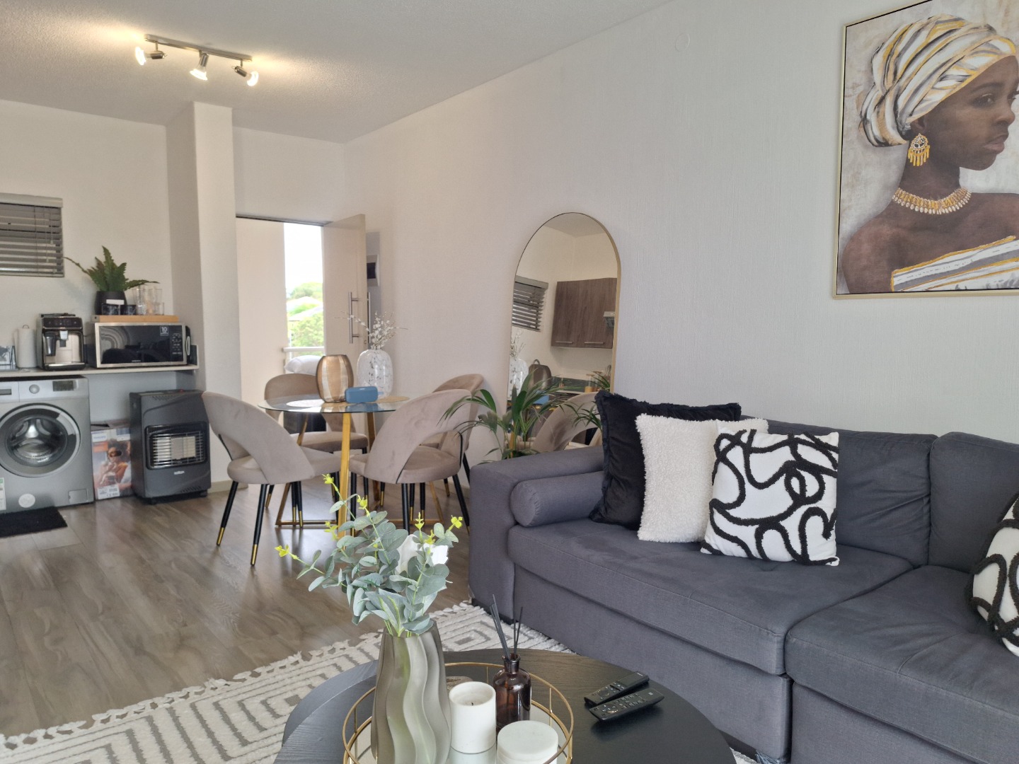 Discover an exquisite rental opportunity within a prestigious complex in Fourways. This sophisticated 2-bedroom, 1-bathroom apartment, offers a refined living experience. With laminated floor living area, allowing a lounge and dining area. Designed for comfort and elegance, the residence features a dedicated lounge and dining room, perfect for both intimate evenings and entertaining. Two secure parking bays ensure convenience and peace of mind, complementing the modern facade and well-maintained surroundings.