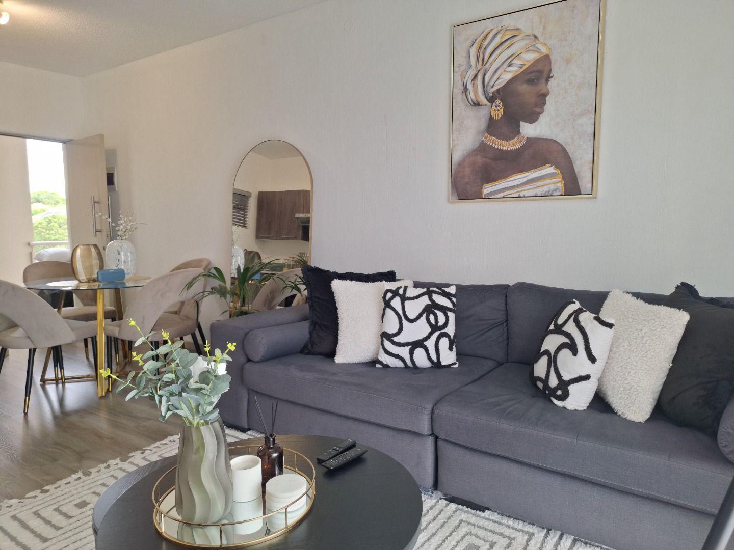 Discover an exquisite rental opportunity within a prestigious complex in Fourways. This sophisticated 2-bedroom, 1-bathroom apartment, offers a refined living experience. With laminated floor living area, allowing a lounge and dining area. Designed for comfort and elegance, the residence features a dedicated lounge and dining room, perfect for both intimate evenings and entertaining. Two secure parking bays ensure convenience and peace of mind, complementing the modern facade and well-maintained surroundings.