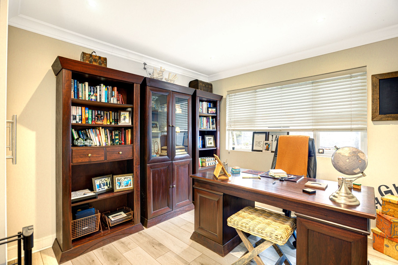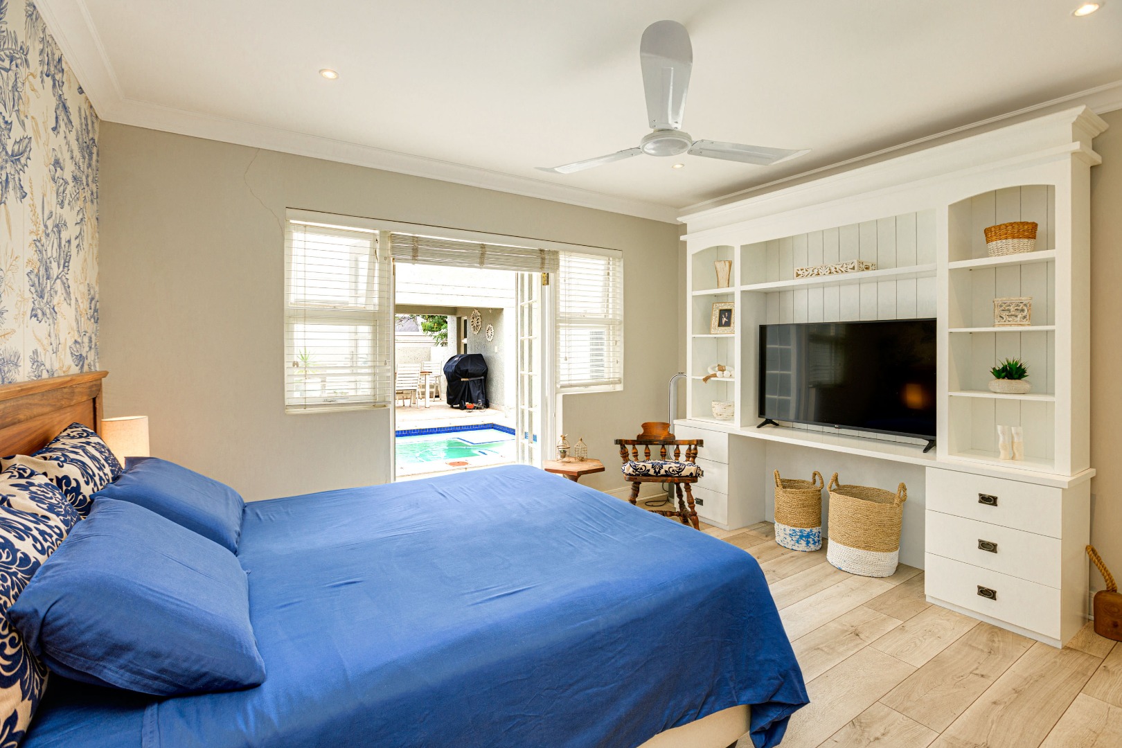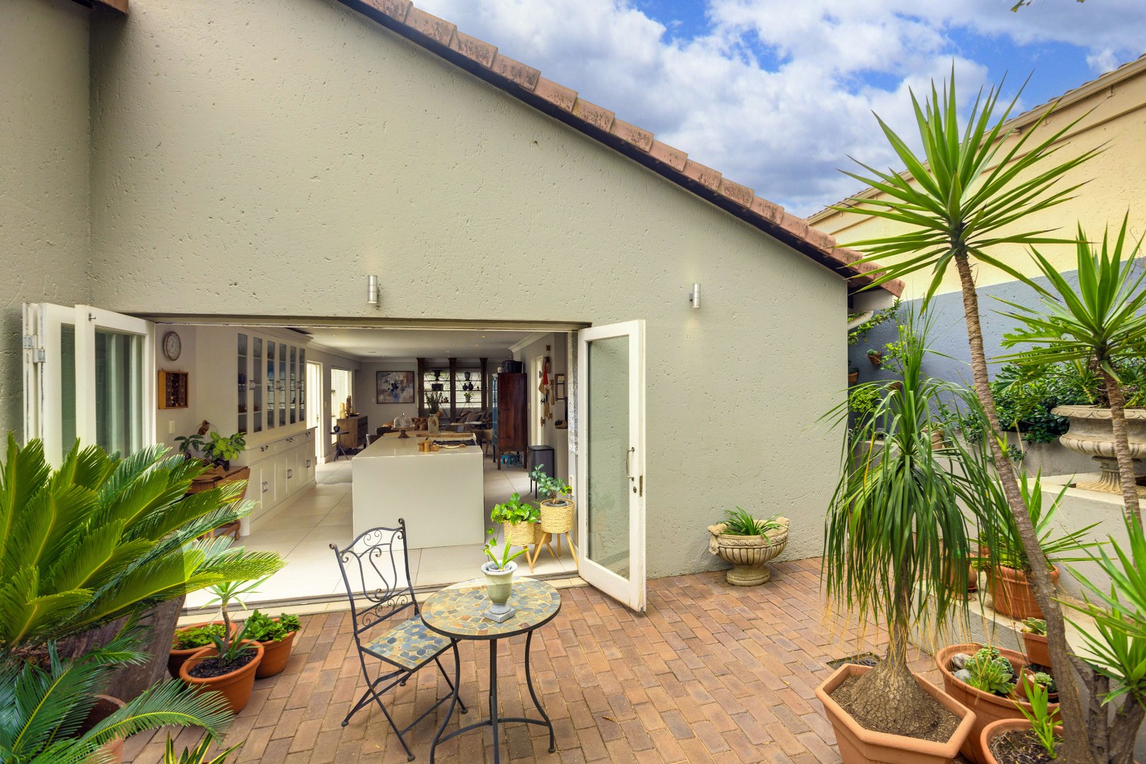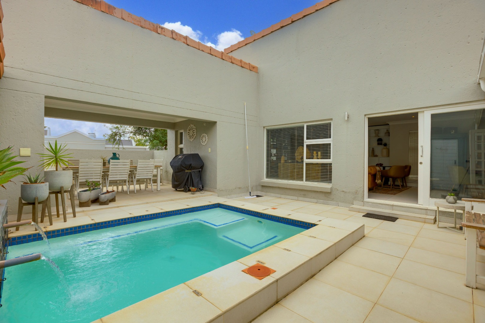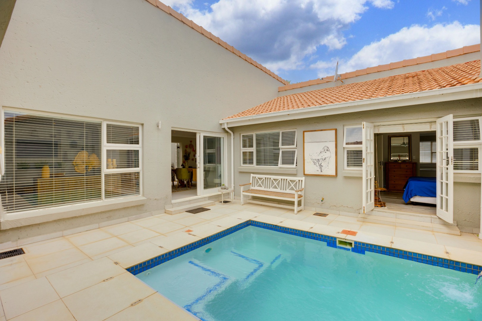 The three spacious bedrooms, all featuring laminated flooring, are warm and generous with built in cupboards and tasteful blinds. Two of the bedrooms share a bathroom with walk in shower. The master suite is a true sanctuary, with direct access to the pool and entertainment space, complemented by a soothing water feature, walk through wardrobes and an en-suite with a bath.