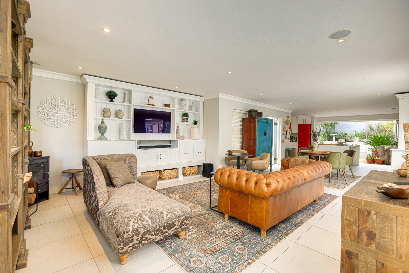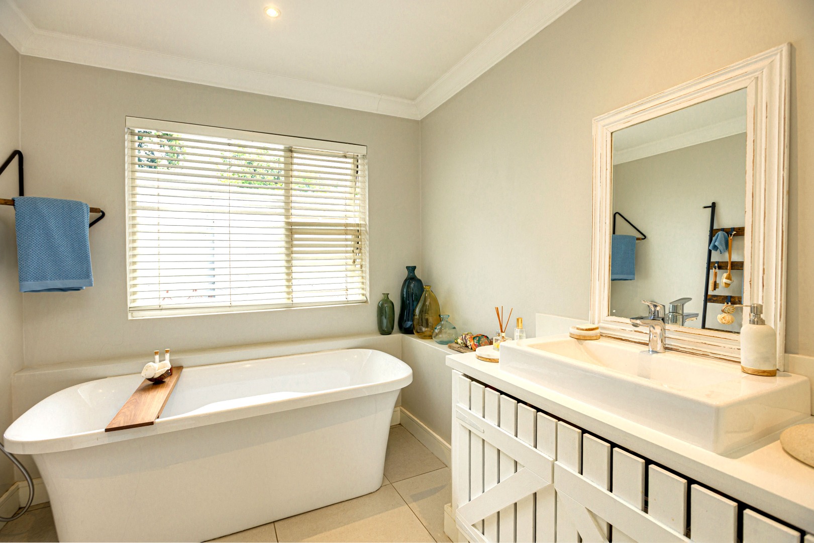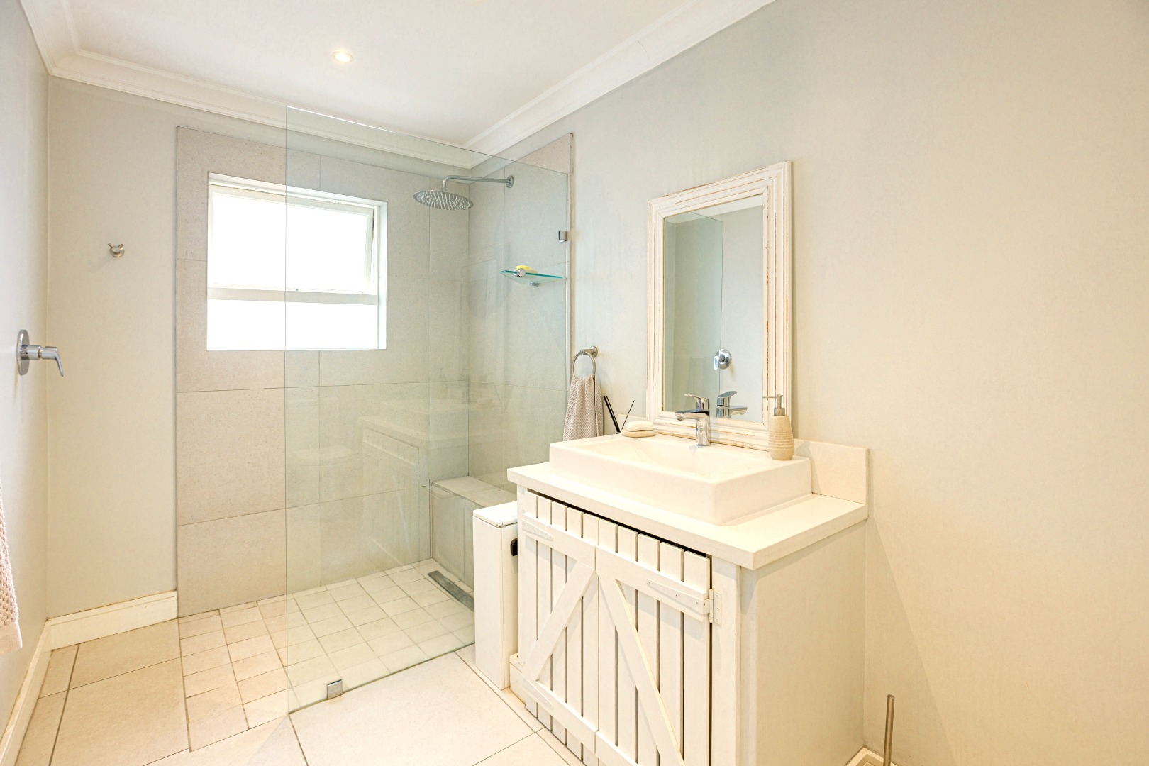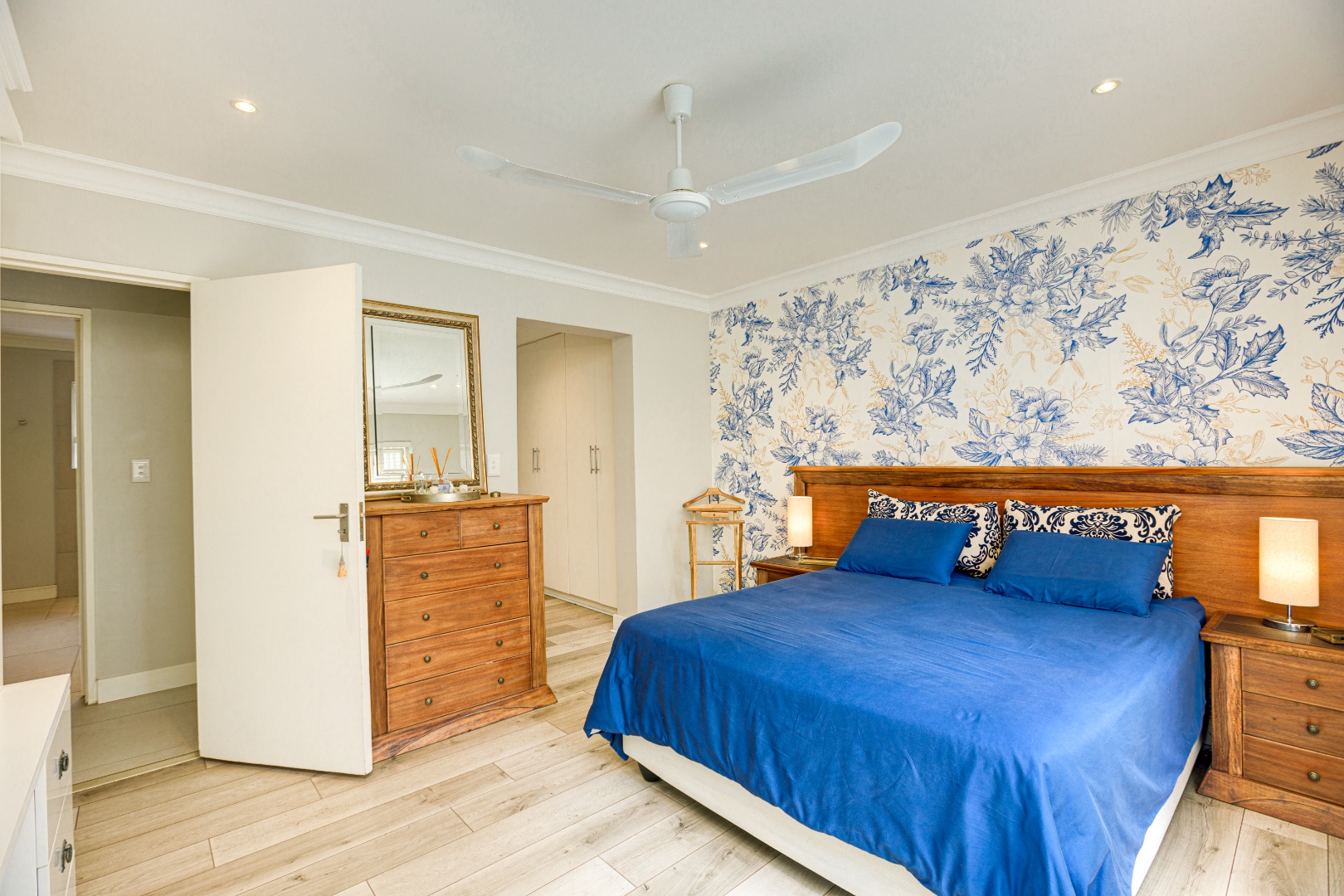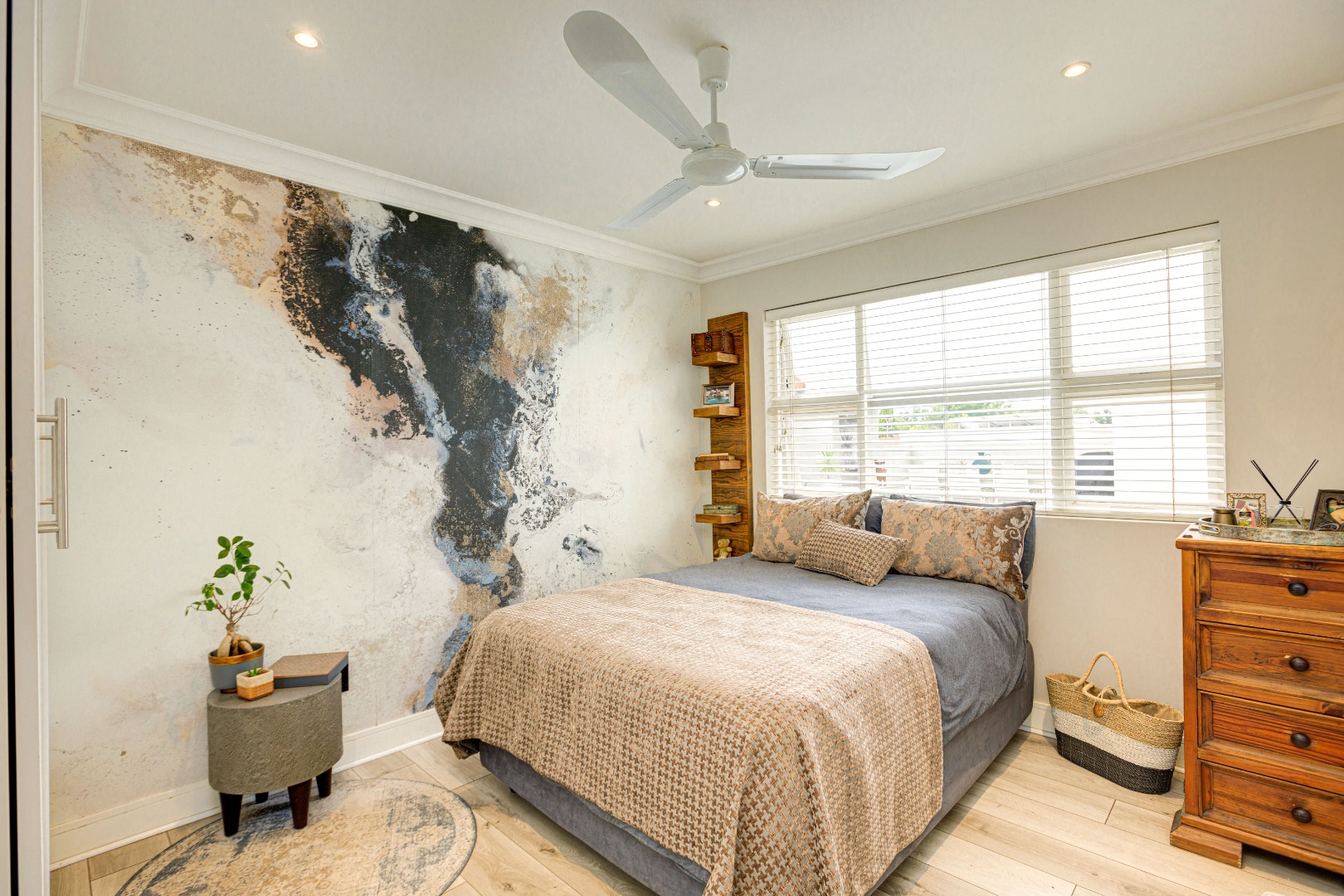 The three spacious bedrooms, all featuring laminated flooring, are warm and generous with built in cupboards and tasteful blinds. Two of the bedrooms share a bathroom with walk in shower. The master suite is a true sanctuary, with direct access to the pool and entertainment space, complemented by a soothing water feature, walk through wardrobes and an en-suite with a bath.