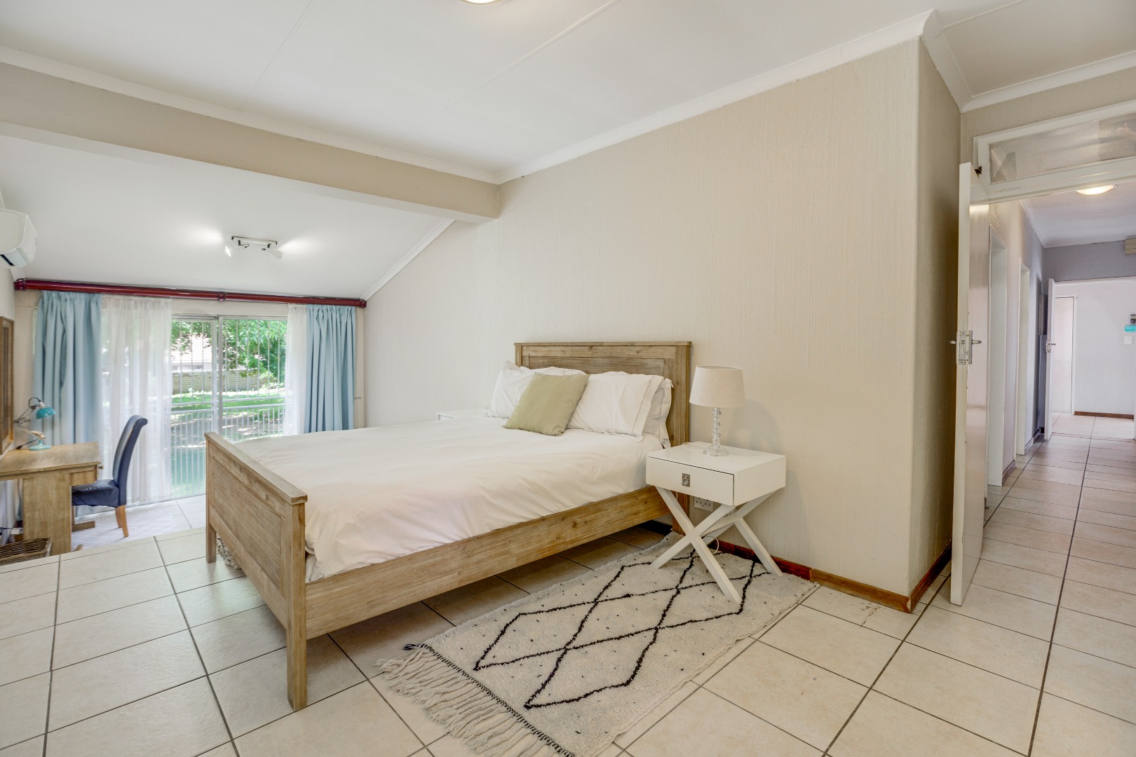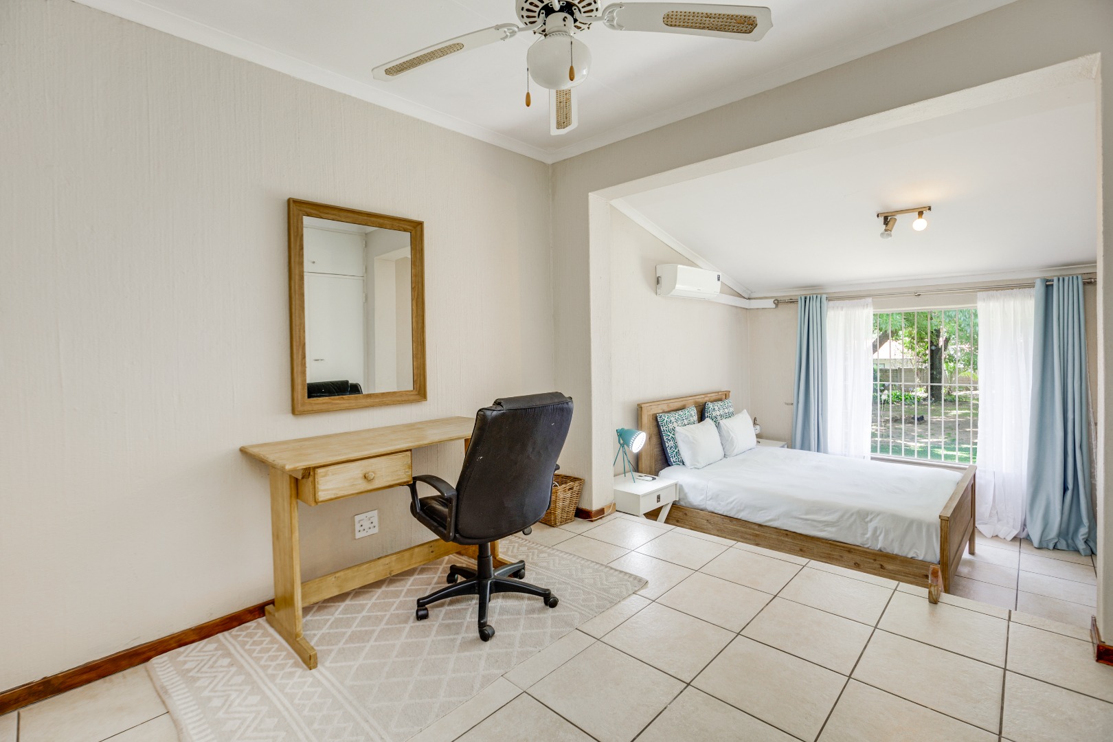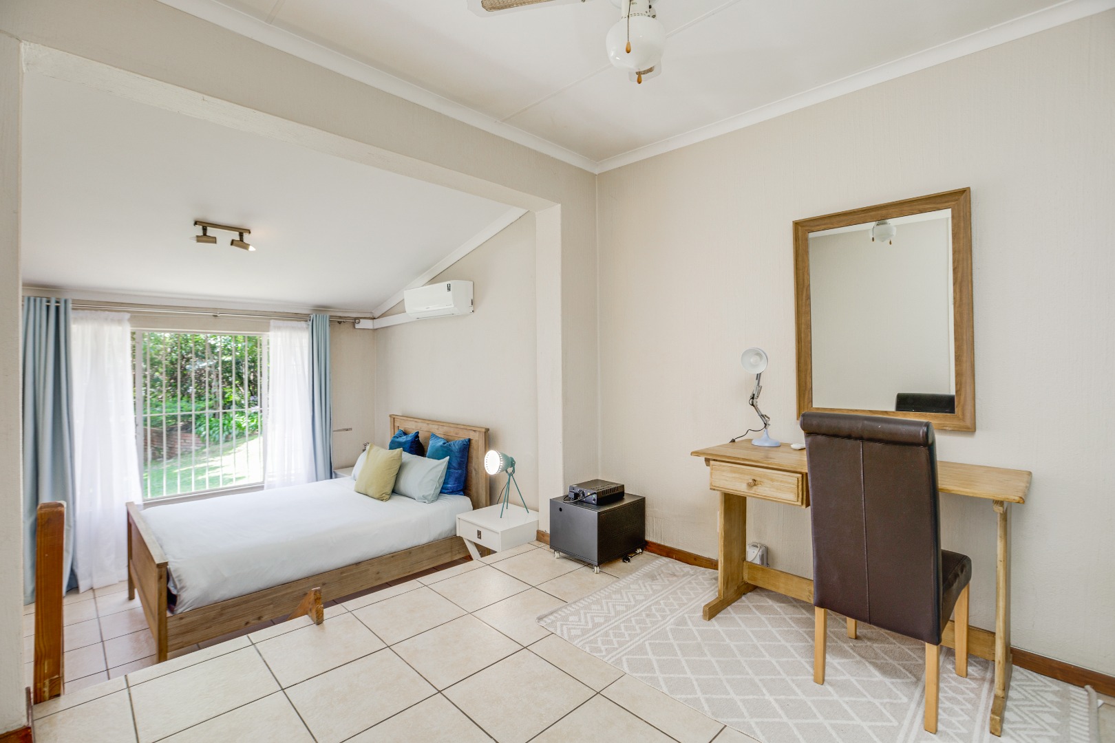 All three bedrooms are generously proportioned, each offering space for a study or small lounge area and featuring individual air conditioning to tailor your comfort. The home boasts two well-appointed bathrooms, ensuring convenience and privacy for all inhabitants.