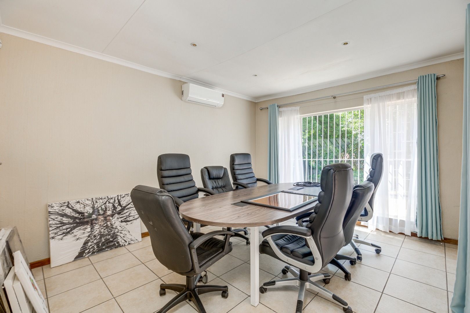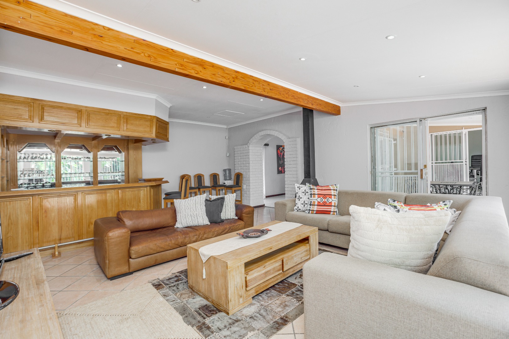 Step inside to a welcoming open entrance hall that effortlessly transforms into a dining area, embracing gatherings with ample space for an 8-seater dining set. The open-plan lounge, adorned with a cozy fireplace and bar, is the perfect setting for warm family evenings or entertaining guests. With a sliding door leading to a picturesque patio, indoor-outdoor living is a breeze. A dedicated study or boardroom with air conditioning offers a professional touch, providing quietude and focus, with access to the patio for tranquil breaks.