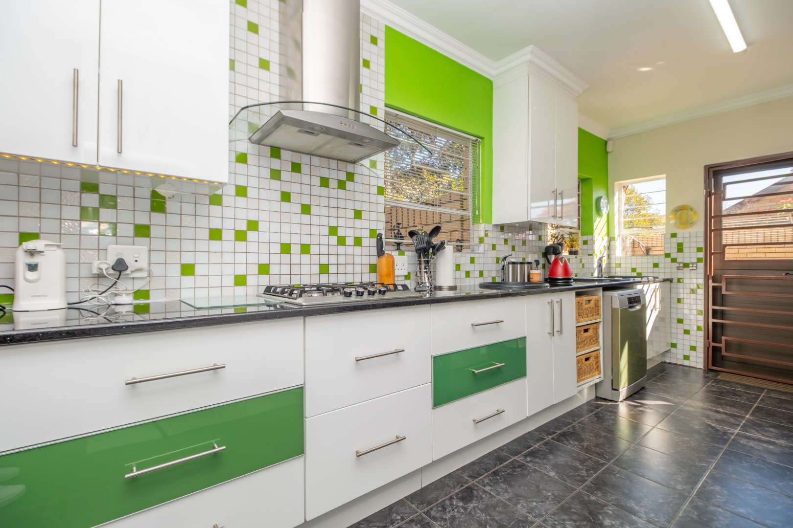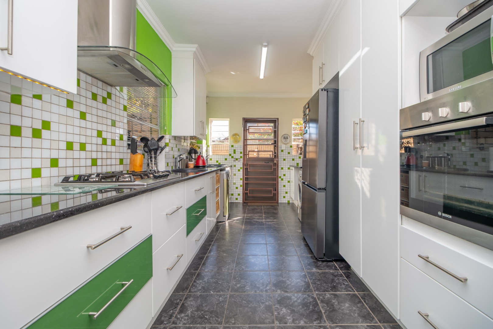 - Stylish, Spacious Kitchen with garden views, ample cupboard space, and room for 2 under-counter appliances