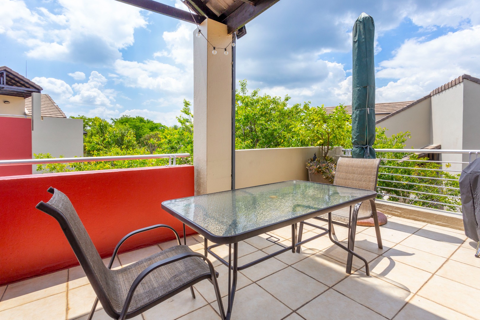 * Spacious, covered balcony with scenic views