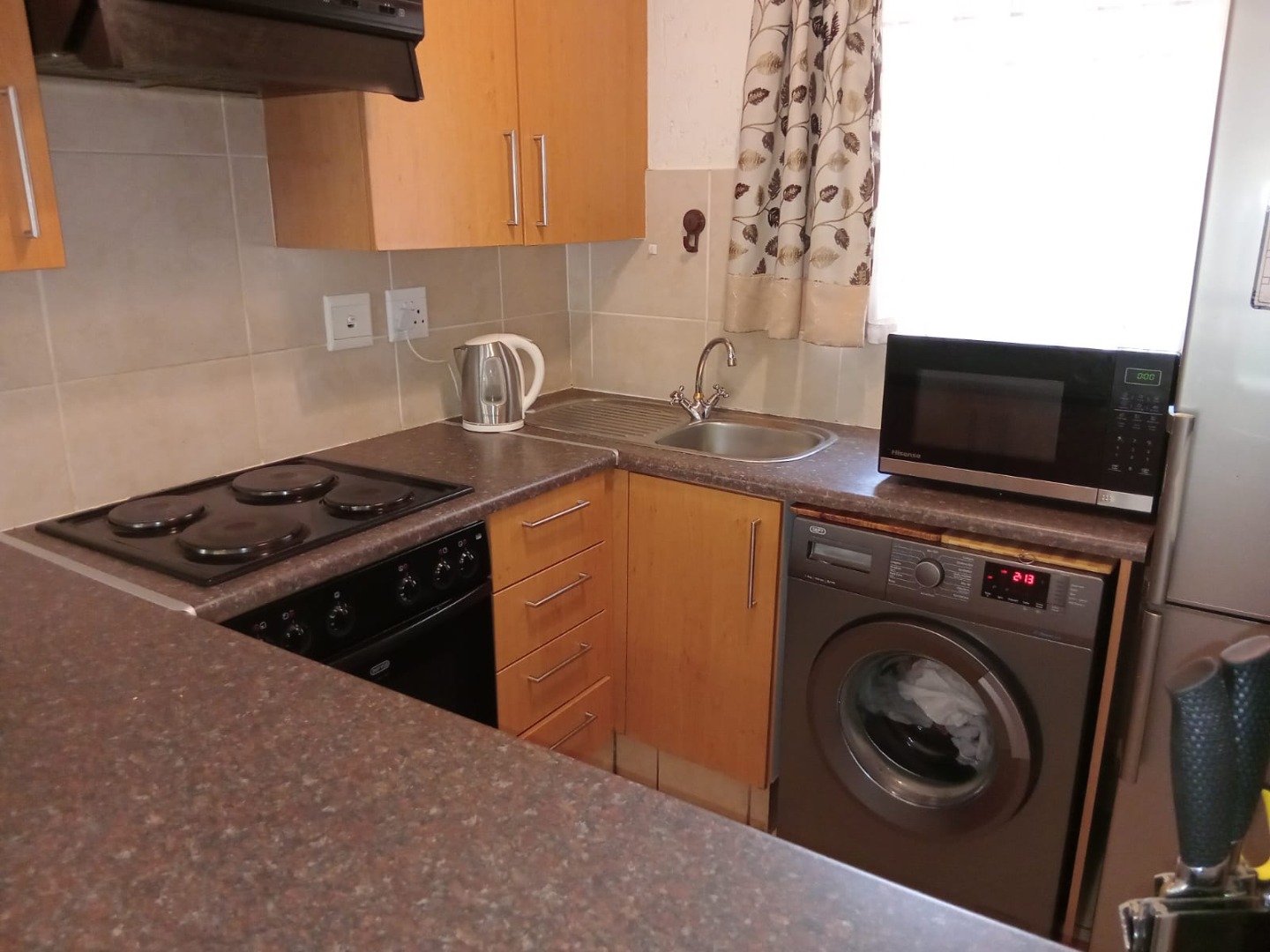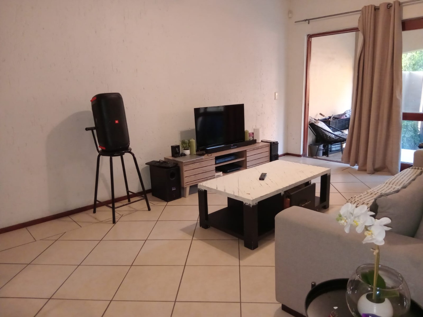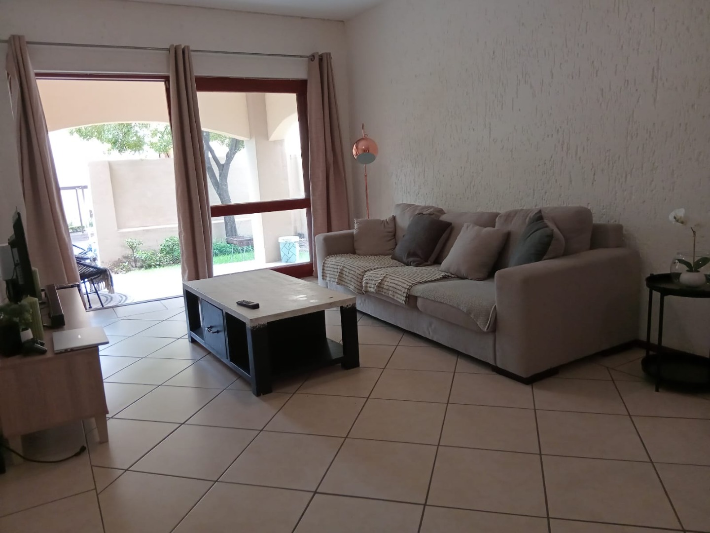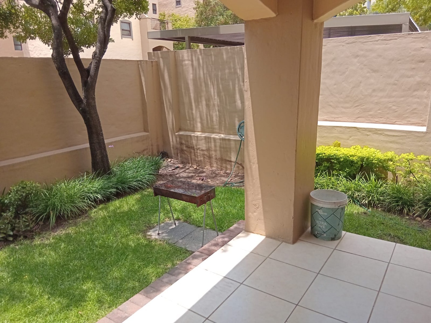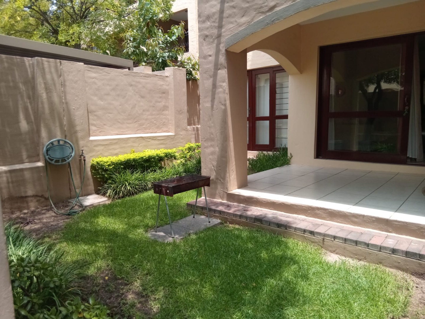 This inviting 57 sqm apartment offers comfortable and secure living in the sought-after suburb of Lonehill, Sandton. The well-appointed interior features a single bedroom and a full bathroom, complemented by a spacious lounge area that benefits from abundant natural light through large glass sliding doors. Tiled flooring extends throughout the living spaces, ensuring easy maintenance. The modern kitchen is equipped with light wood cabinetry, an integrated oven and hob, and a space for a washing machine, providing a functional and stylish space for daily living. Direct access from the lounge leads to a private patio and garden area, perfect for relaxation and outdoor entertaining.
